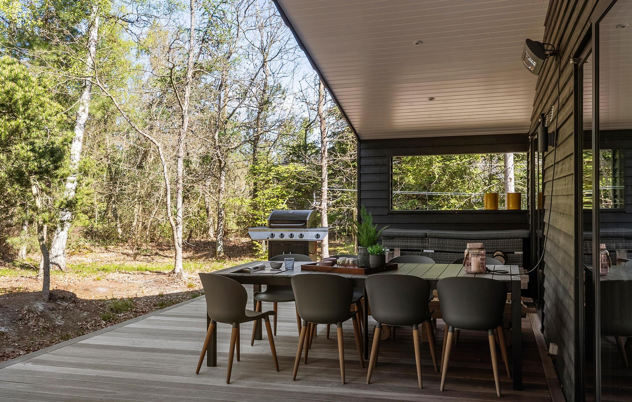 Om sommeren kan I gå direkte hjem fra stranden med badetøjet på og bruse sandet af under udebruseren. I kan nyde udelivet på den 100 m2 store, delvist overdækkede træterrasse, som ligger helt ugeneret og er forsynet med havemøbler og grill.