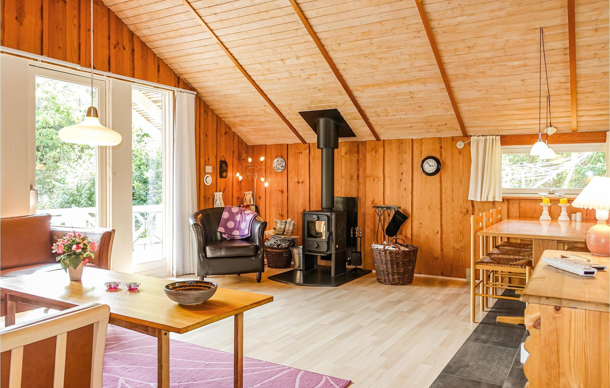 Her får I nogle skønne feriedage, uanset om sæsonen er til indendørshygge eller sol i haven. I opholdsrummet kan I tænde op i brændeovnen på kølige dage og give jer god tid til madlavningen i køkkenet, mens børnene slapper af i de bløde møbler.