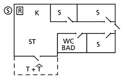 Badeværelse (nr. 1) - WC. Varmt og koldt vand. Bruser