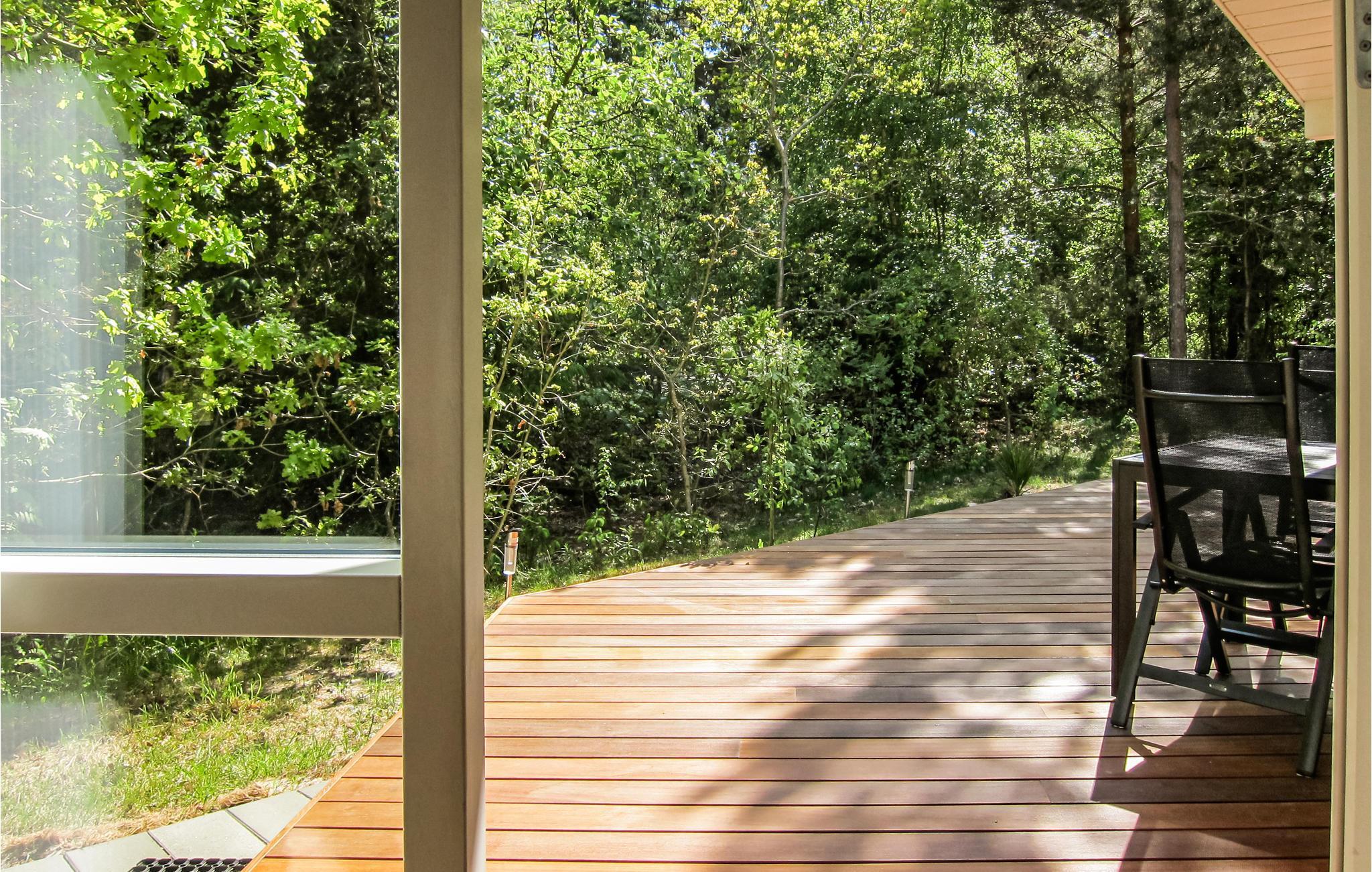 Hyggeligt træsommerhus nær Snogebæk Strand med stor terrasse og kun 250 meter til badestrand.