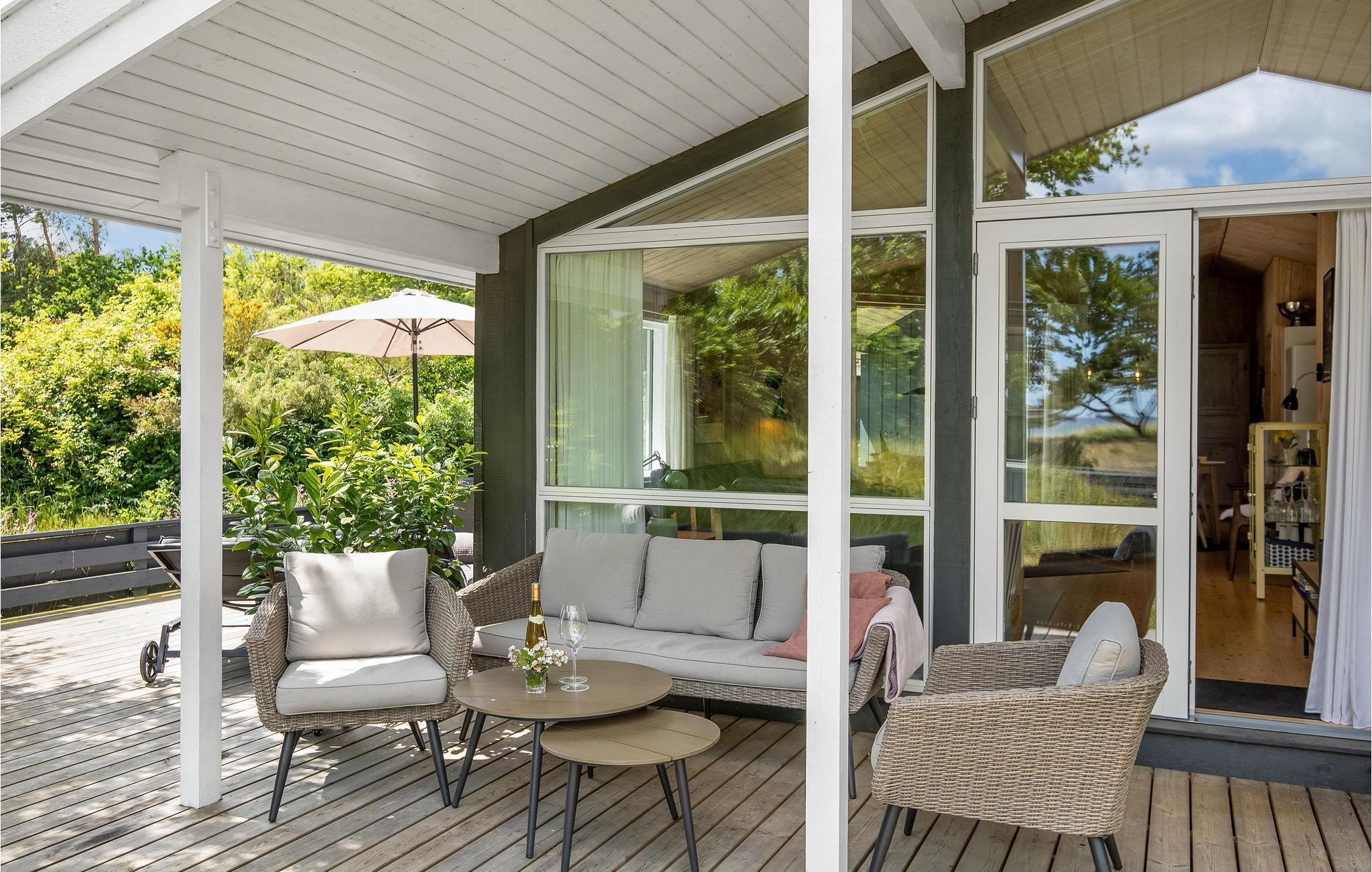 Hyggeligt feriehus nær strand med havudsigt, sauna og spabad i populære Snogebæk på Bornholm.