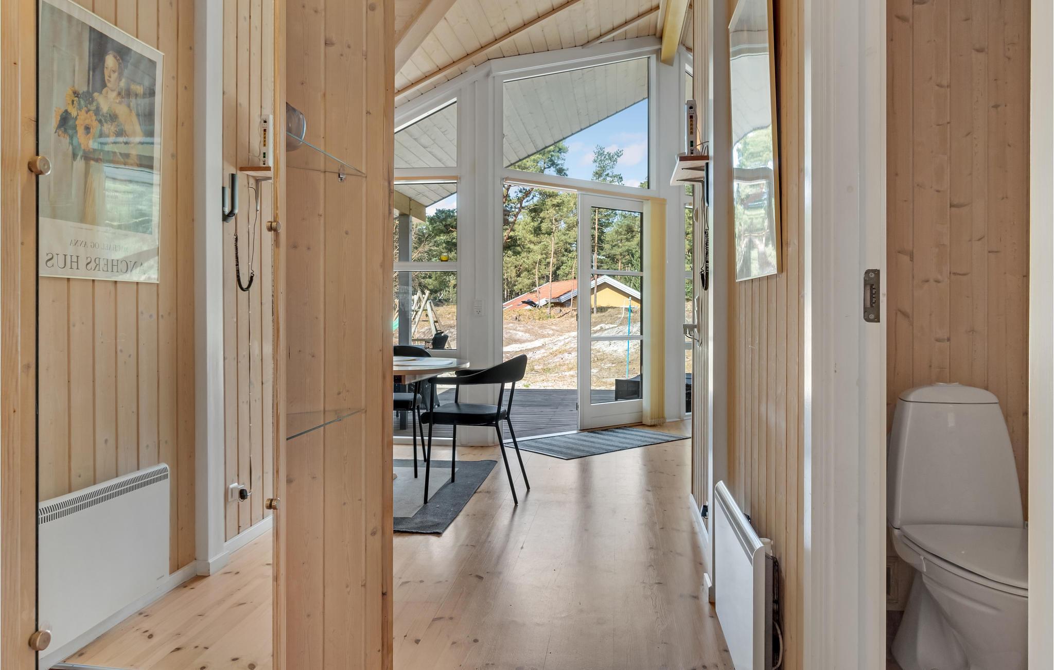 Pragtfuldt og meget velholdt luksusferiehus med alle moderne faciliteter og en dejlig stor terrasse. Det er lyst og smagfuldt indrettet i et åbent miljø med et lækkert køkken med kogeø. En dejlig spisestue med udsigt til den flotte natur og en nydelig opholdsstue med komfortable møbler og brændeovn. Huset råder over to flotte badeværelser, hvoraf det ene er luksuriøst indrettet med sauna og det andet er mindre. Der er rig mulighed for at nyde den flotte natur med vandreture langs stranden eller i den flotte fredsskov. Området er ideelt til børnefamilier. Huset ligger nær en dejlig sandstrand og en 18 hullers golfbane.