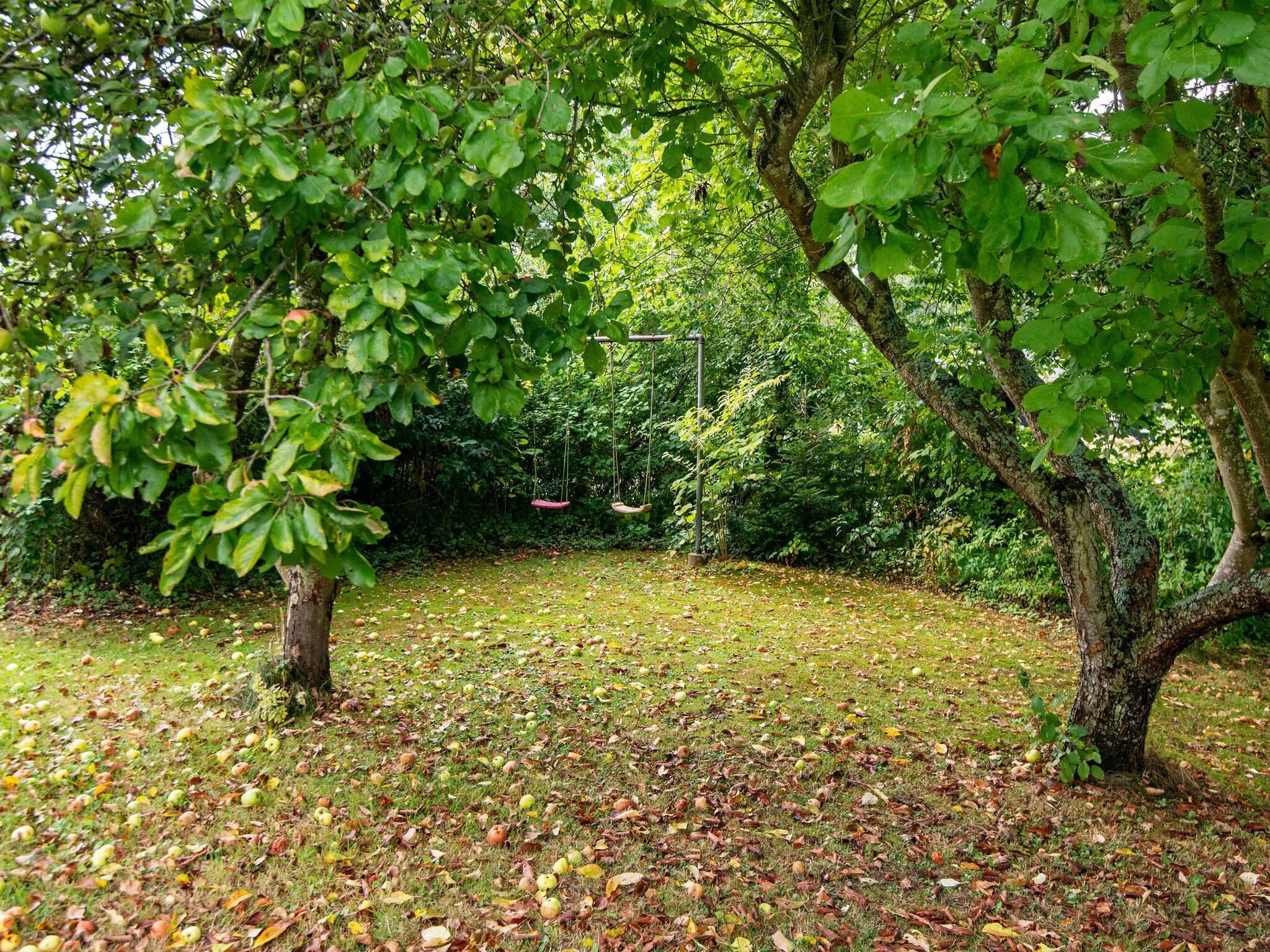 Der er weekend seng og højstol i huset. Huset ligger på en stor lukket grund, med gamle æbletræer i baghaven, som man kan klatre i. Der er gynger, trampolin, sandkasse og bålplads og grill på terrassen. Der er flere sol terasser,rundt om huset. Og en lille overdækket terrasse. Der er en boks med forskellige udendørs spil.
