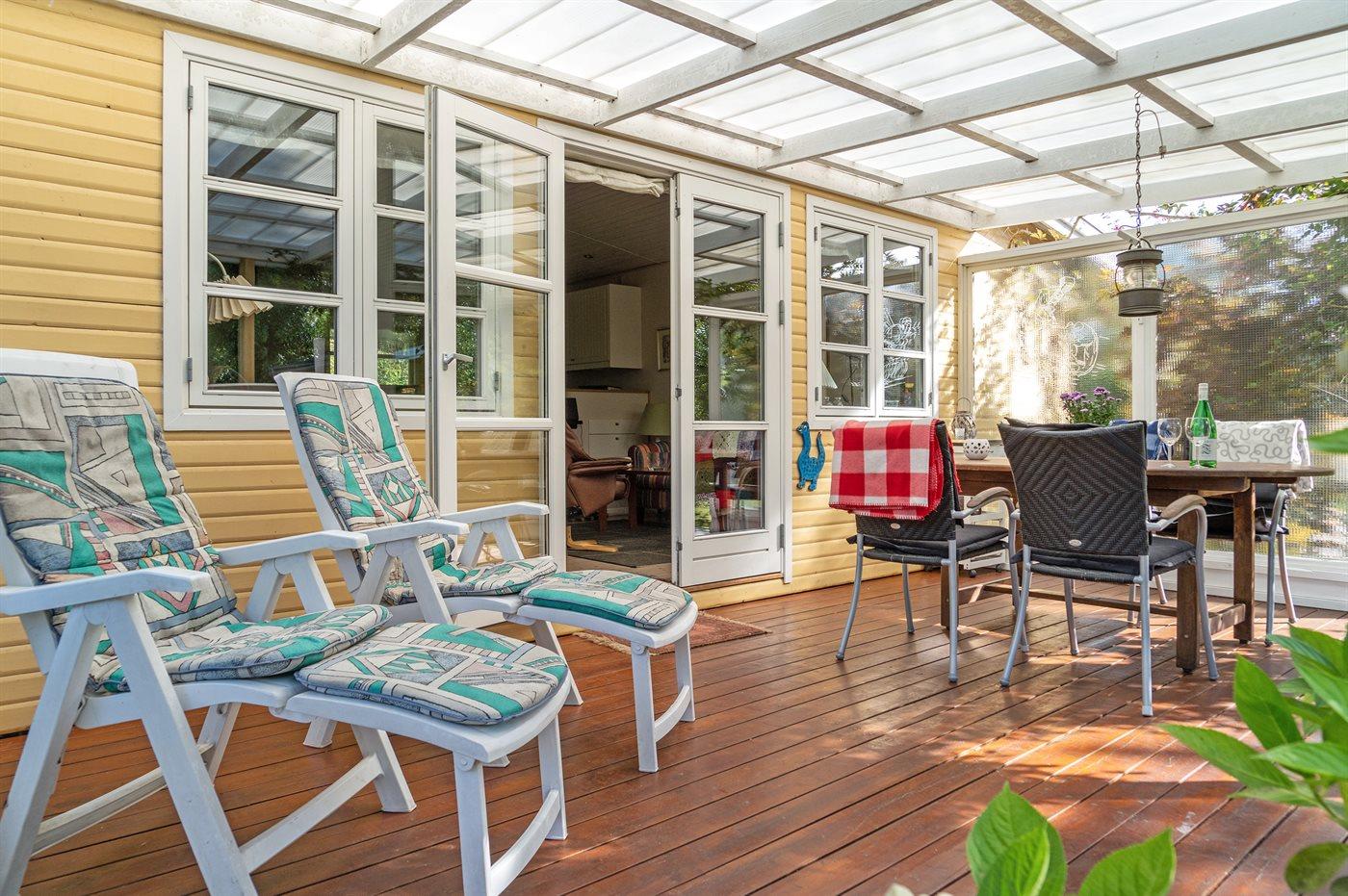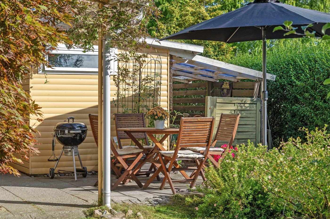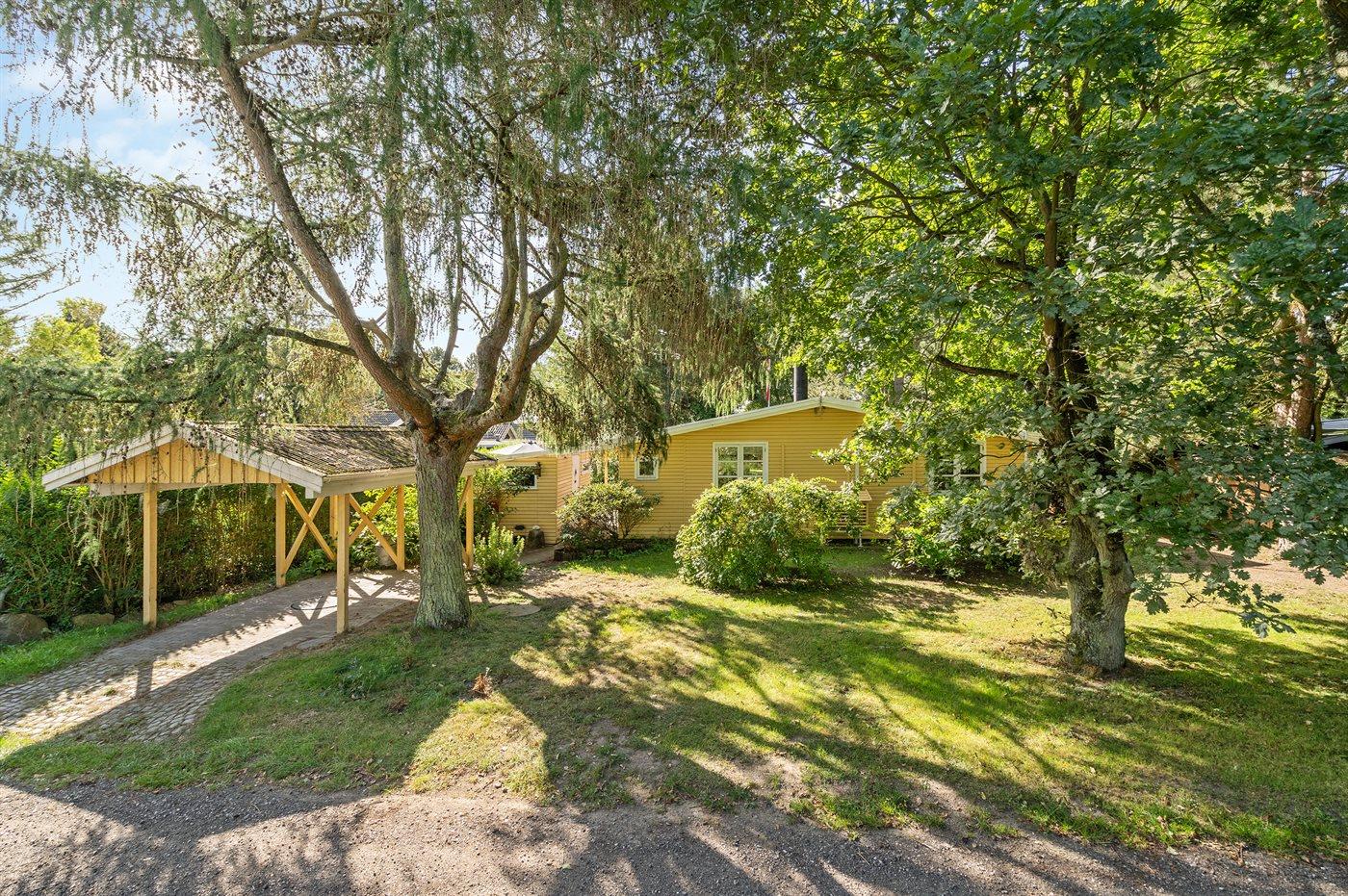 Ferieboligen er beliggende på en 1052 m² stor havegrund. Der er 120 m til havet. Nærmeste forretning er beliggende i en afstand af 6000 m. Til ferieboligen hører 30 m² terrasseareal. Desuden er der 28 m² overdækket terrasse. Udendørs bruser. Der er carport til rådighed. Der er installeret stik til opladning af elbil. Med 11 kW ladeeffekt. Parkering ved ferieboligen.