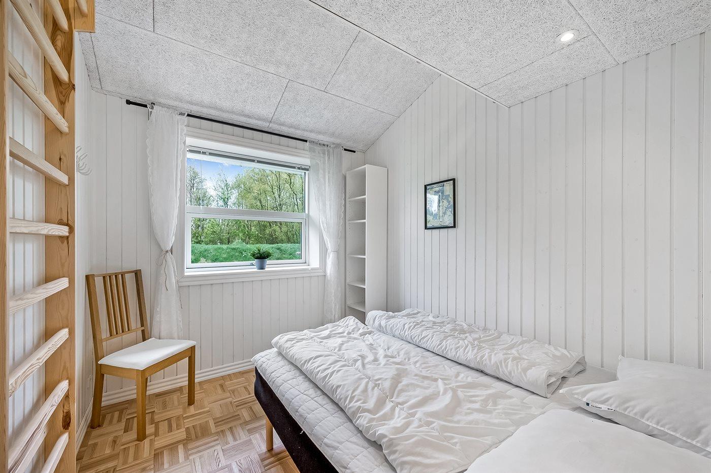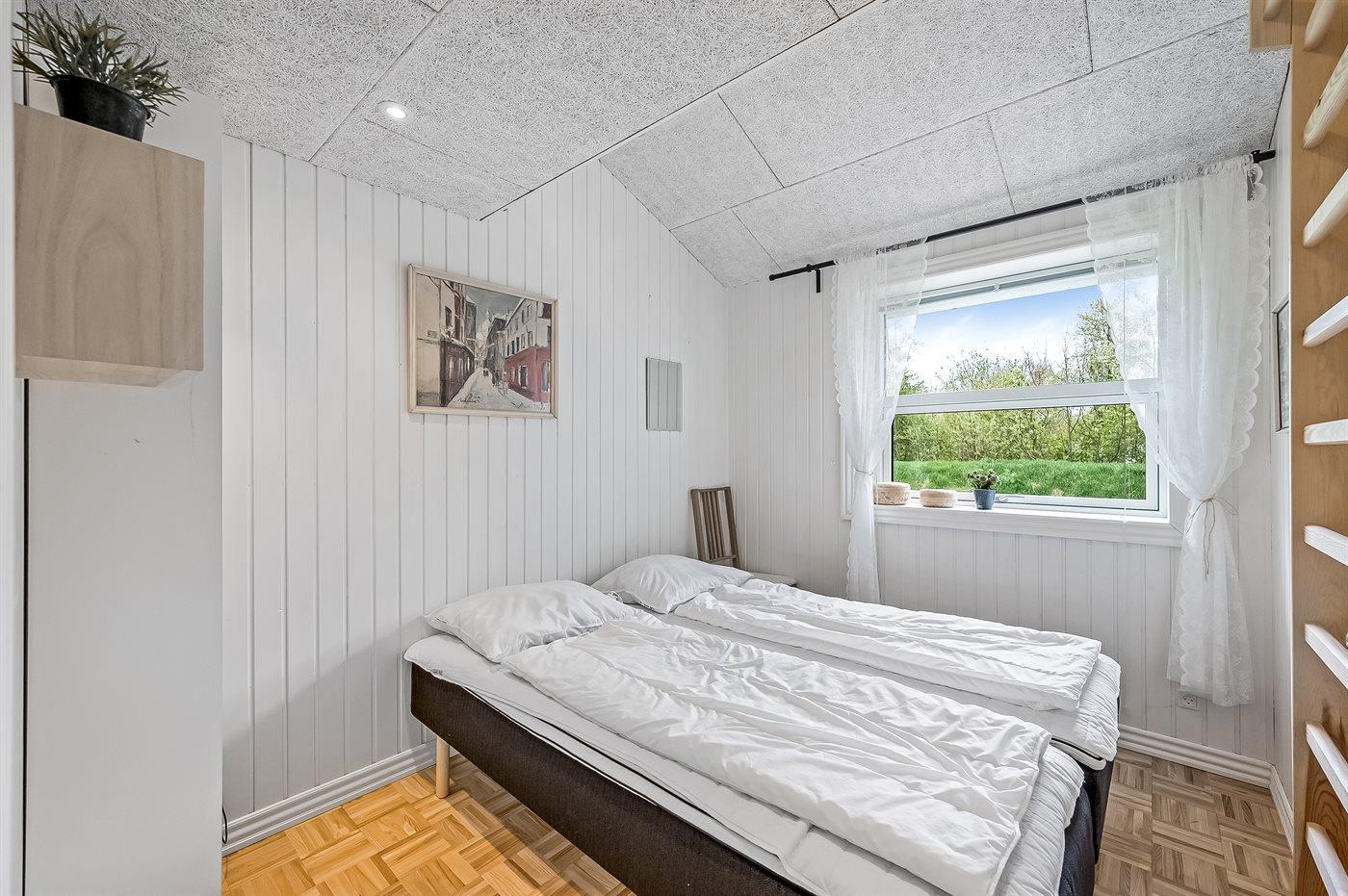 Der er i alt 4 soveværelser. Sovepladserne fordeler sig på: 8 sovepladser i dobbeltsenge. 4 sovepladser på madrasser. De 4 sovepladser på madrasser fordeler sig på 2 hemse.