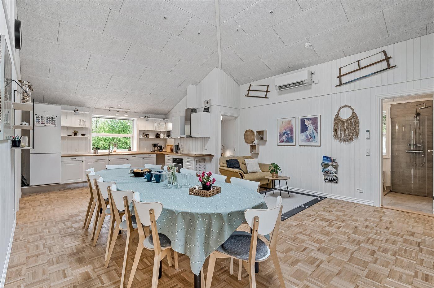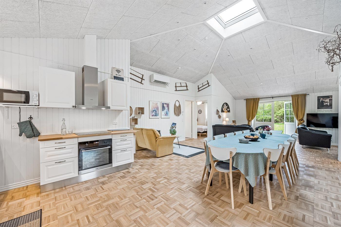 Sommerhuset egner sig til 12 personer. 4 af sovepladserne er kun egnet til større børn (4-11 år). Ferieboligen er på 121 m² og er bygget i 2022. Det er tilladt at medbringe 1 husdyr. Ferieboligen er udstyret med 1 energivenlig luft til luft varmepumpe. Ferieboligen har vaskemaskine. Tørretumbler. Frysekapacitet på 80 liter.