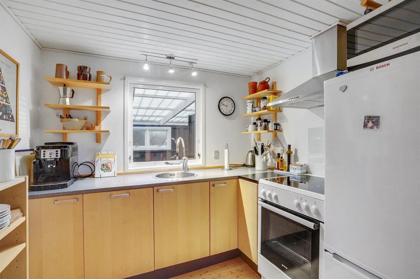 Køkkenet er udstyret med 1 køleskab. Der er 4 keramiske kogeplader, varmluftovn, mikrobølgeovn samt opvaskemaskine.