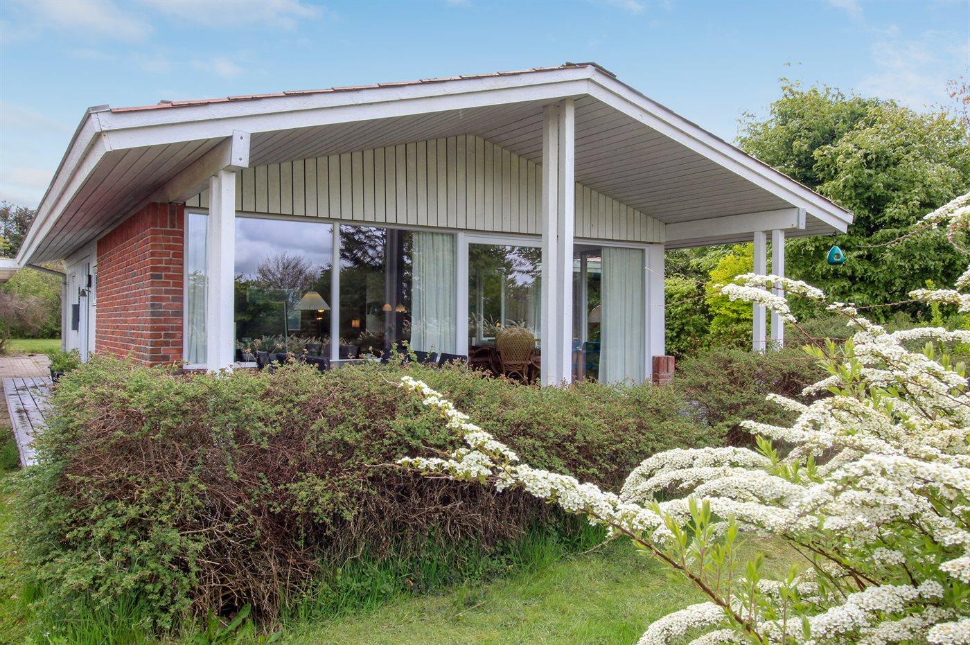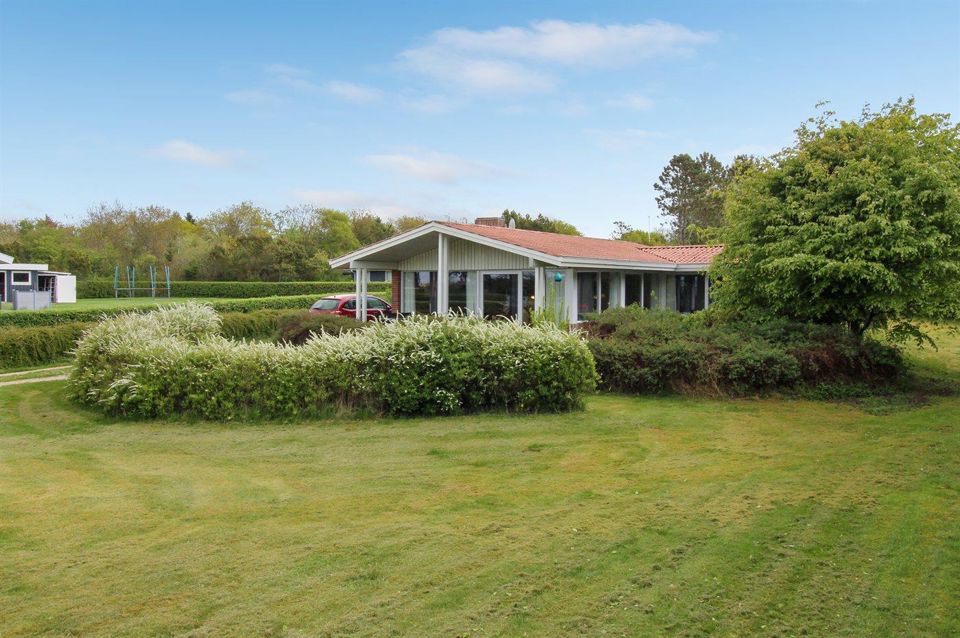 Dette pæne sommerhus ligger på en stor grund tæt på fjorden.