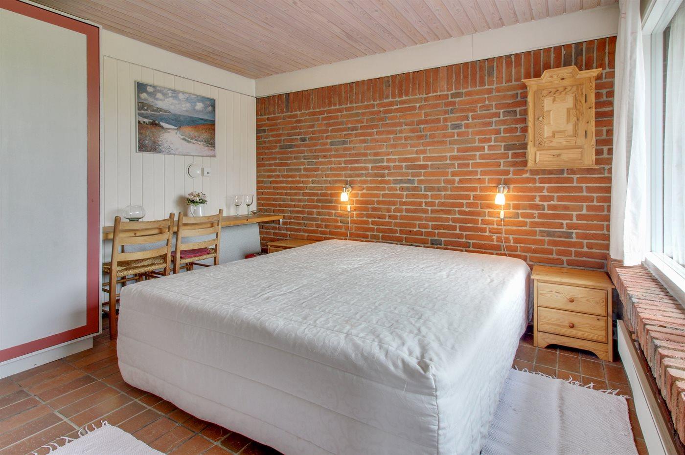 Der er i alt 3 soveværelser. Sovepladserne fordeler sig på: 4 sovepladser i dobbeltsenge. 2 sovepladser i køjeseng. Derudover er der 1 stk. barneseng.