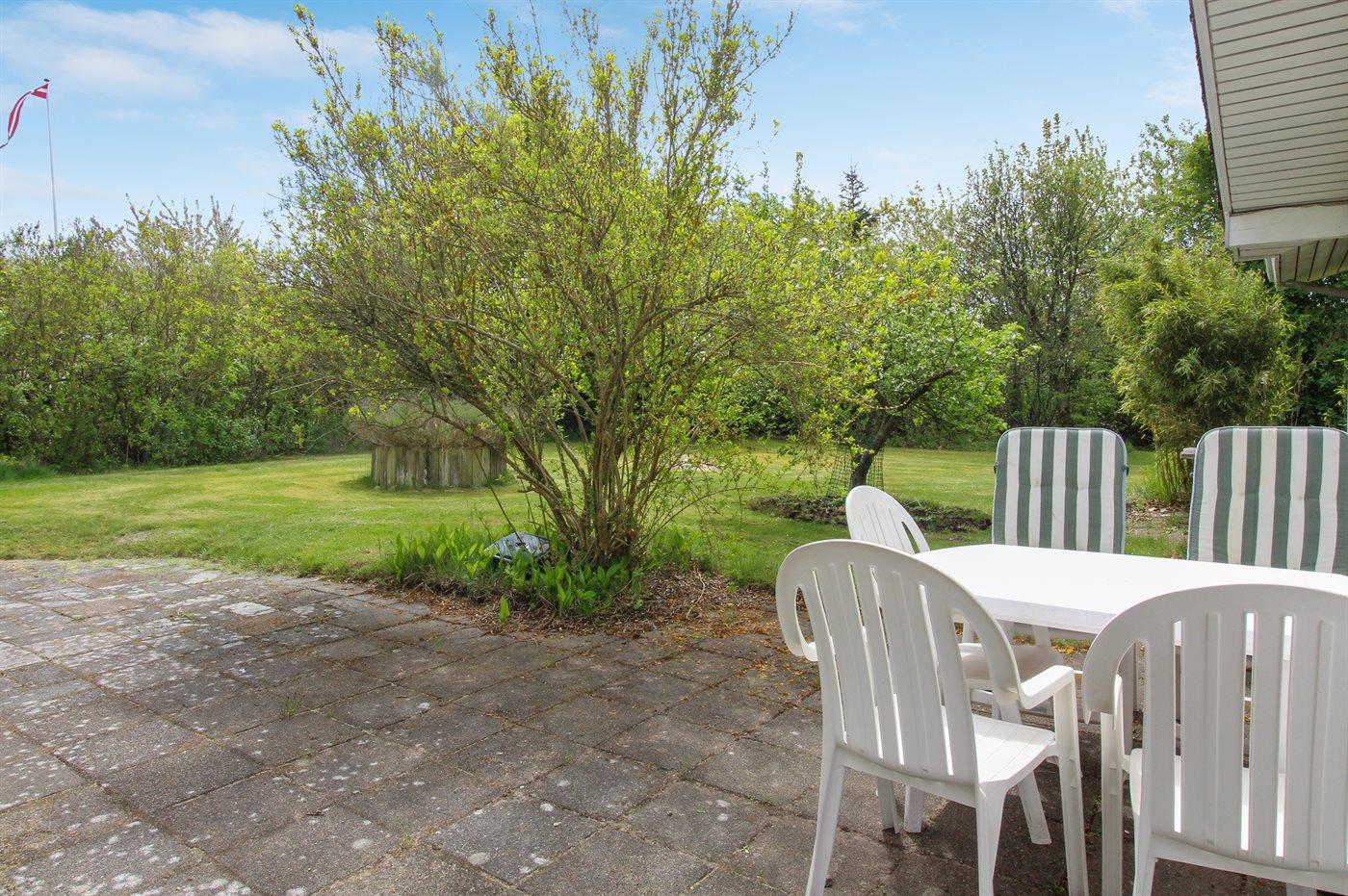 Ferieboligen er beliggende på en 2500 m² stor havegrund. Der er 200 m til fjorden. Nærmeste forretning er beliggende i en afstand af 600 m. Til ferieboligen hører 30 m² terrasseareal. Desuden er der 15 m² overdækket terrasse. Der er redskabsrum. Der er carport til rådighed.