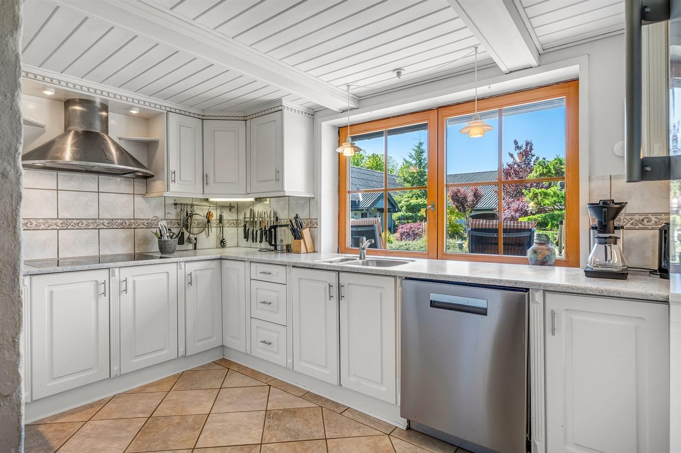 Køkkenet er udstyret med 1 køleskab. Der er 5 keramiske kogeplader, varmluftovn, mikrobølgeovn samt opvaskemaskine.