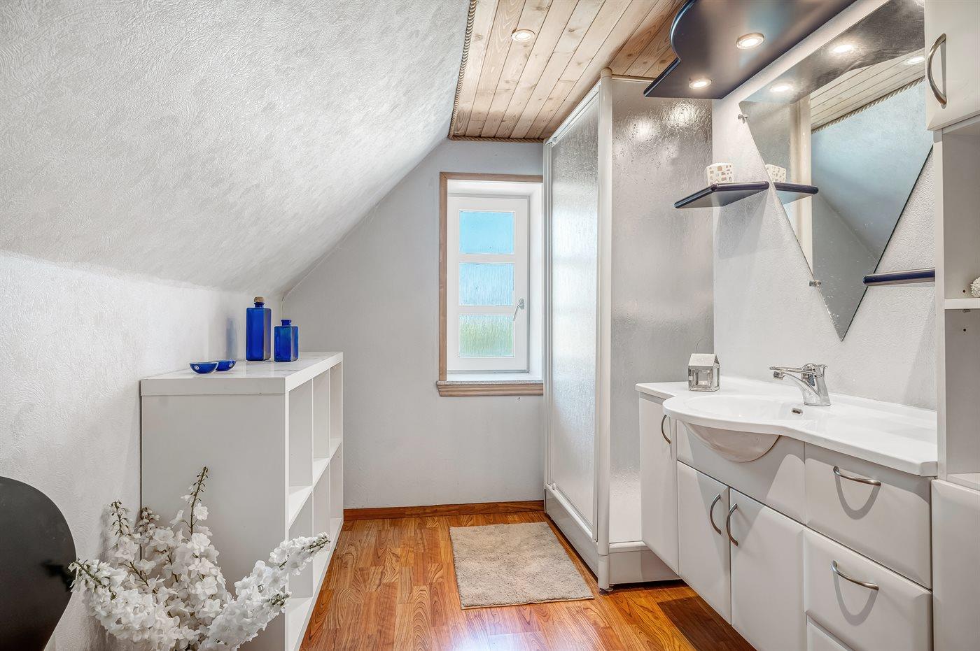 Der er 2 badeværelser med bruseniche og 3 toiletter, heraf 1 gæstetoilet. Der er gulvvarme på 1 badeværelse. Der er gulvvarme på gæstetoilettet.