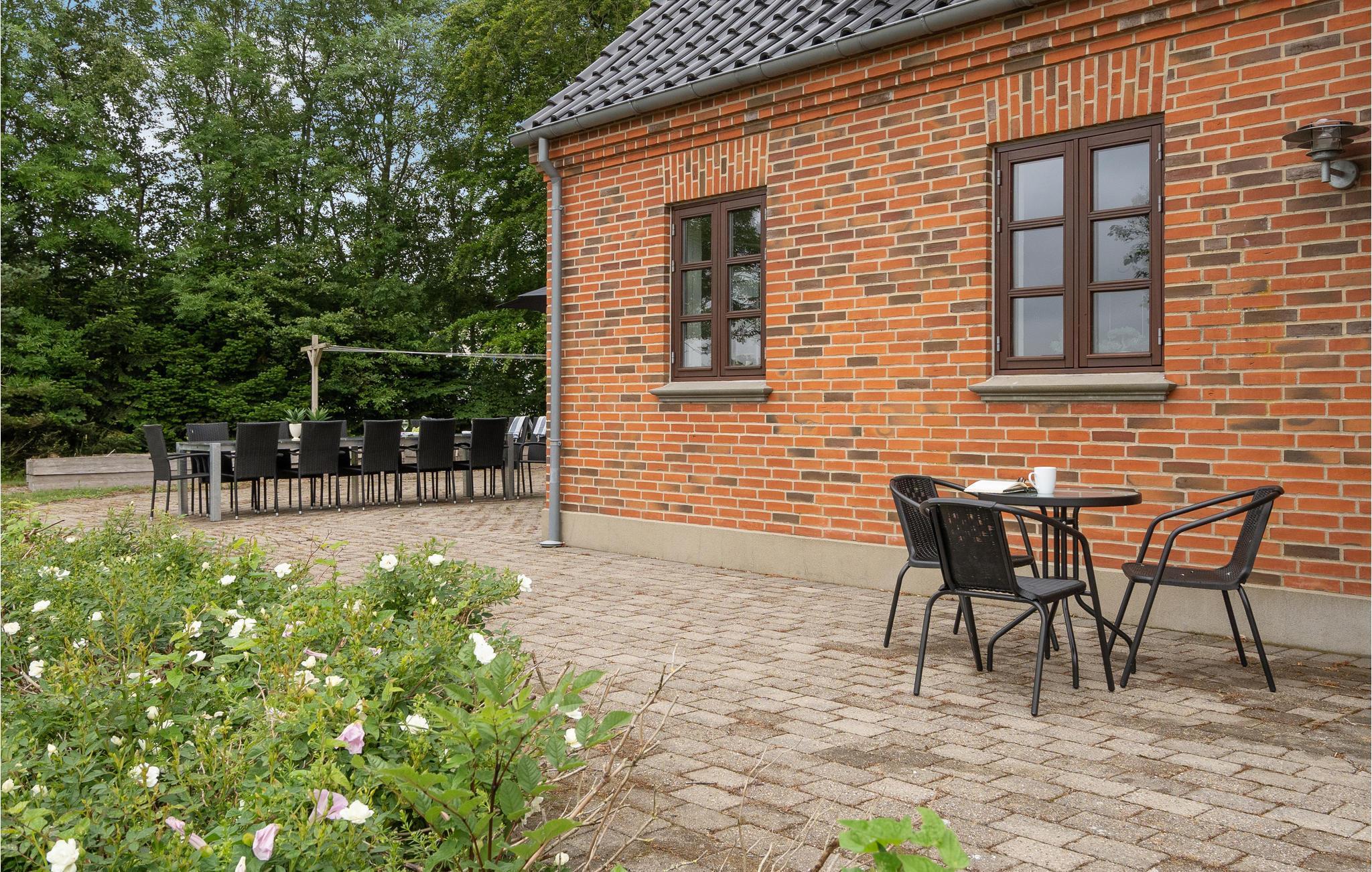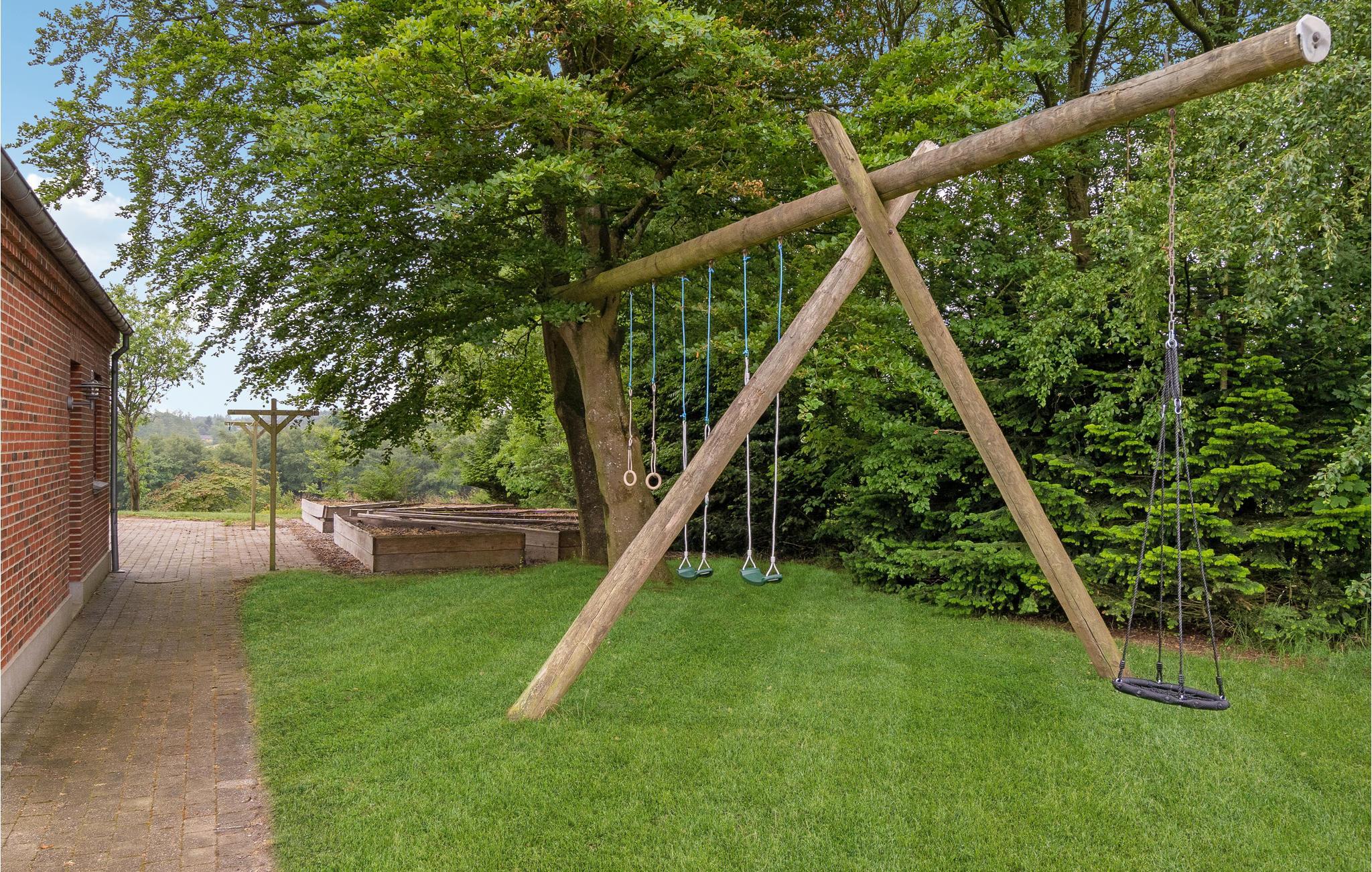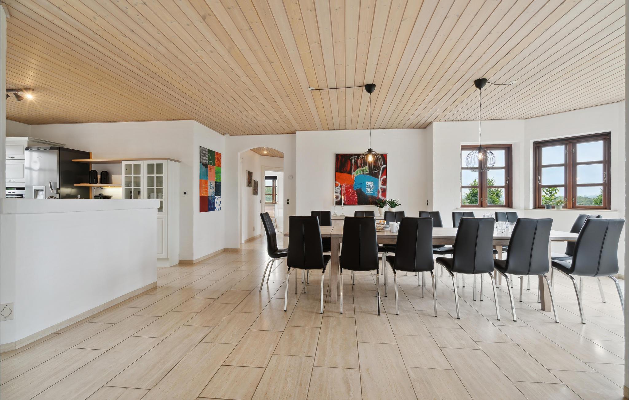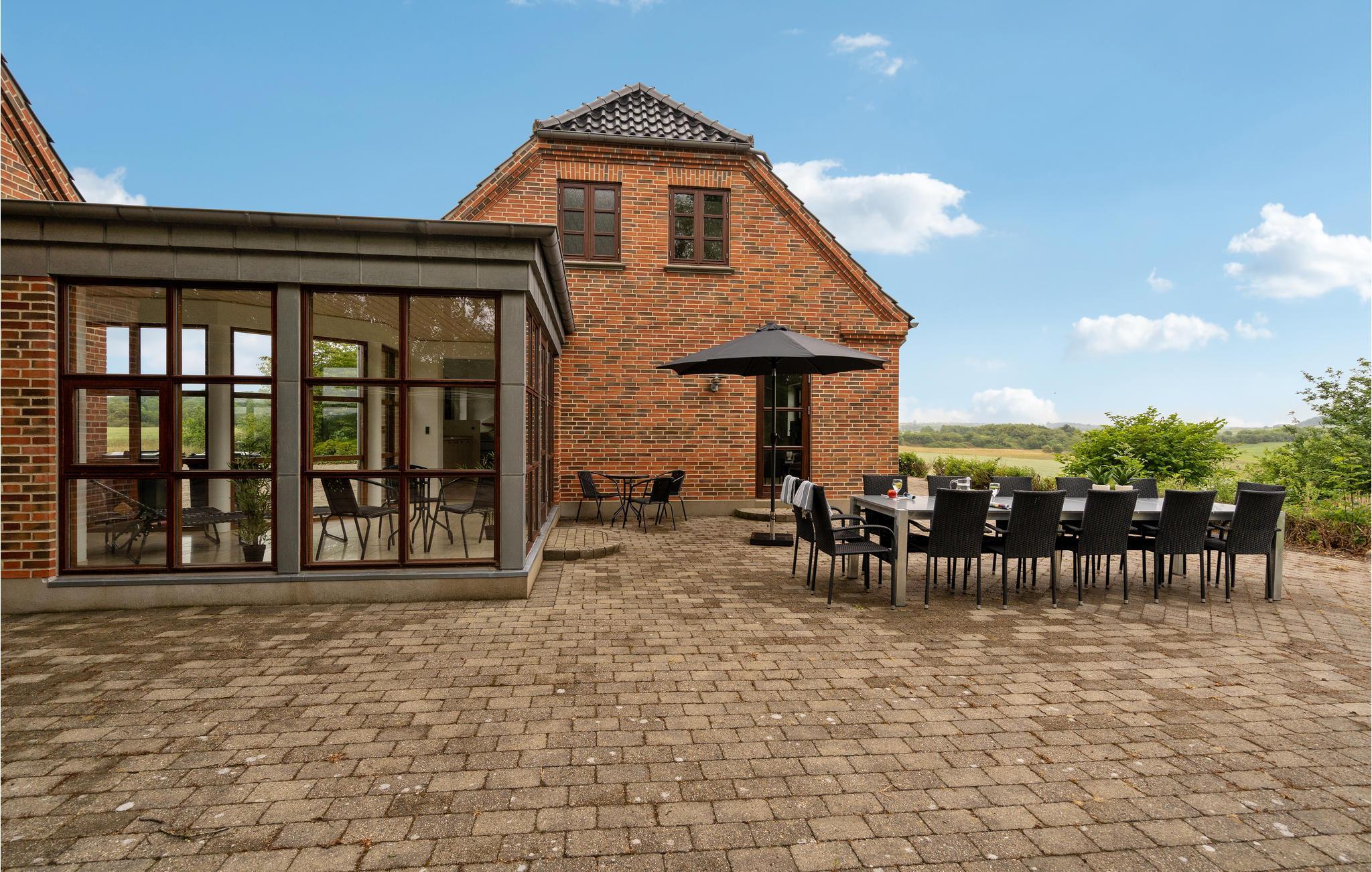 Dette tiltalende og store feriehus ligger vidunderligt omgivet af skov og marker og tilbyder plads til den helt store familiesammenkomst eller flere vennefamilier. Her er ro og frisk luft. Den tidligere landejendom med en lys atmosfære er meget veludstyret og moderne indrettet. Nyd en skøn tid med fælles madlavning i det store dejlige køkken, spillehygge, sjov ved billardbordet og lækre måltider for hele gruppen ved det lange bord, der også passer til den store fest! Huset danner uden tvivl den hyggeligste ramme om en herlig familietid med afkobling og nærvær. Nyd den fortryllende udsigt over naturen ved sofabordet i udestuen eller se yndlingsserien i den hyggelige sofa. Billard og dart indbyder til sjove familiedueller. Træd ud på altanen om morgenen og lad blikket vandre over det store landskab. På terrassen kan I nyde solen i fred og ro, mens jeres børn løber rundt og gynger. Senere samles alle til et lækkert grillmåltid under åben himmel.