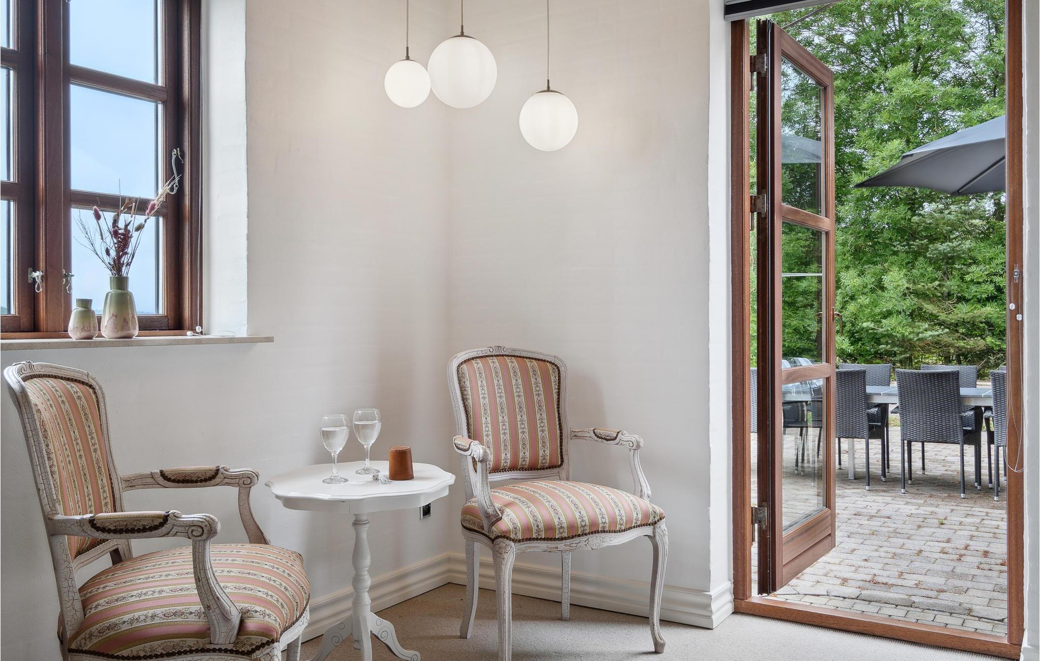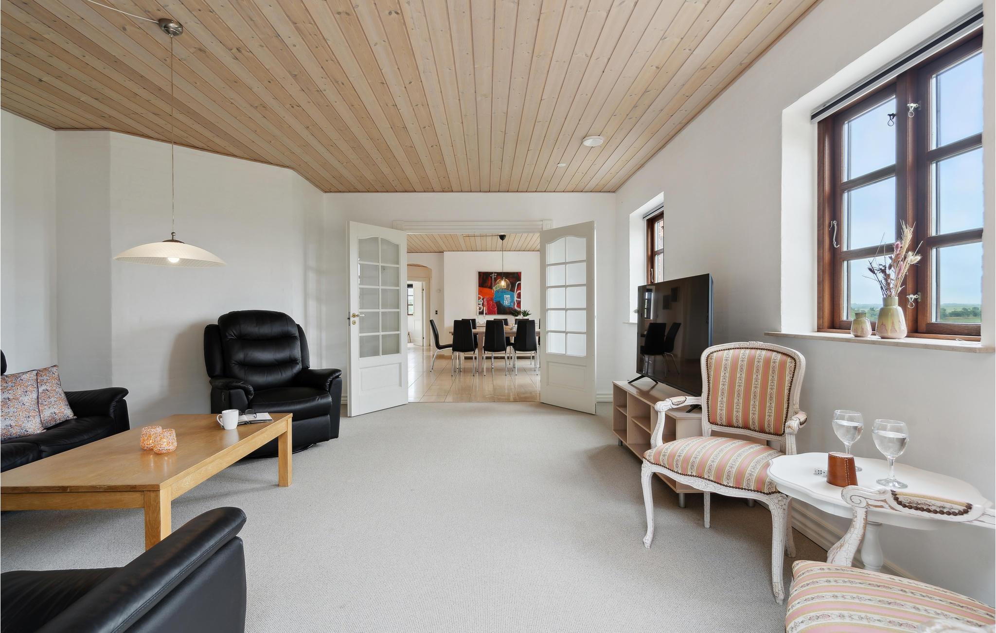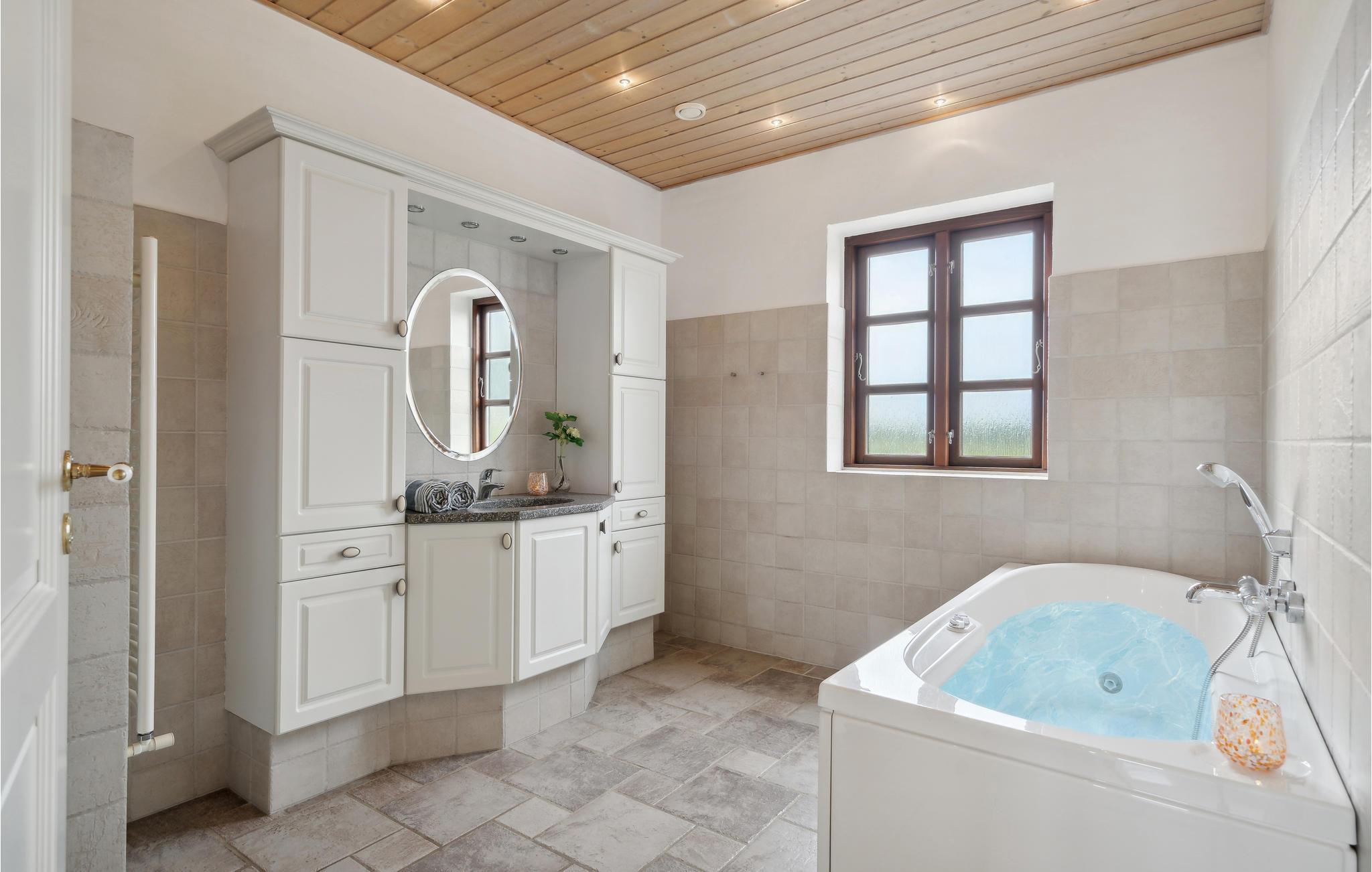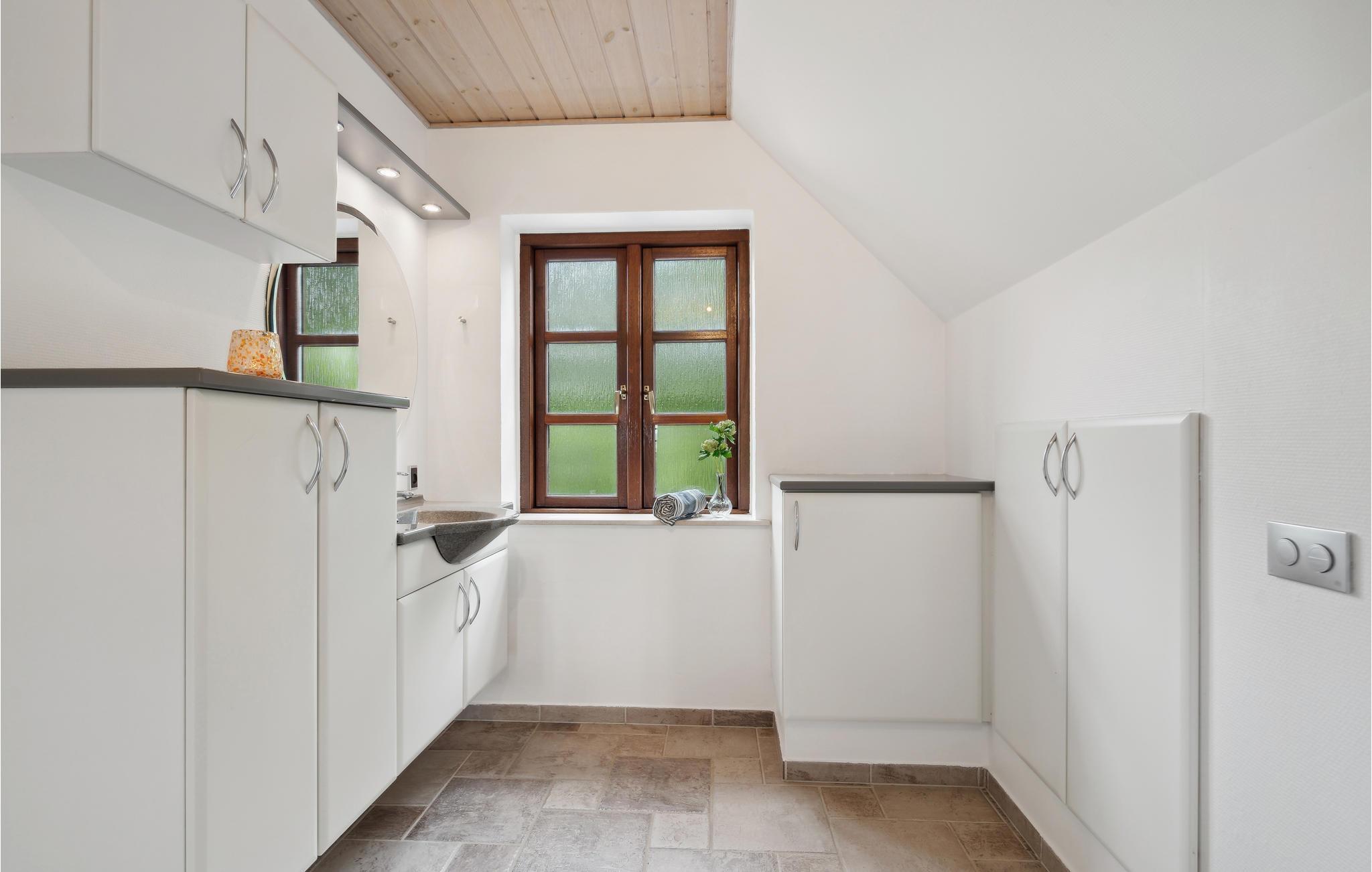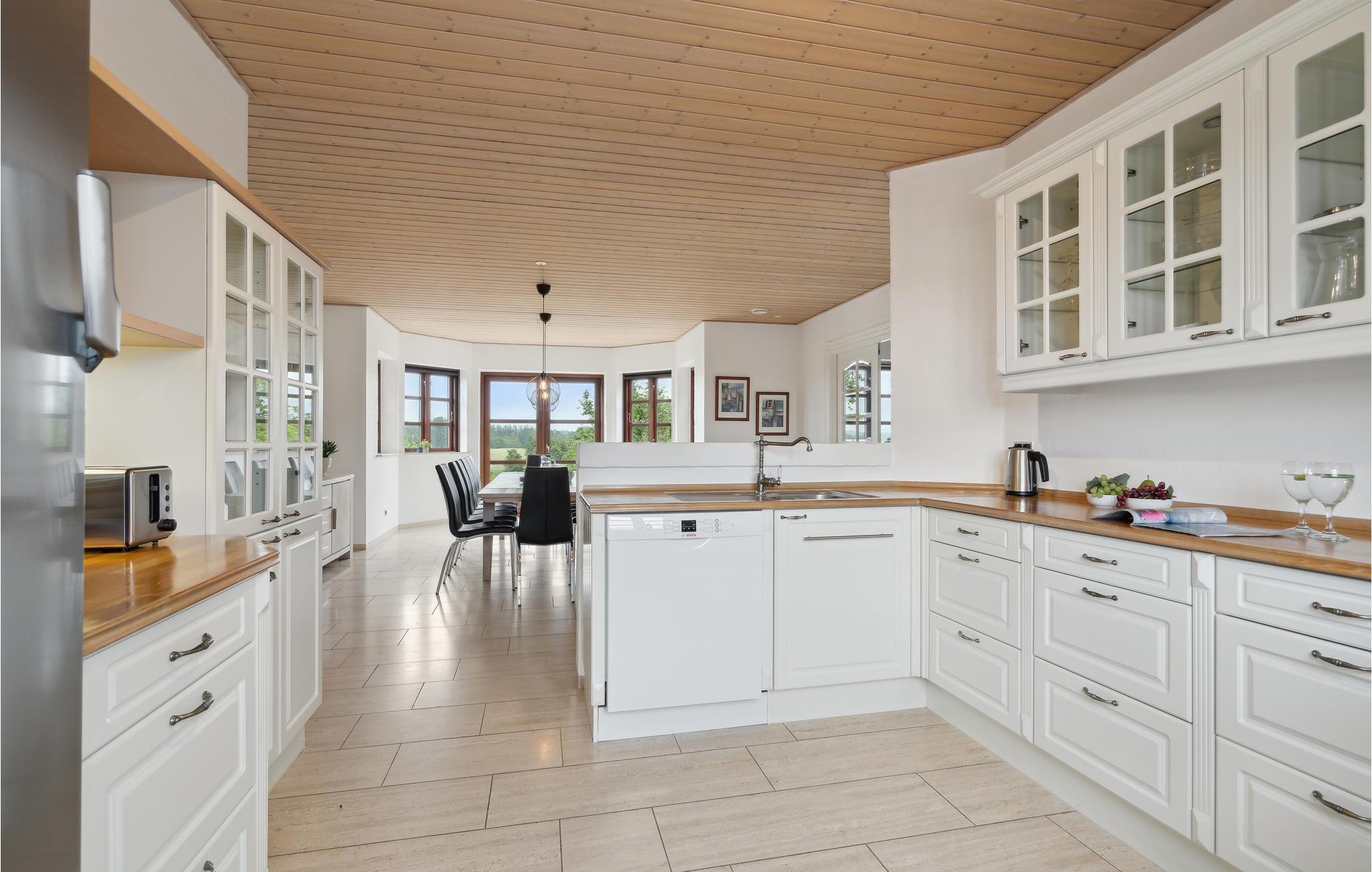 Dette tiltalende og store feriehus ligger vidunderligt omgivet af skov og marker og tilbyder plads til den helt store familiesammenkomst eller flere vennefamilier. Her er ro og frisk luft. Den tidligere landejendom med en lys atmosfære er meget veludstyret og moderne indrettet. Nyd en skøn tid med fælles madlavning i det store dejlige køkken, spillehygge, sjov ved billardbordet og lækre måltider for hele gruppen ved det lange bord, der også passer til den store fest! Huset danner uden tvivl den hyggeligste ramme om en herlig familietid med afkobling og nærvær. Nyd den fortryllende udsigt over naturen ved sofabordet i udestuen eller se yndlingsserien i den hyggelige sofa. Billard og dart indbyder til sjove familiedueller. Træd ud på altanen om morgenen og lad blikket vandre over det store landskab. På terrassen kan I nyde solen i fred og ro, mens jeres børn løber rundt og gynger. Senere samles alle til et lækkert grillmåltid under åben himmel.