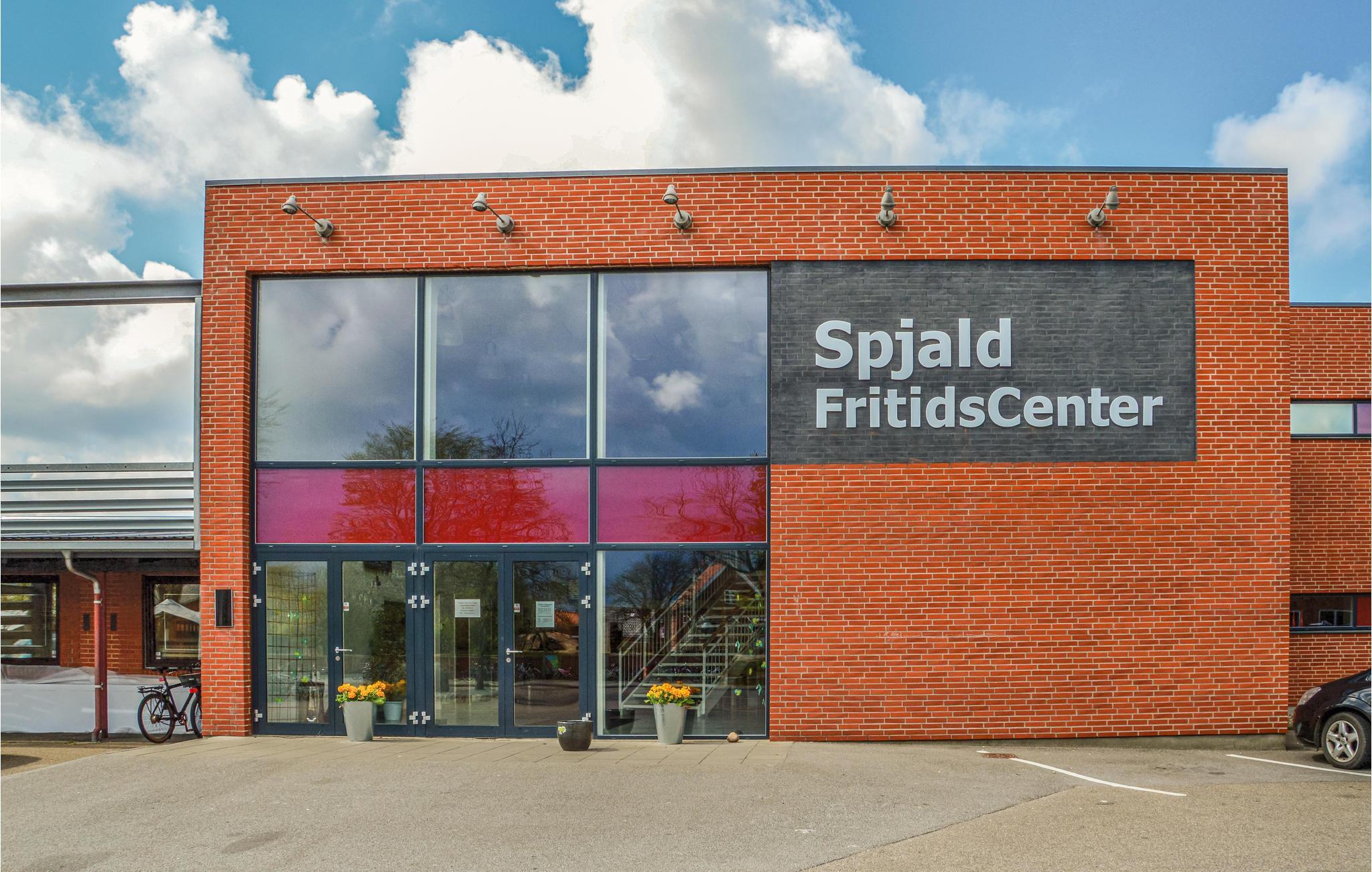 Flot hytte på stort idrætsanlæg i Spjald med adgang til svømmehal, boldbaner og motionscenter for aktive familier.