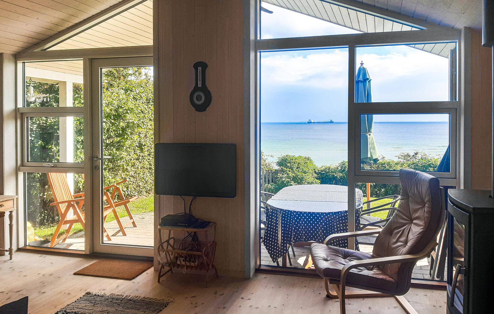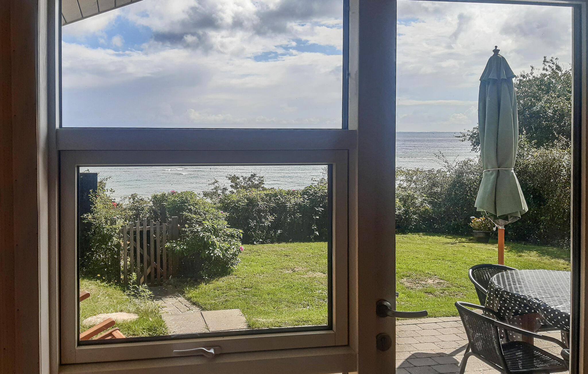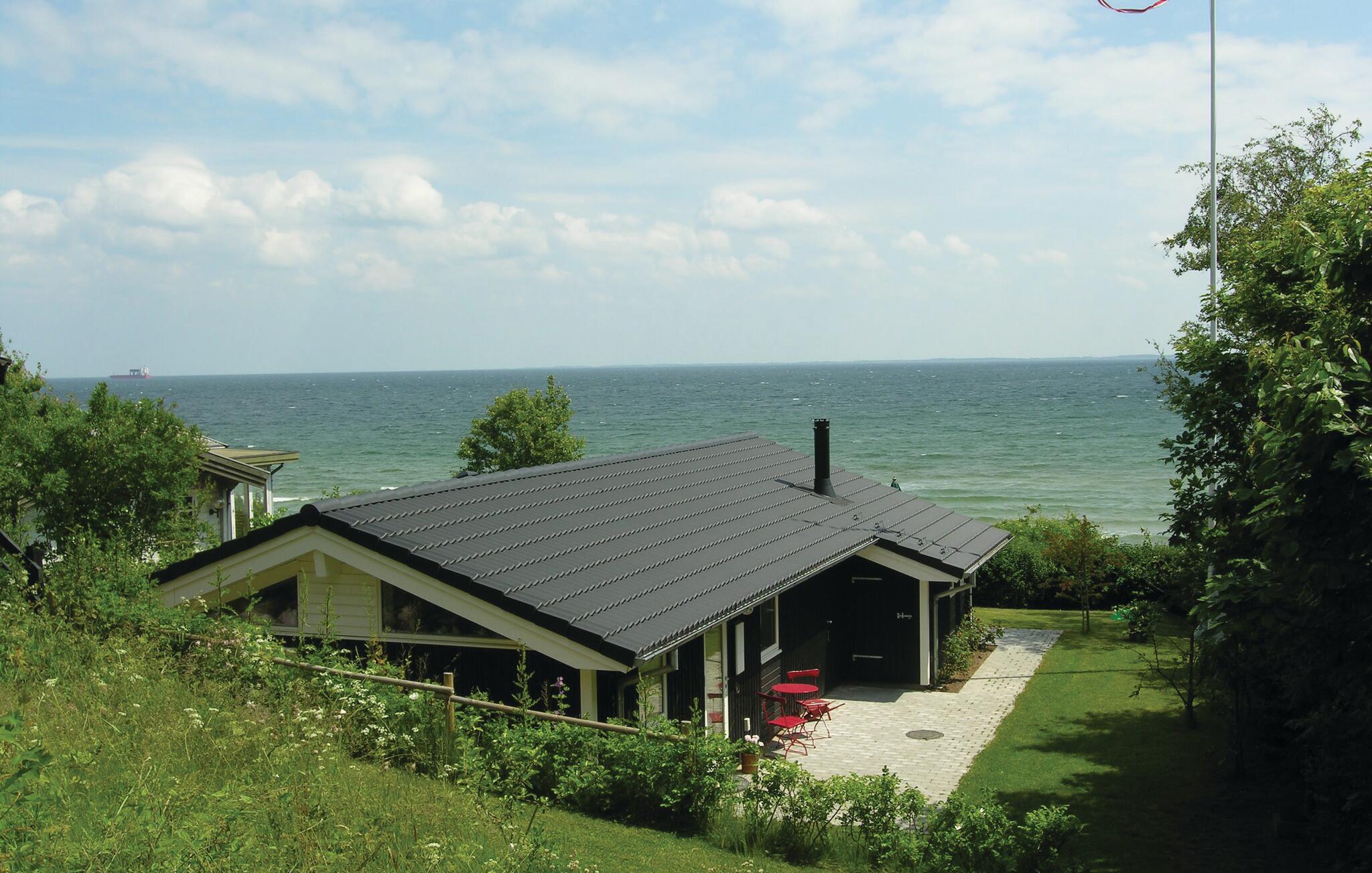 Hyggeligt træferiehus i 1. række til stranden med pragtfuld havudsigt og direkte adgang via trappe.