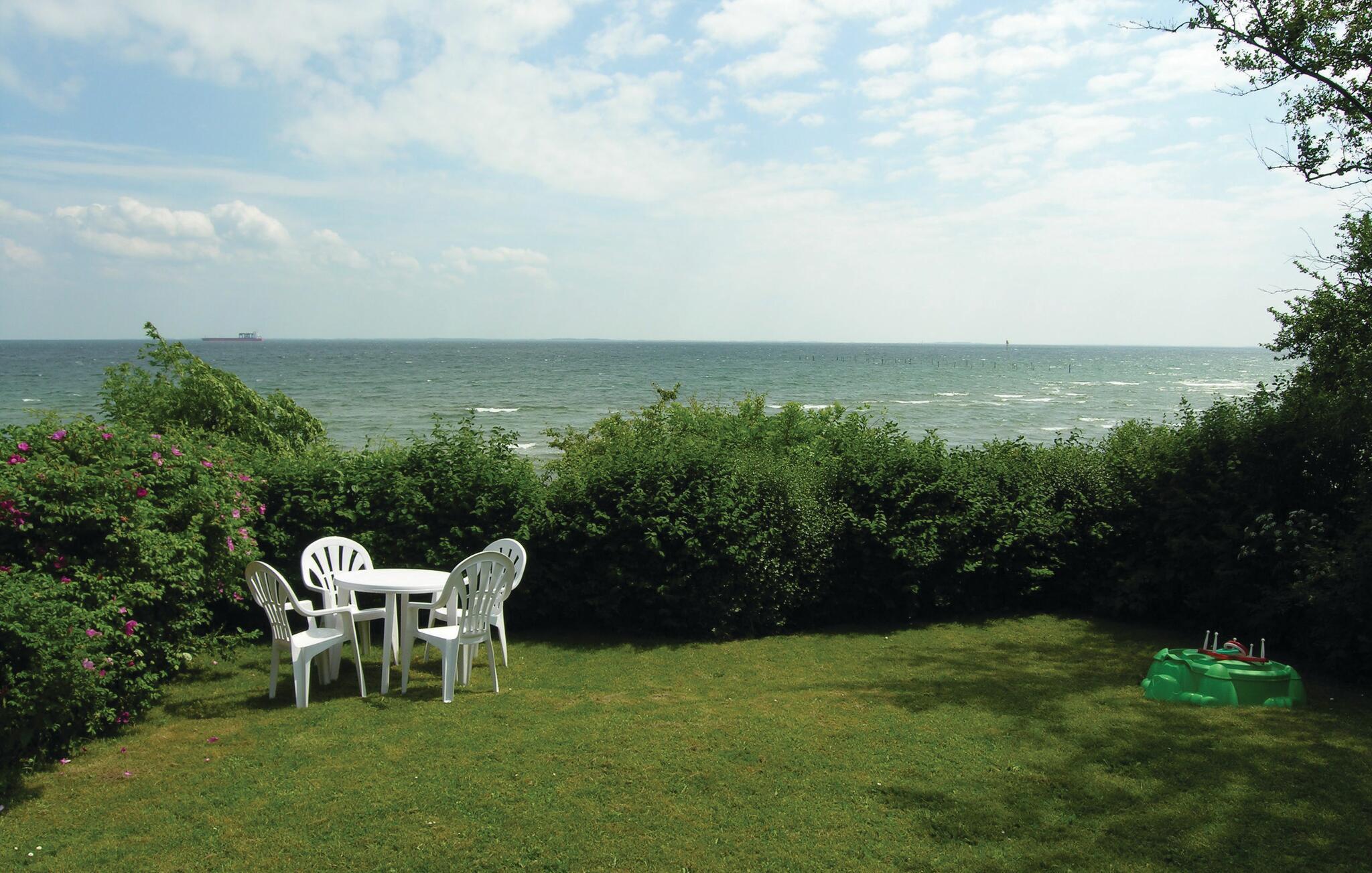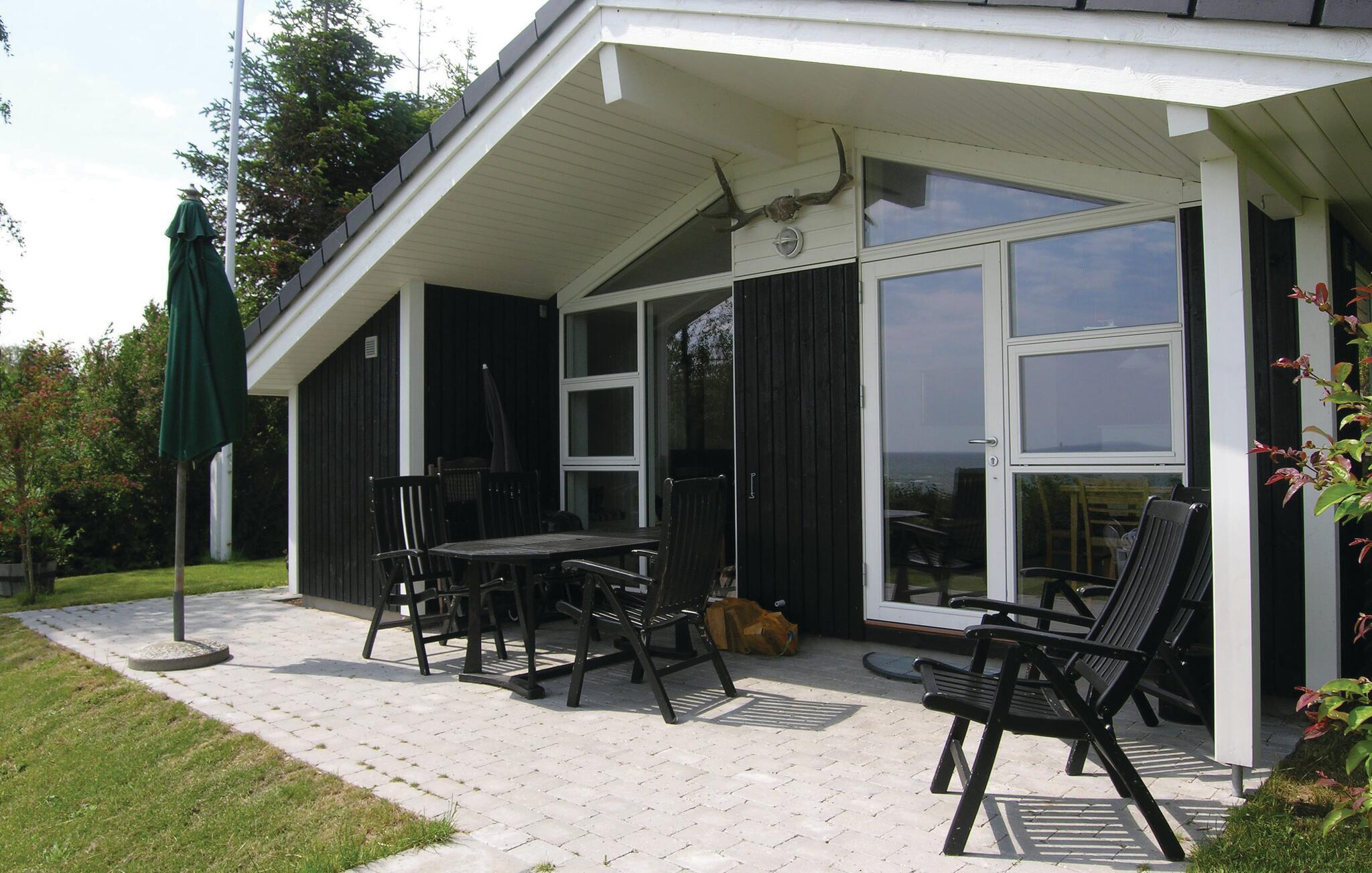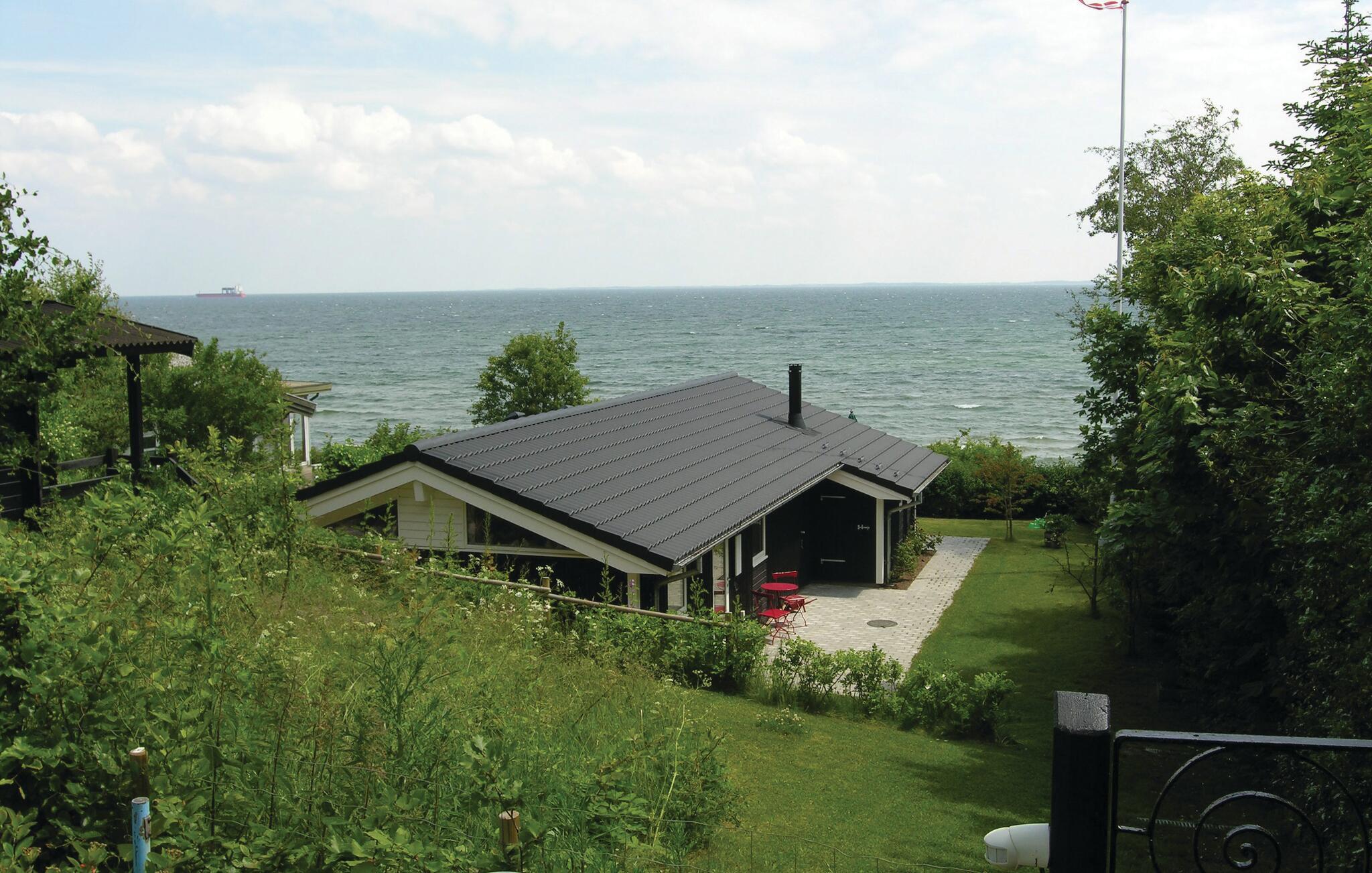 Hyggeligt træferiehus i 1. række til stranden med pragtfuld havudsigt og direkte adgang via trappe.