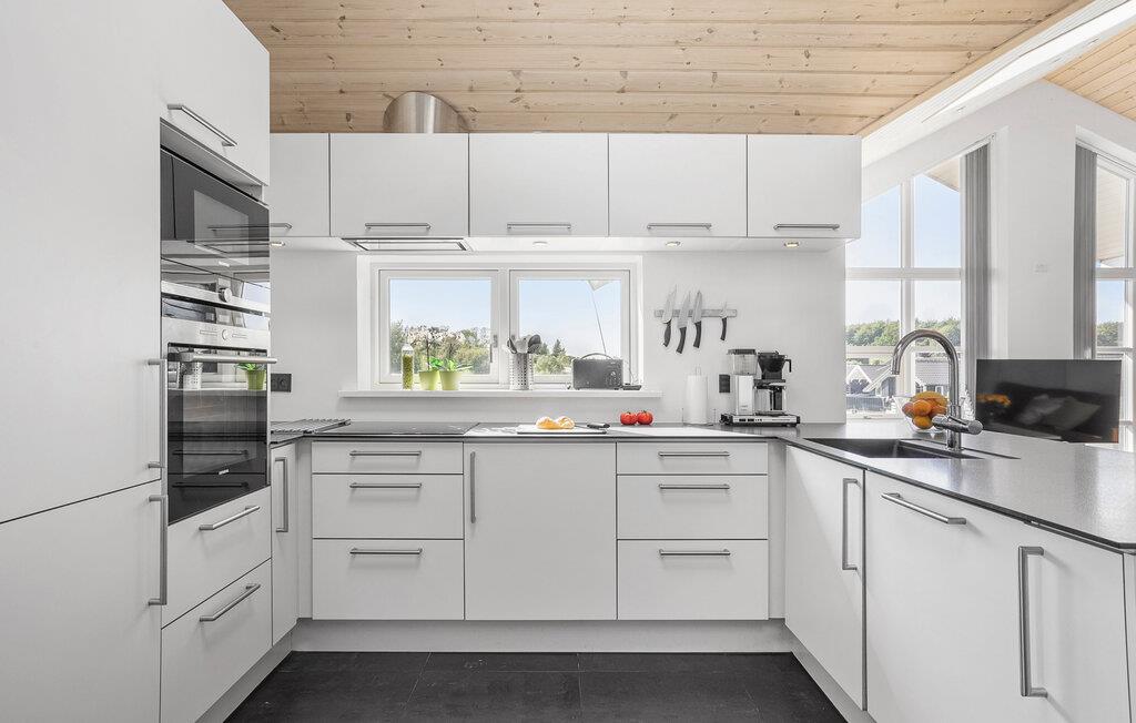 Dejligt træferiehus på toppen af en lille bakke med udsigt ud over et af de nyere feriehusområder i Spodsbjerg. Huset er lyst og venligt indrettet med moderne møbler, mange faciliteter og har ingen faste tæpper. Det store, flotte badeværelse med spabad og direkte adgang til sauna vil helt sikkert begejstre familien. Der er gode til-/frakørselsforhold for biler med bådtrailer. En fryser på 150 L til fisk står til jeres rådighed.