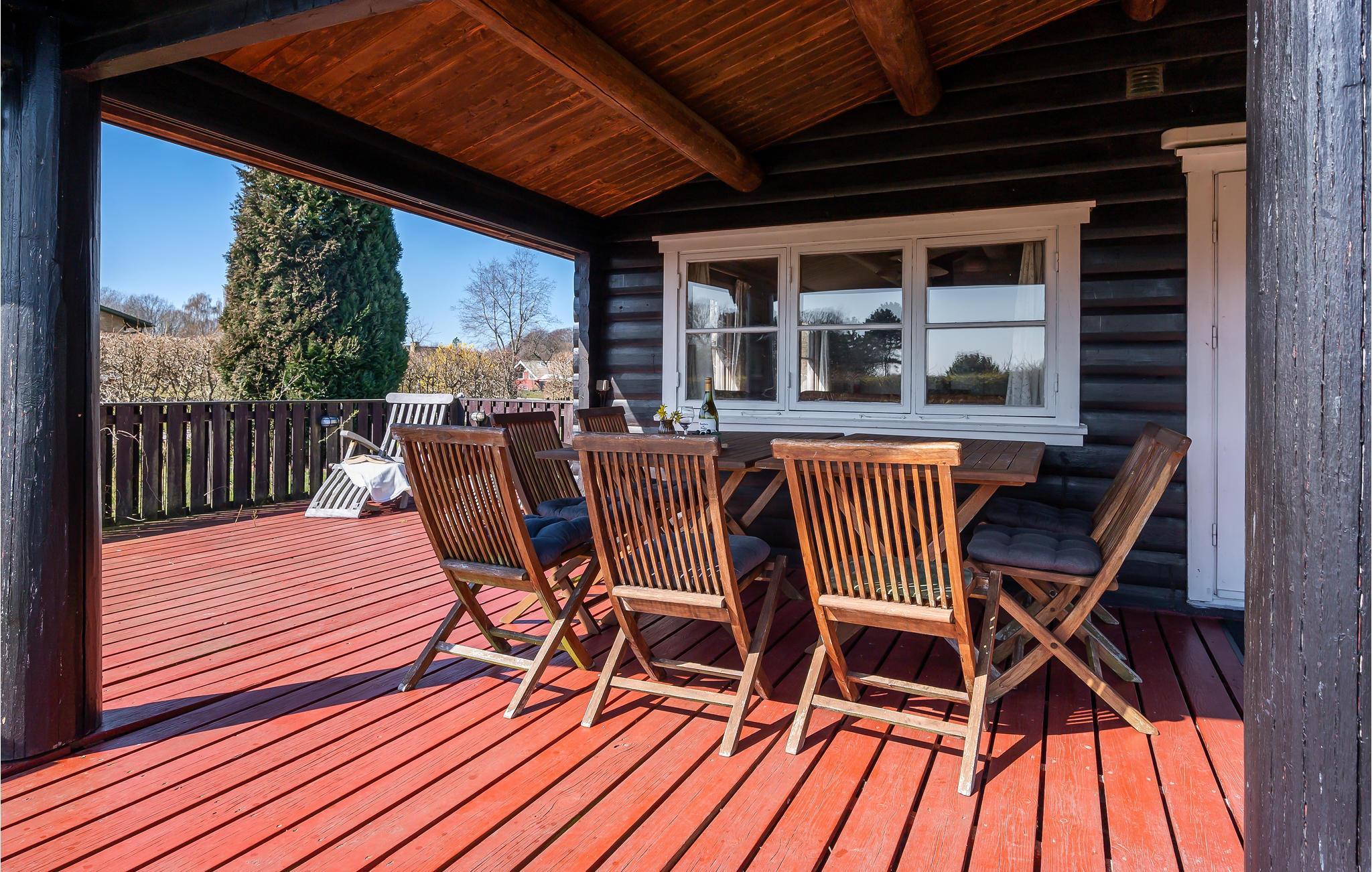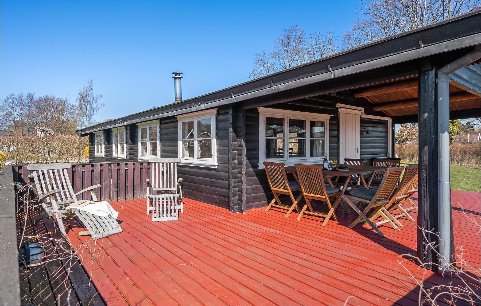 Charmerende træsommerhus nær havet med terrasse, brændeovn og stor have til afslapning og leg.