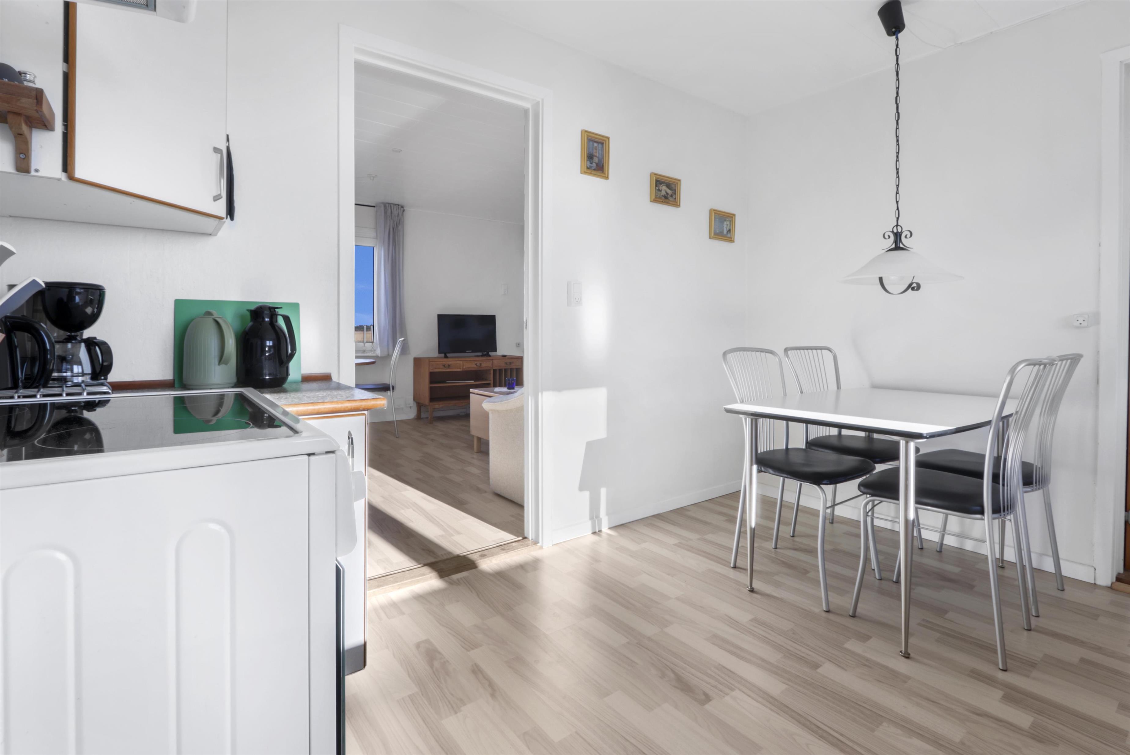 Lejligheden er enkelt og praktisk indrettet. Køkken med spiseplads, glaskeramisk komfur, emhætte, opvaskemaskine og køleskab med fryseboks. Fra køkkenet er der adgang til et stort soveværelse (1DS). Opholdsstue med TV med tyske og danske kanaler og sovesofa (2 personer). Renoveret badeværelse med toilet, håndvask, bruser, vaskemaskine og klinkegulv. Hele lejligheden opvarmes af et nyt og bæredygtigt luf til vand anlæg.