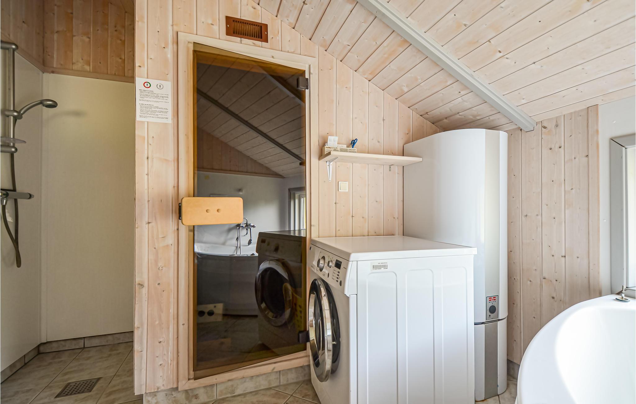 Hold jeres ferie i dette hyggelige træferiehus til 6 personer. Her findes 3 fine soveværelser med god plads. Huset er lyst og venligt indrettet med mange møbler lavet af træ, hvilket giver en dejlig stemning. Det ligger i et attraktivt, højtliggende og kuperet område med mange aktivitetsmuligheder som f.eks. lange trave- eller løbeture. Området byder på et rigt dyreliv der af og til også kan ses komme helt op til huset. Efter en lang dag i det fri er det herligt at slappe af foran brændeovnen, i det masserende spabad eller i den varme sauna.