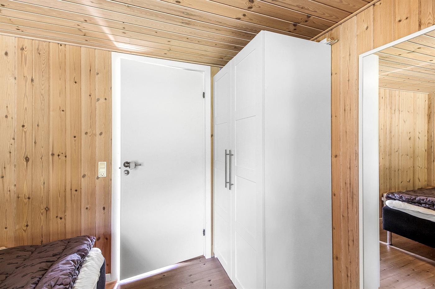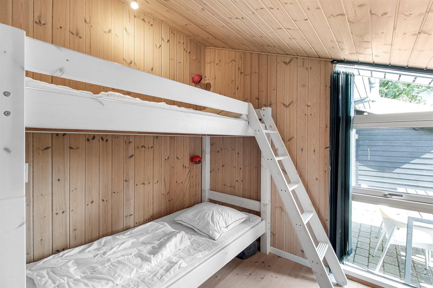 Der er i alt 3 soveværelser. Sovepladserne fordeler sig på: 4 sovepladser i dobbeltsenge. 2 sovepladser i køjeseng. Derudover er der 1 stk. barneseng.