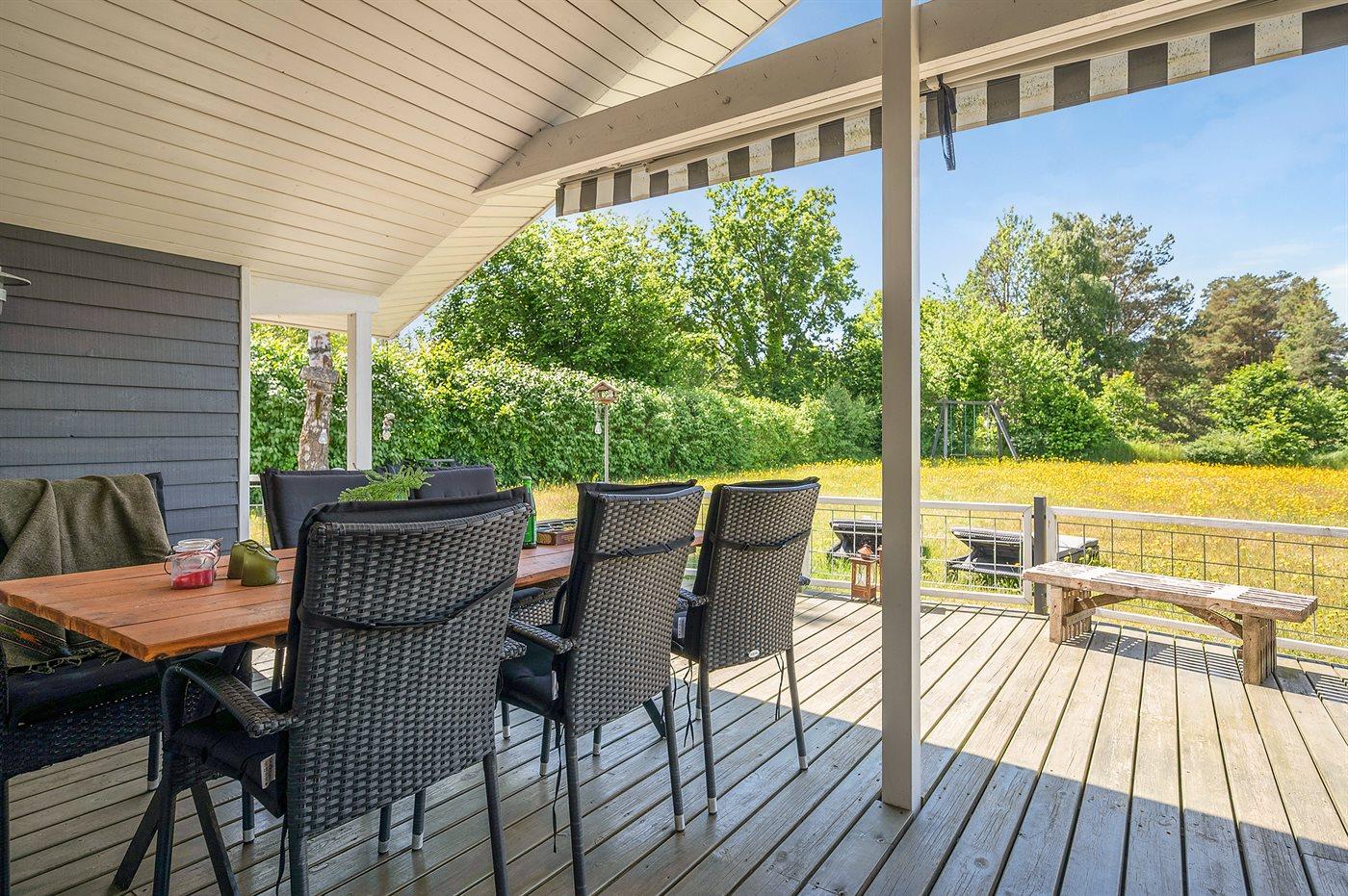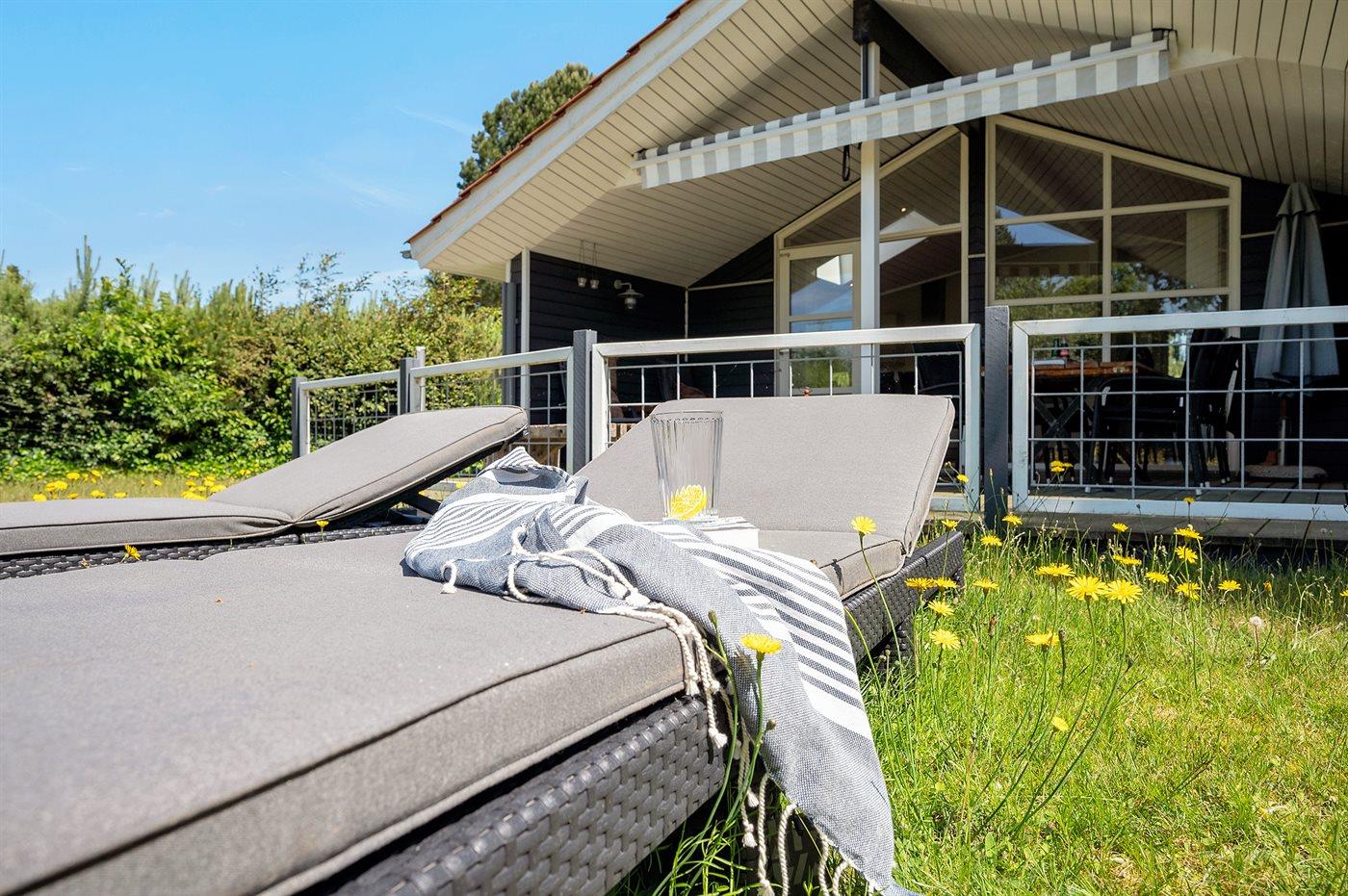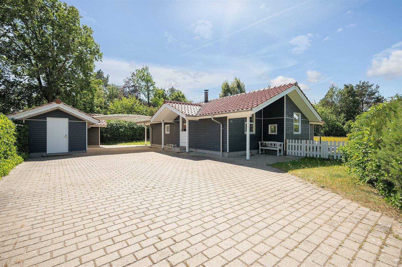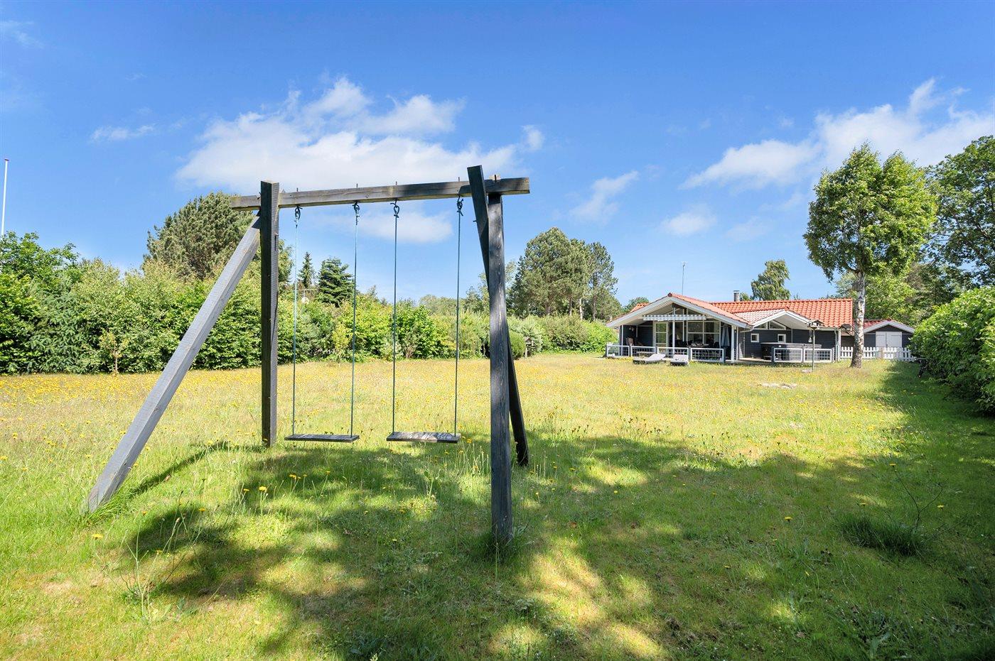 Ferieboligen er beliggende på en 1000 m² stor havegrund. Der er 500 m til havet. Nærmeste forretning er beliggende i en afstand af 4000 m. Til ferieboligen hører åbent terrasseareal. Desuden er der overdækket terrasse. Gynge. Bålsted. Udendørs bruser. Grill til rådighed. Der er carport til rådighed. Parkering ved ferieboligen.