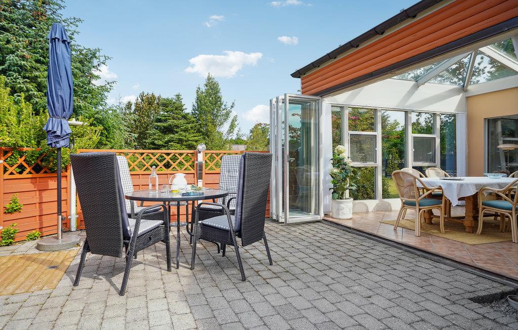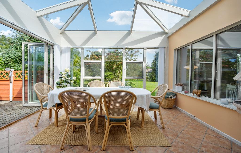 Huset byder jer velkommen i en rolig beliggenhed omgivet af smuk natur. Føl jer godt tilpas med hele familien i de lyse, smagfuldt indrettede rum. Her finder I mange skønne steder at slappe af enten alene eller i selskab de andre. Nyd jeres eftermiddagskaffe i den enestående udestue, mens I nyder udsigten til haven. Den rummelige ejendom byder på masser af plads til at lege og slappe af. Her finder I flere steder at nyde en god stund udendørs. Sæt jer godt til rette med en bog på en af terrasserne, nyd freden og roen, mens jeres børn gynger og graver i sandkassen.