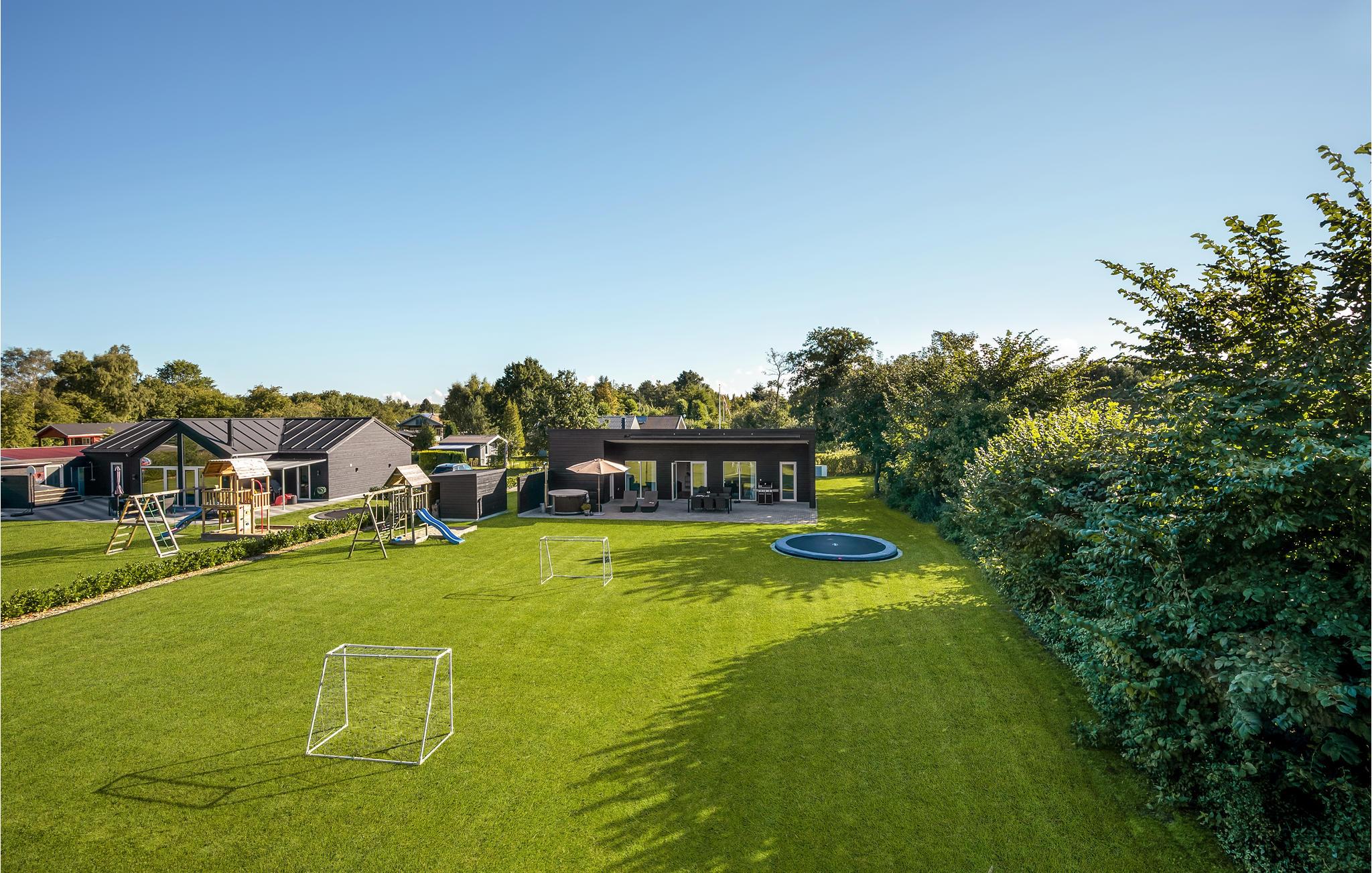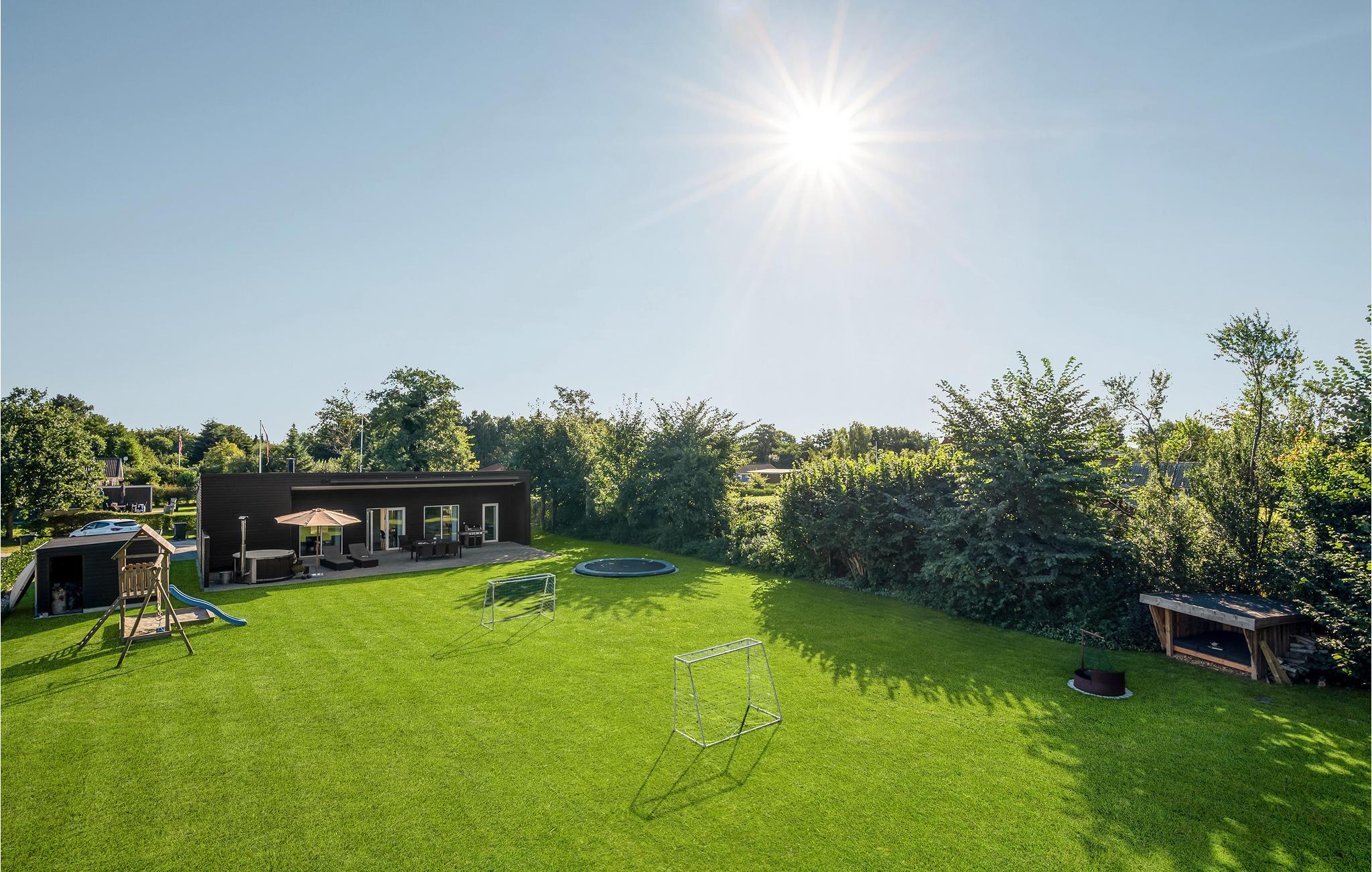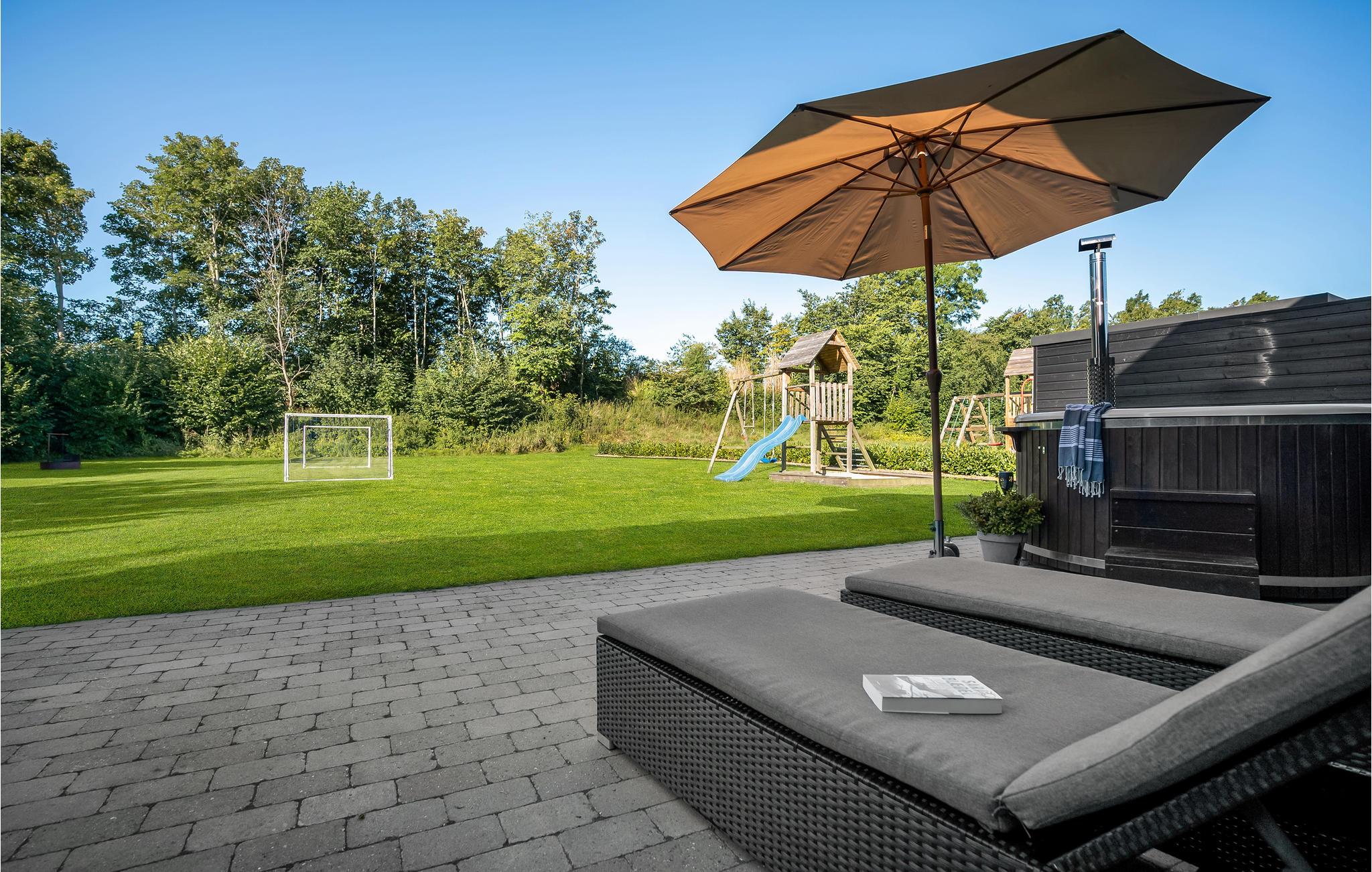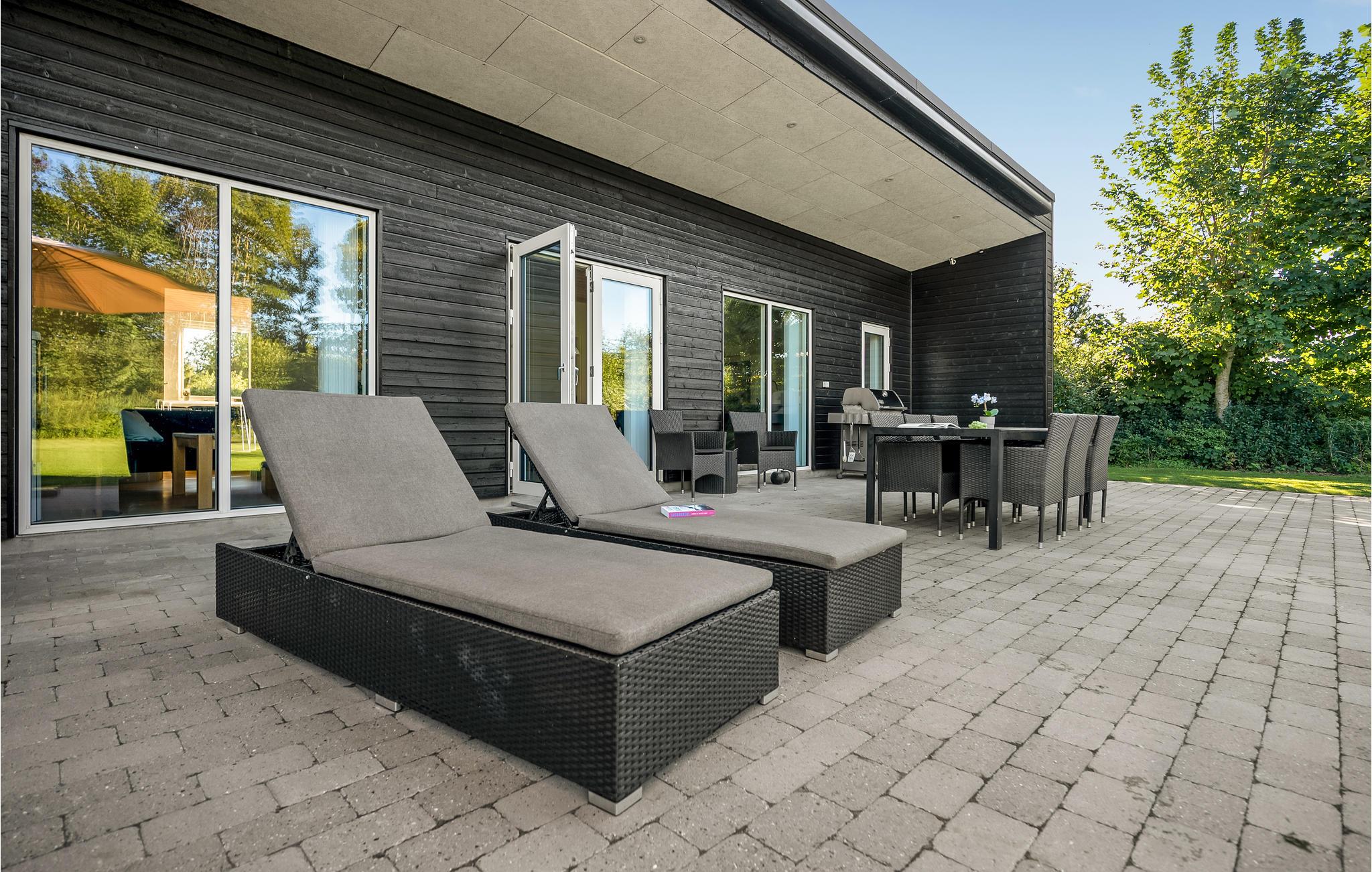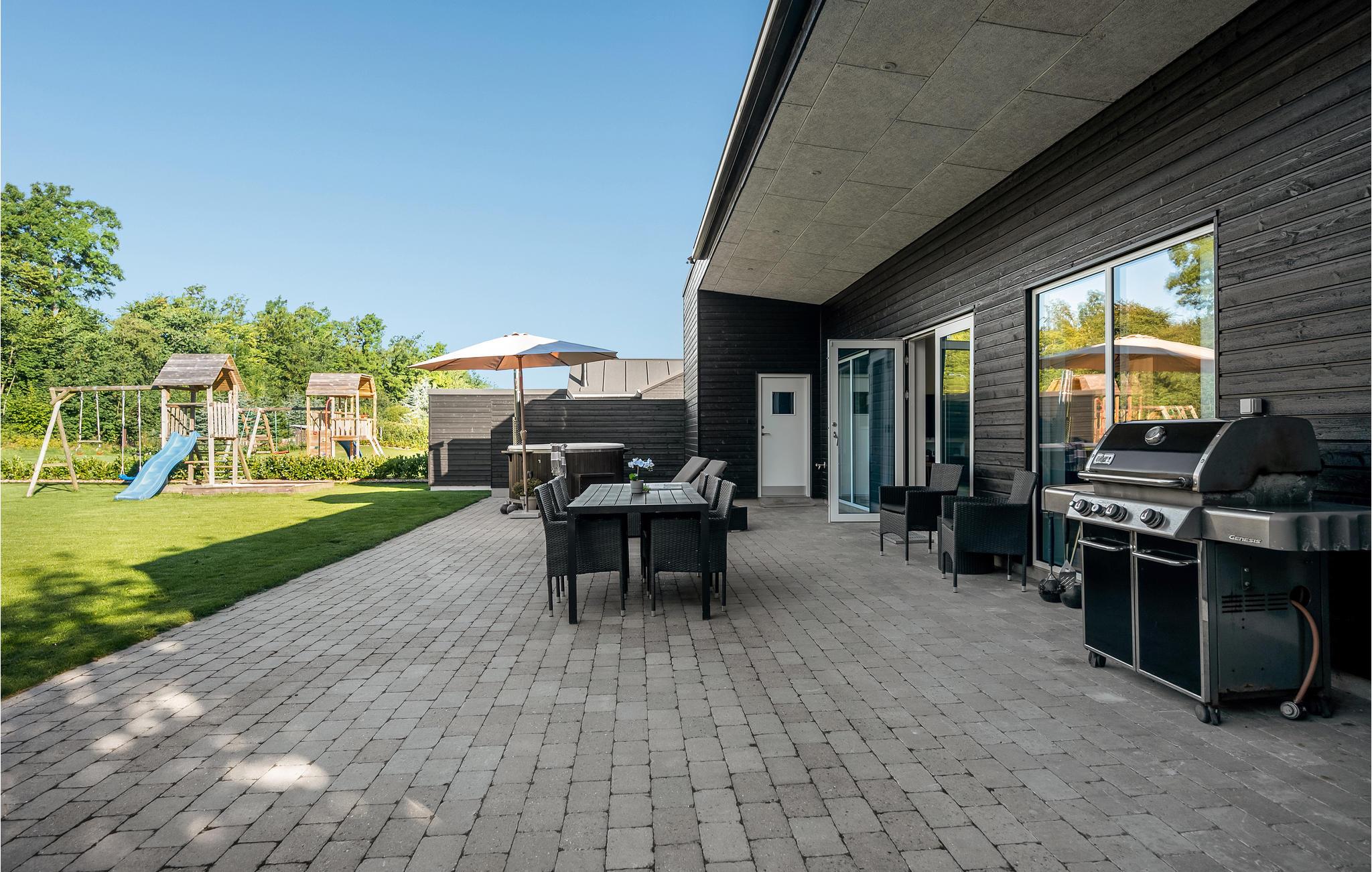 Den åbne terrasse lægger op til mange timers udendørshygge med grill eller en tur i vildmarksbadet,