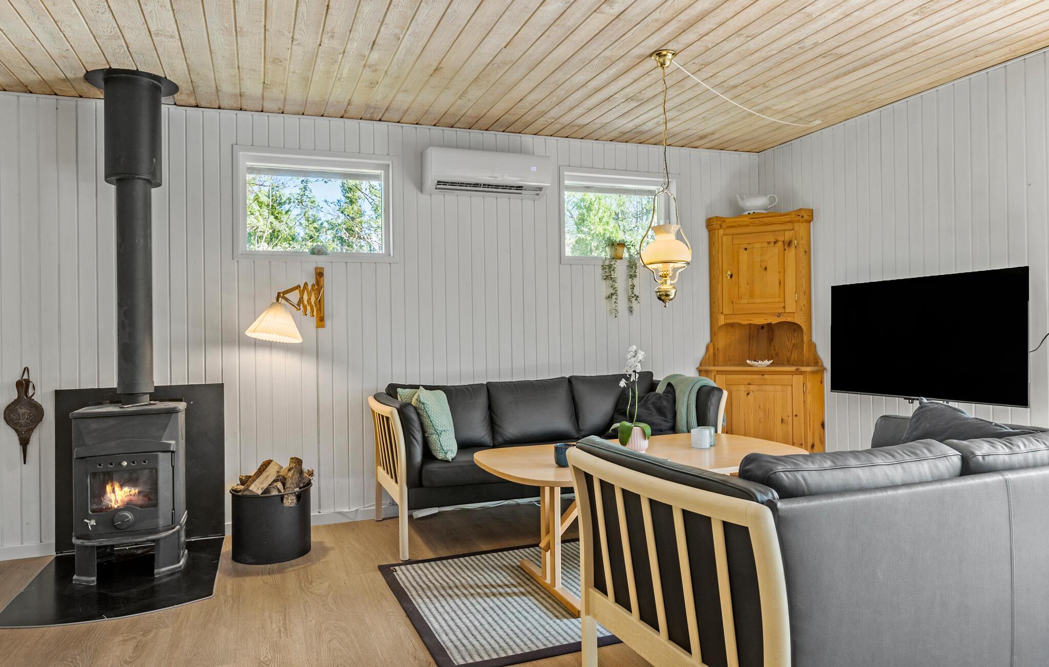 Velkommen til dette attraktive træhus, hvor der venter jer et vidunderligt ophold i skønne omgivelser tæt på Store Sjørup Strand. Huset er flot indrettet med varme trælofter, åben planløsning og store vinduespartier, der giver det indre et lyst og luftigt udtryk. Hvis vejret bider lidt, kan I tænde op i brændeovnen, der giver varme og det et knitrende lydtapet til aftenhyggen med brætspil eller en god film i sofaen efter en dejlig feriedag.