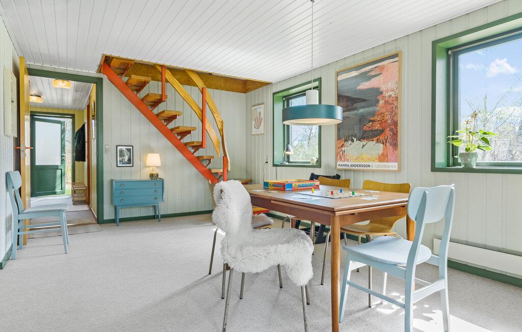 Velkommen til dette dejlige hus, der ligger i skønne omgivelser og kun en kort gåtur fra Kattegats blide bølger. Indvendigt emmer det af charme over to etager med træpaneler, delvist fritlagte murværk og en brændeovn, der giver varme og et hyggeligt lydtapet, når vejret bider lidt. Tilbered nogle lækre retter i køkkenet og nyd dem ved spisebordet, inden I hiver brætspillene frem eller sætter jer godt til rette med et glas vin og hver jeres bog til langt ud på aftenen i en af de to stuer.