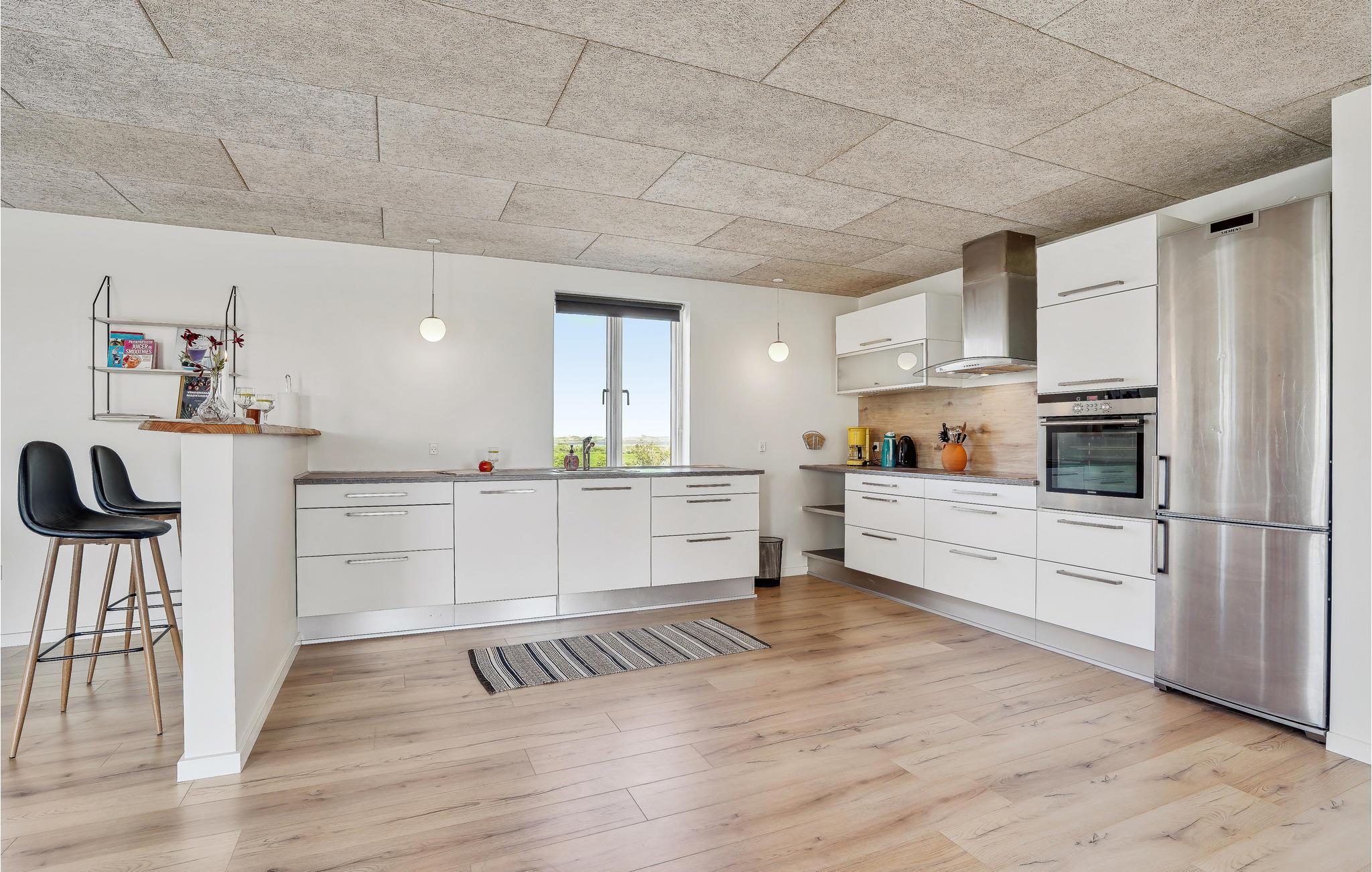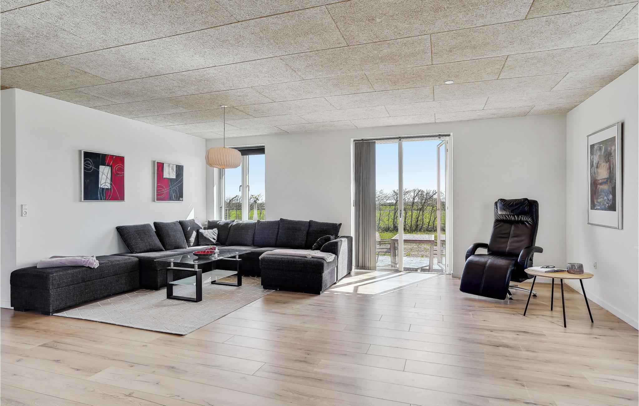 Velkommen til en familieferie i Vestjylland, hvor I kan få jeres base i denne velindrettede villa, som ligger i Brunbjerg. Fyld dagene med hyggelige udflugter og vend hjem til huset, hvor I kan samles om madlavningen, brætspil og bøger inde eller udendørs. Huset er lyst, moderne og veludstyret med gode faciliteter, så I kommer ikke til at mangle noget. Opholdsrummet bliver centrum for alle de fælles aktiviteter og har adgang direkte ud til en solterrasse, hvor I kan nyde dagens måltider. Efter dagens udflugter kan I læne jer tilbage i vildmarksbadet og lytte til en lydbog, mens børnene leger på græsplænen.
