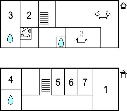 Soveværelse (nr. 1) - 1 Soveplads. (Enkeltseng(e)). 2 Sovepladser. (Dobbeltseng(e)). 1 Soveplads. (Sofa, madras eller lignende).
