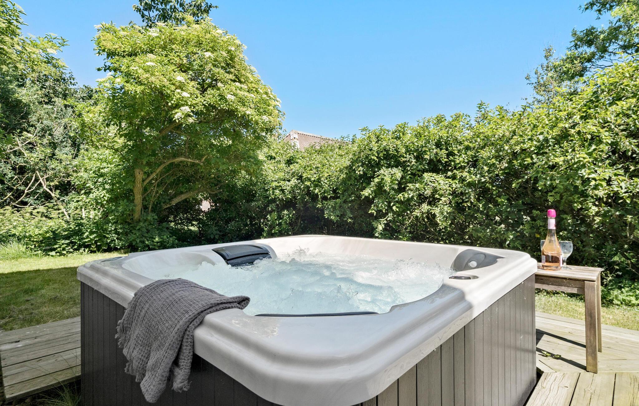 Mens børnene er underholdt kan I tænde op for grillen, og forberede en lækker middag, som I kan nyde udenfor under træerne. Efter en lang og begivenhedsrig dag kan I hoppe en tur i spabadet på terrassen og bagefter varme jer op i saunaen.