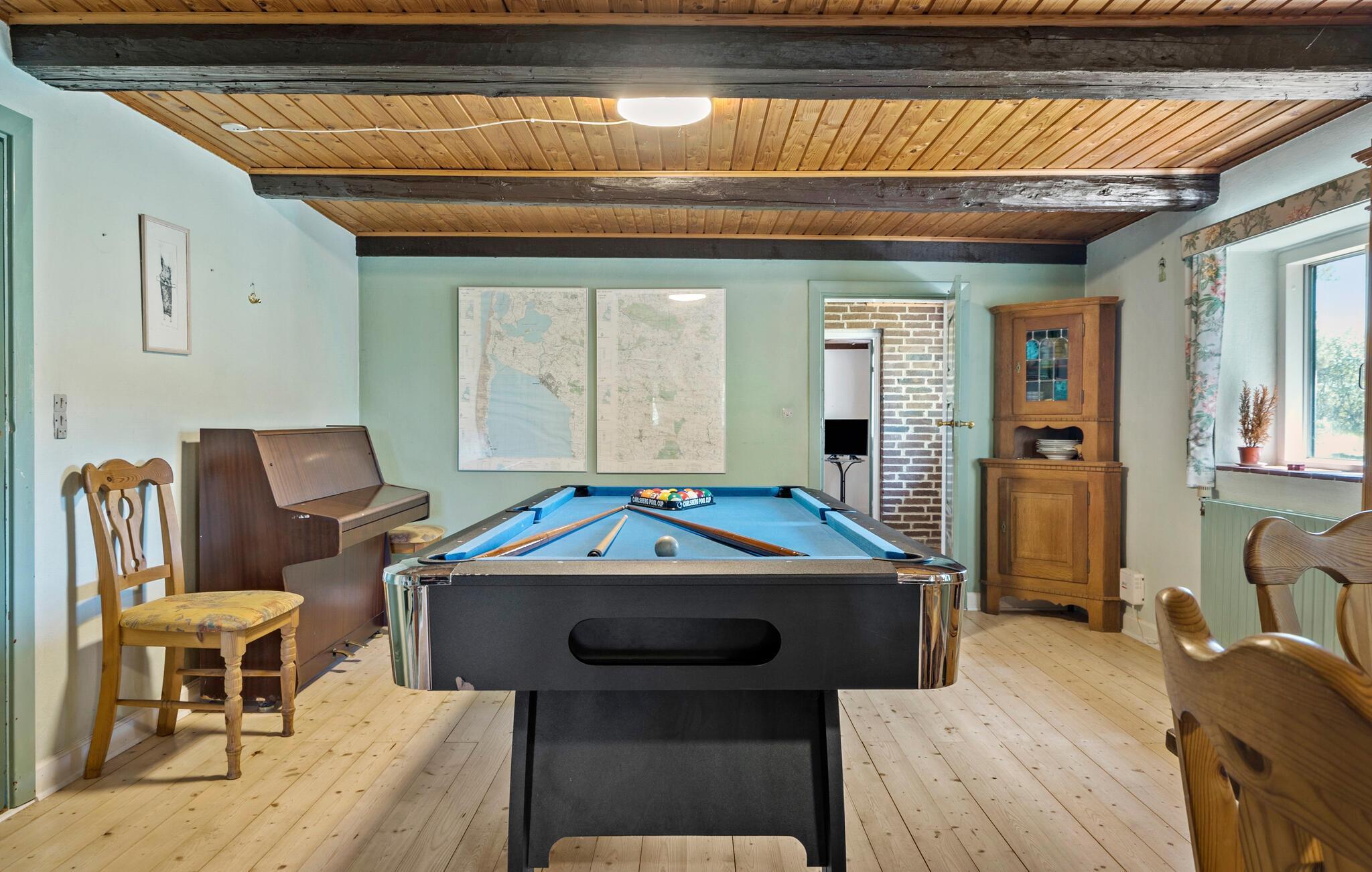 Skab dejlige ferieminder sammen med hele familie eller venner i dette store og hyggelige hus. Den praktiske og charmerende indretning i to etager giver jer plads til både leg, afslapning og hyggelige stunder sammen. Find brætspillet frem og afhold spilleaftener rundt om spisebordet, eller sæt en fælles film på tv’et og smid jer i sofaerne. I kan også dyste mod hinanden i billiard eller fodbold ude i haven.