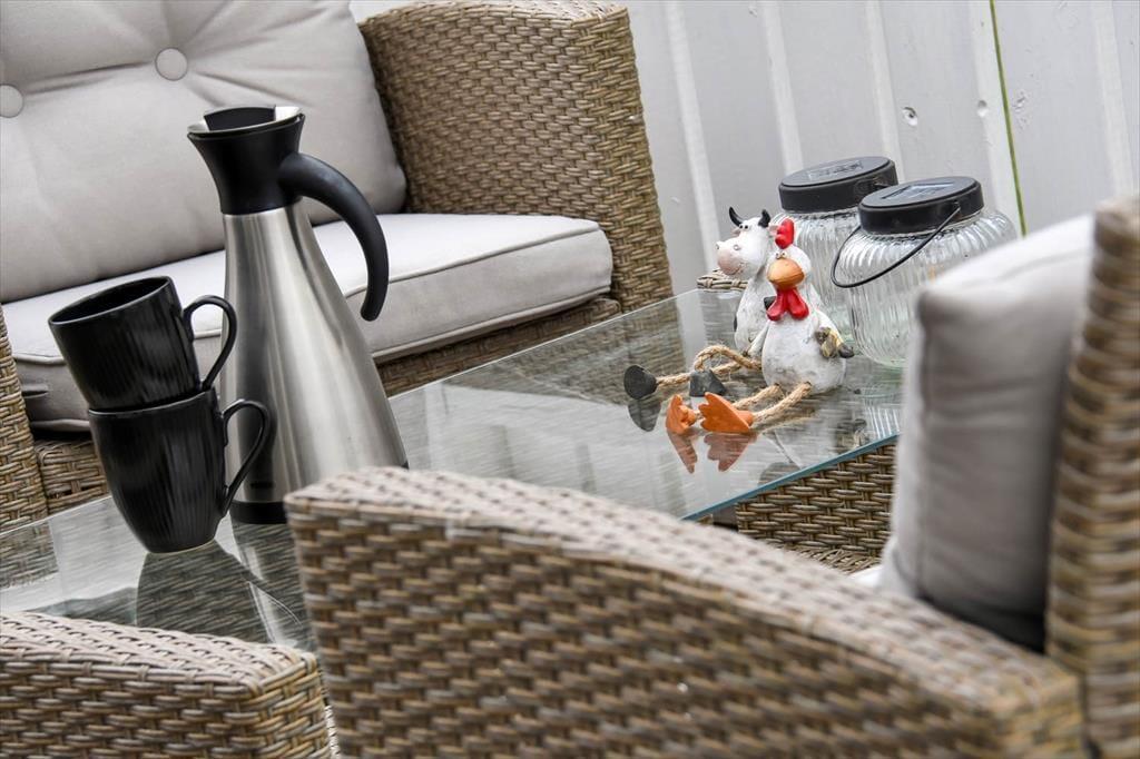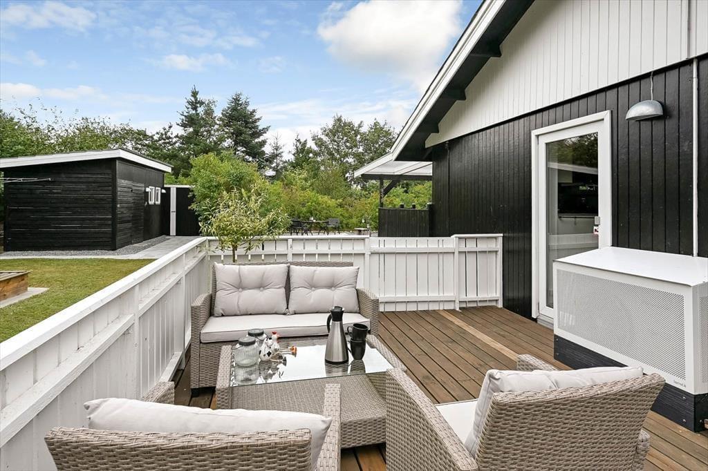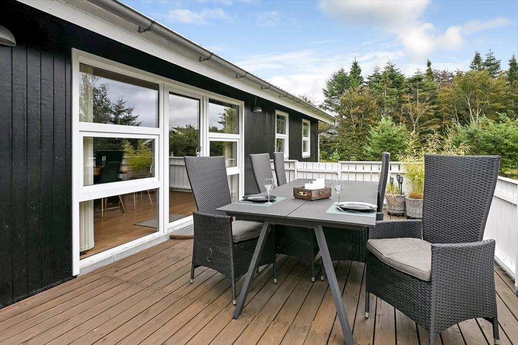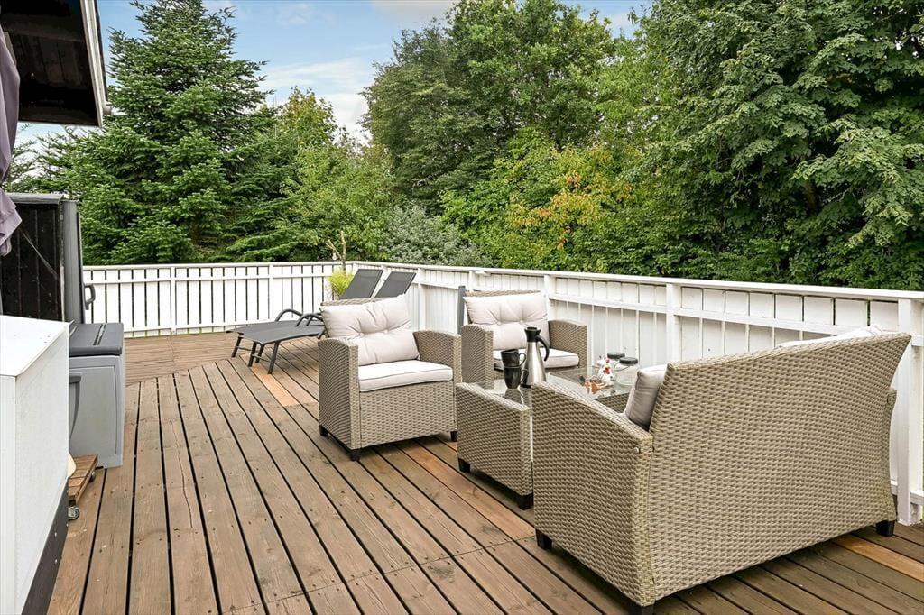 Sommerhusets naturgrund er stor og skøn, og i forlængelse af sommerhuset er der to gode terrasser at vælge imellem. Den ene har netop fået ny overdækning i 2024, og det er en rar detalje, hvis en lille sommerbyge skulle passere forbi, eller hvis du gerne vil sidde længe ude om aftenen, efter at duggen er faldet. Hvis du hellere vil sidde under åben himmel, kan driverlivet udspille sig på den sydvestvendte terrasse, der er dejligt solrig en stor del af dagen. Begge terrasser er for øvrigt helt aflukkede, hvilket familier med små børn eller hundeejere sikkert vil sætte pris på.