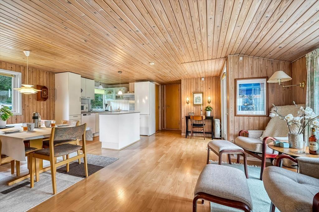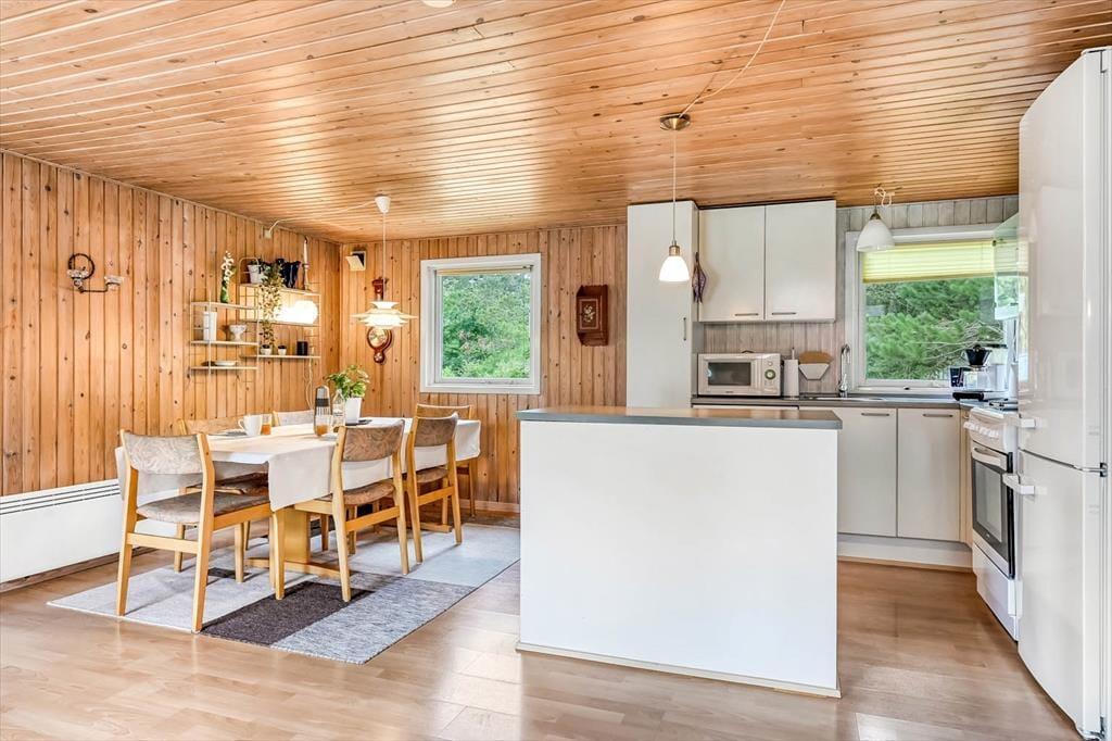 Sommerhus i Stauning, Vestjylland, med plads til 6 voksne. Der er en hyggelig indretning, og du finder desuden vaskemaskine og opvaskemaskine i boligen.