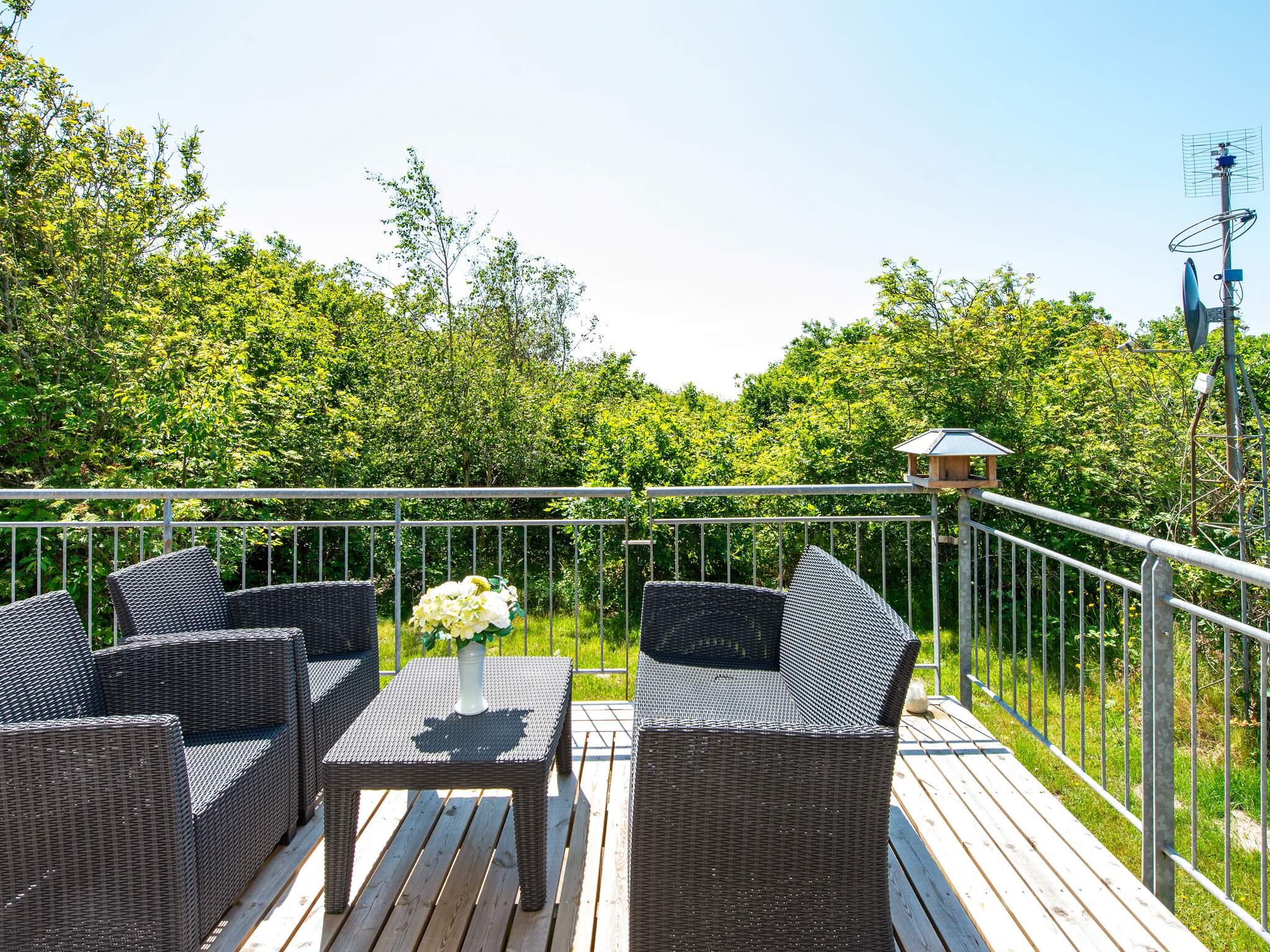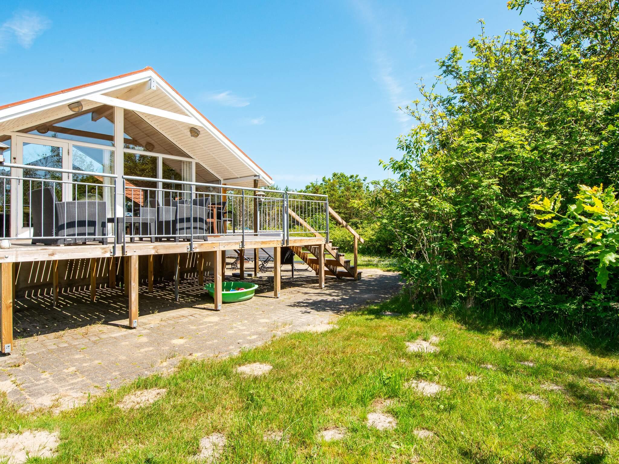 Utraditionelt sommerhus med spabad og sauna bygget i 2 forskudte plan beliggende ca. 200 m fra Ringkøbing Fjord. Fra den store køkkenafdeling er der 4 trin op til stue og spisestueafdeling, hvorfra der er udsigt over Ringkøbing Fjord samt udgang til en hævet terrasse. Stuen er som resten af huset veludstyret, smagfuldt og praktisk indrettet med bl.a. stereoanlæg med cd-afspiller, hjørnesofa, brændeovn og et spisebord med udsyn over det store køkken, som også er udstyret med moderne faciliteter. Der er installeret varmepumpe/aircondition. Tre soverum med dobbeltseng samt et soverum med dobbeltseng og køjeseng (170 cm lang). I det store badeværelse er der god skabsplads og 3-personers spabad og sauna. Endvidere er der et gæstetoilet i huset. Grunden har en stor græsplæne, som er omgivet af blandet beplantning der giver gode læmuligheder. For børnene er der X-box 360, gynge og sandkasse. Ca. 200 m til legeplads. Fjorden kan tilgås gennem et sivområde. Udlejes ikke til ungdomsgrupper.