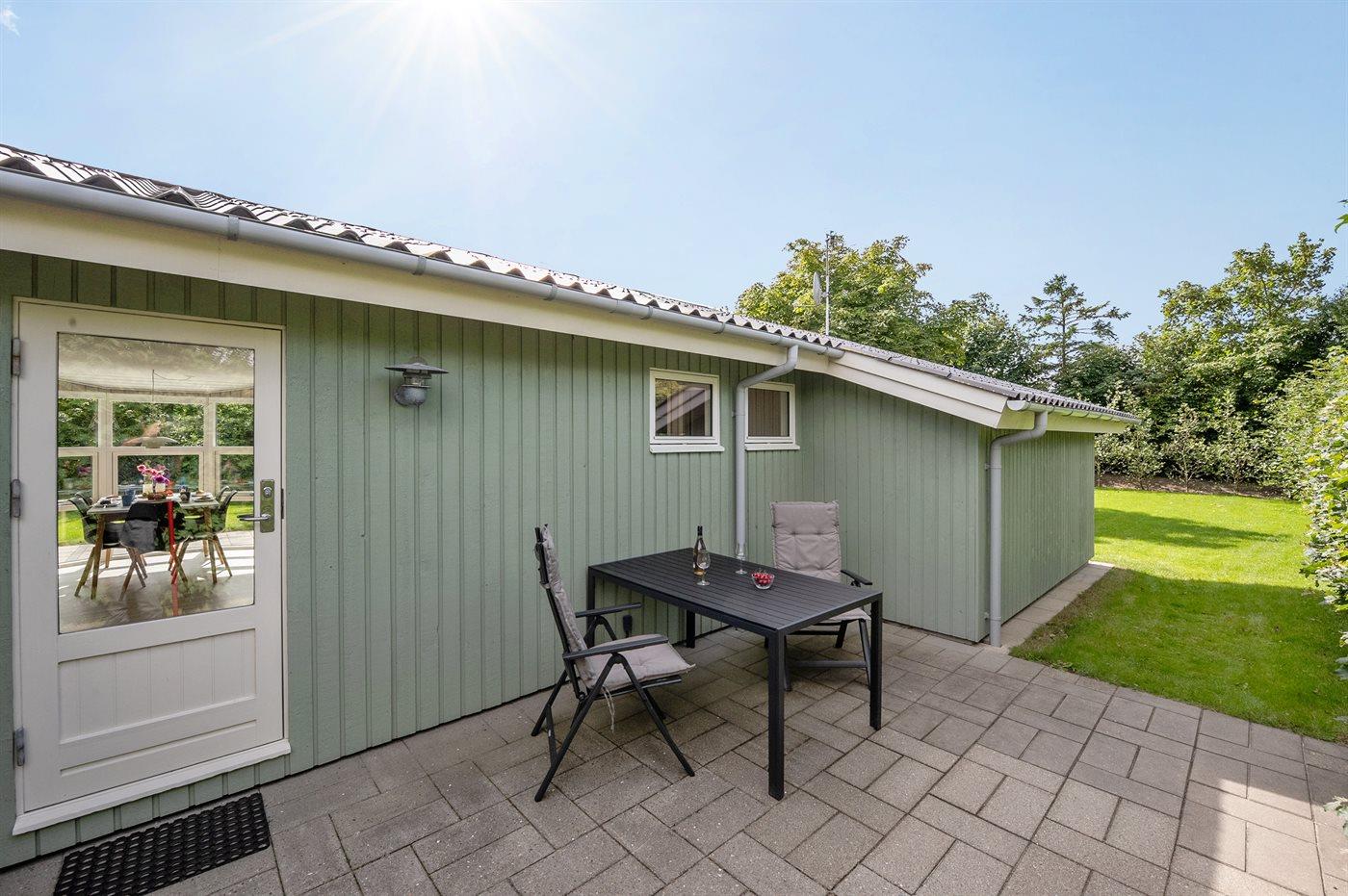 Ferieboligen er beliggende på en 1200 m² stor naturgrund. Der er 400 m til fjorden. Nærmeste forretning er beliggende i en afstand af 1000 m. Til ferieboligen hører 50 m² terrasseareal. Desuden er der 18 m² overdækket terrasse. Der er redskabsrum. Gynge. Sandkasse. Grill til rådighed. Parkering ved ferieboligen.
