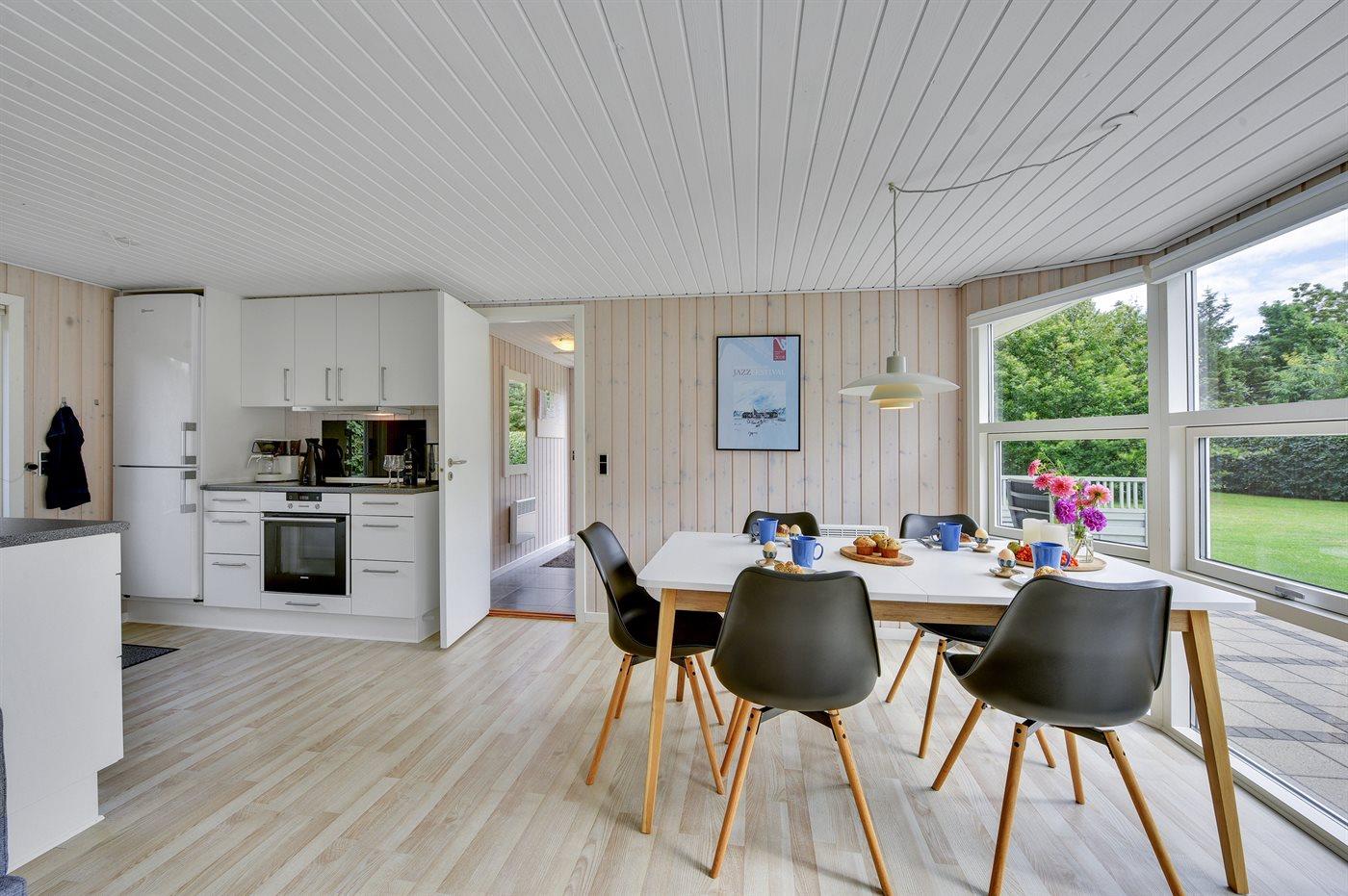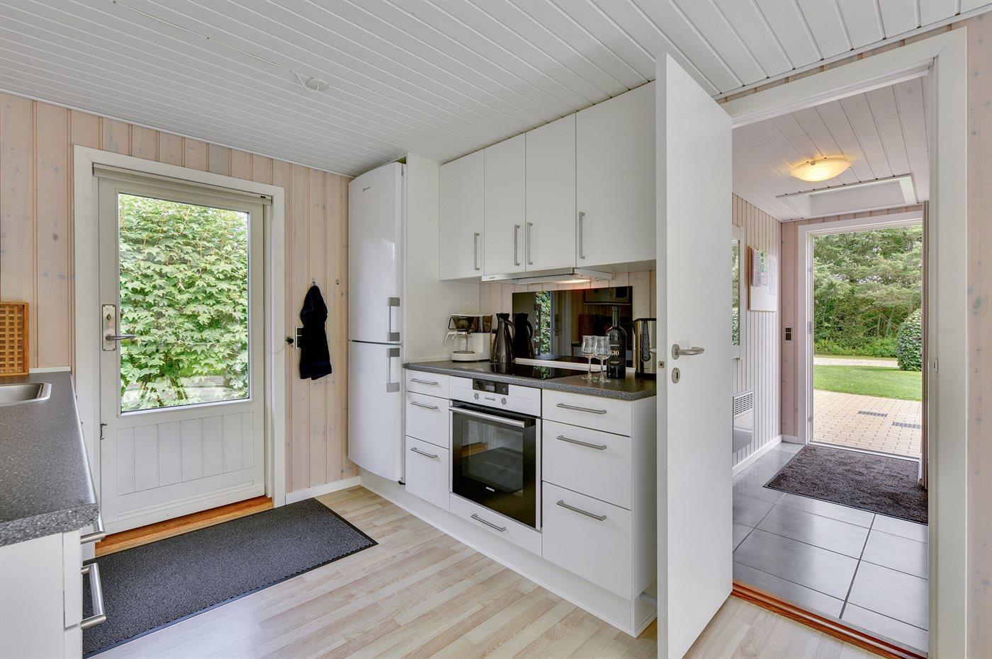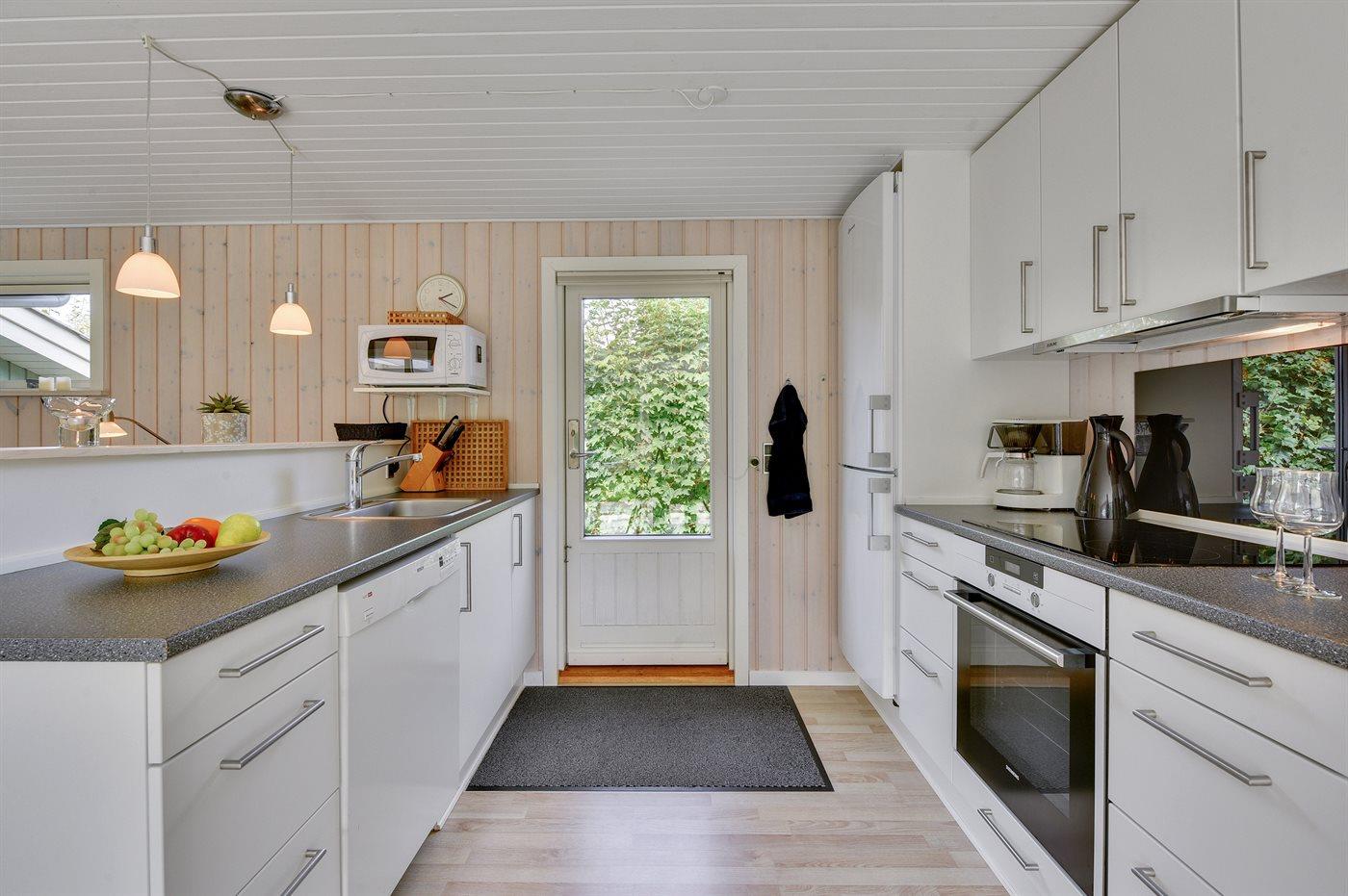 Køkkenet er udstyret med 1 køleskab. Der er 4 keramiske kogeplader, varmluftovn, mikrobølgeovn samt opvaskemaskine.