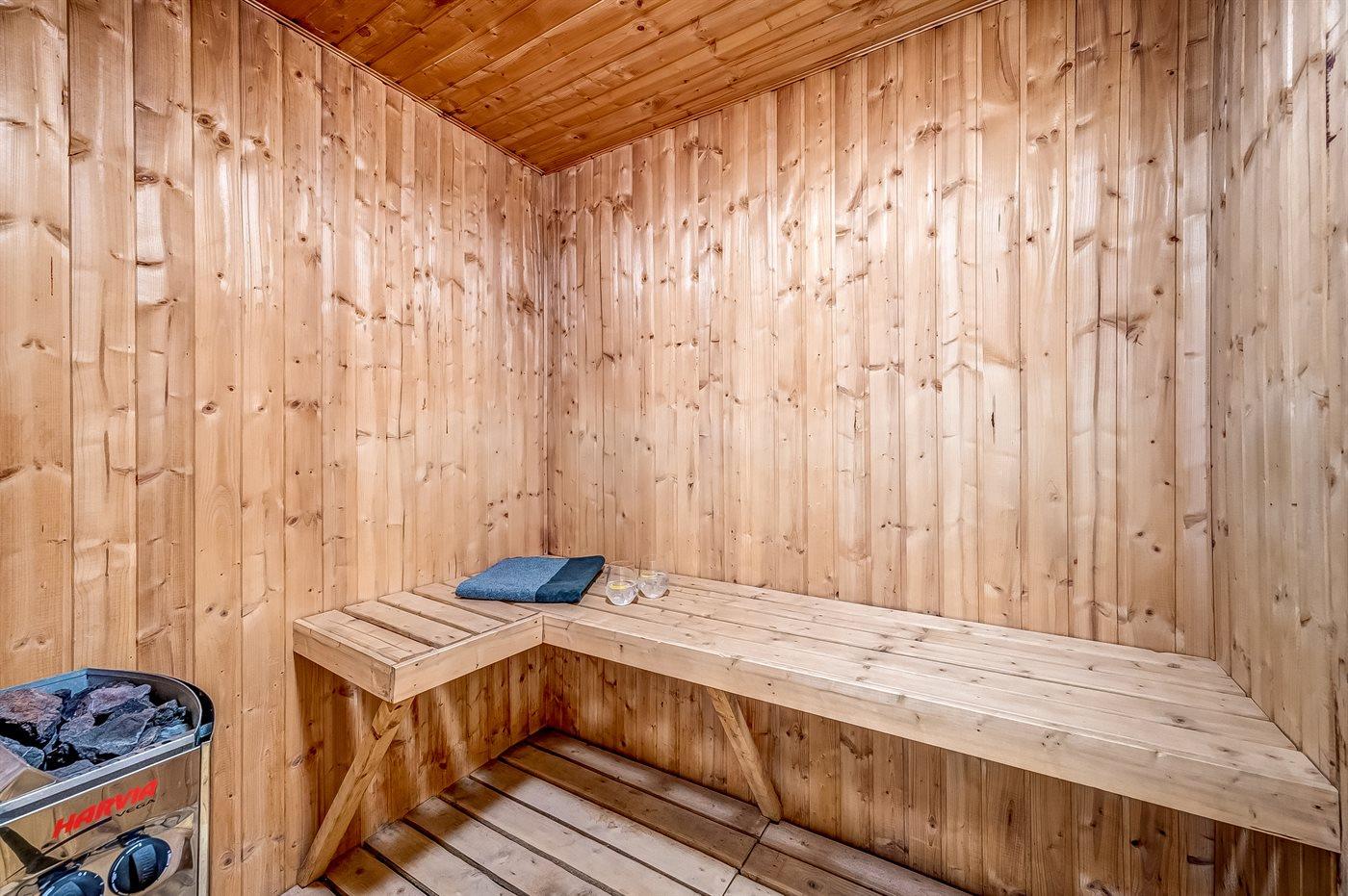 Der er 1 badeværelse med bruseniche og 1 toilet. I saunaen er der mulighed for afslapning.