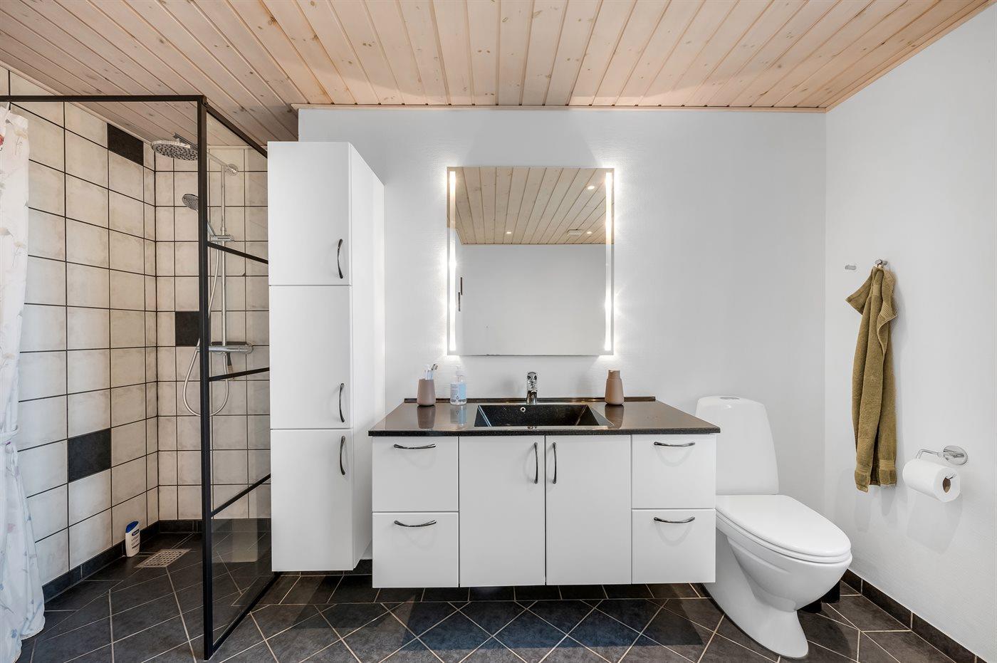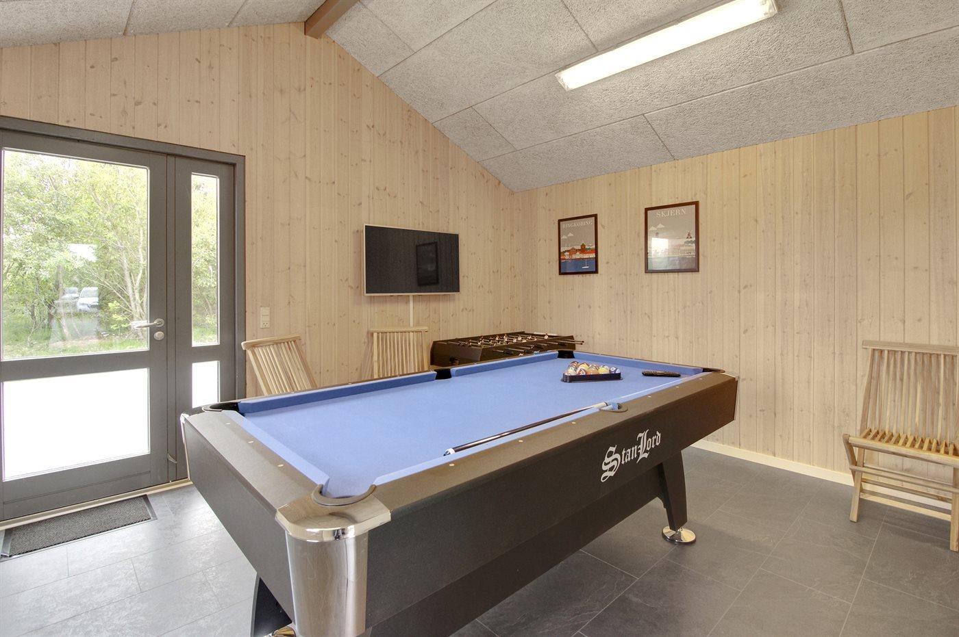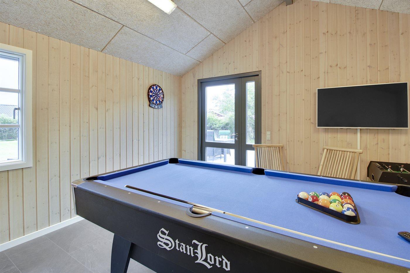 Til huset hører et aktivitetsrum, som er indrettet med poolbord, bordfodbold, elektronisk dart og TV. Indvendigt er der trægulve overalt, dog opvarmet klinkegulv i gangen og gulvtæpper på 1. sal. Der er 2 lækre badeværelser, begge med gulvvarme og bruseniche. I det store badeværelse i stueetagen er der desuden et badekar.
