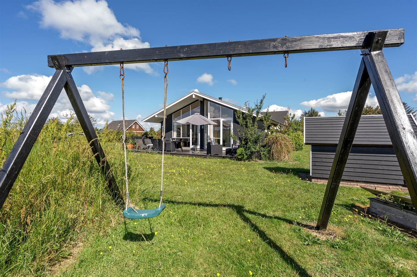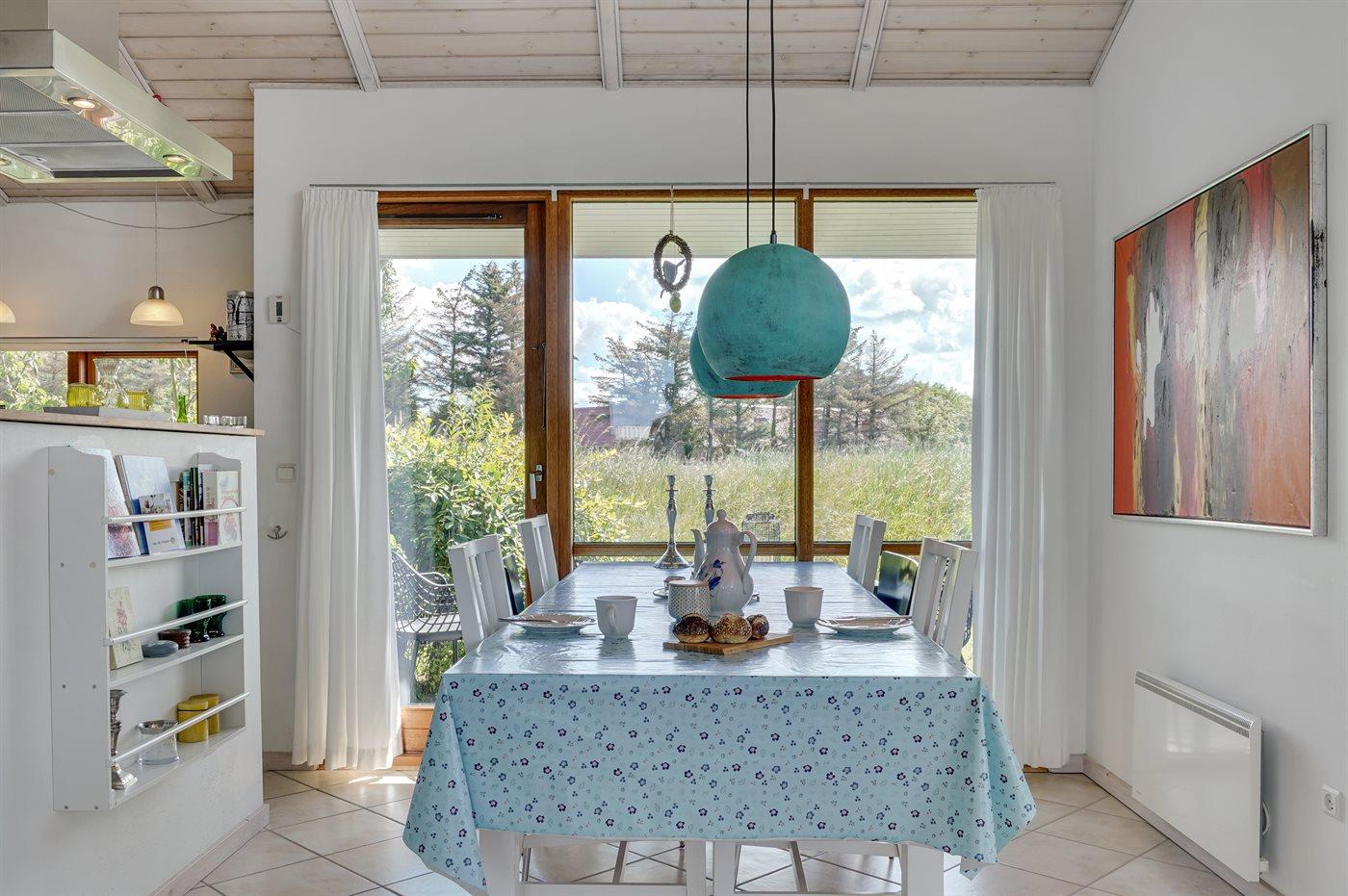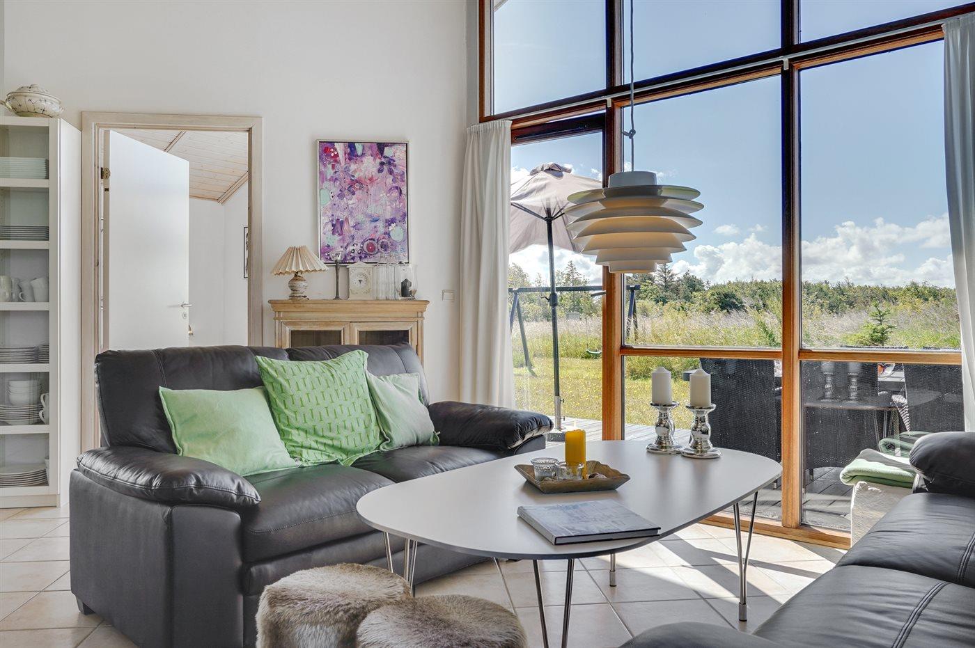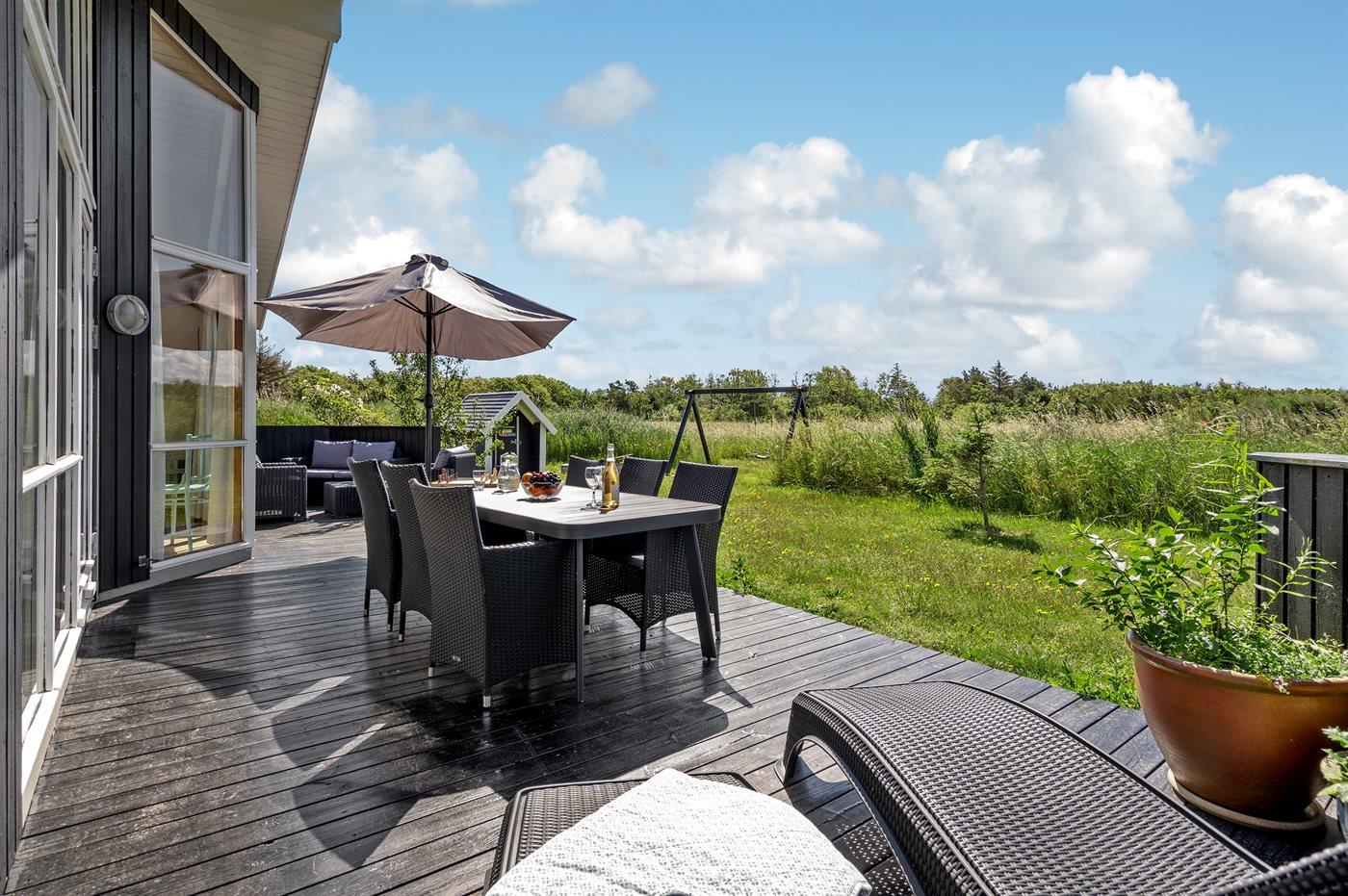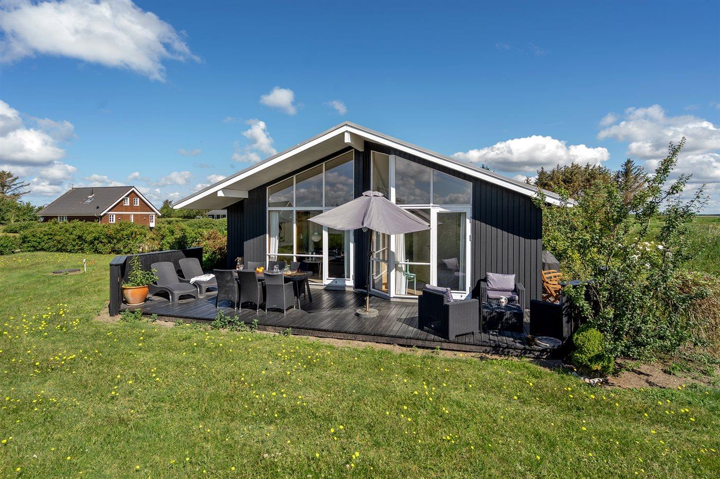 Kun 200 m fra Ringkøbing Fjord ligger dette moderne og smagfuldt indrettede sommerhus. Huset ligger på en velplejet naturgrund i rolige og naturskønne omgivelser. Der er flere skønne terrasser og hyggekroge omkring huset med dejlige havemøbler. Bemærk, at alle sengene måler 140x200 cm.