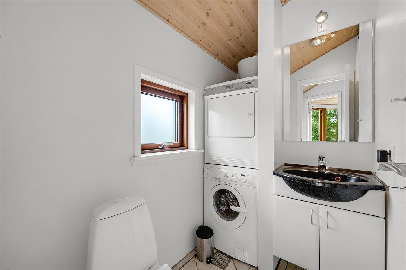Der er 1 badeværelse med bruseniche og 2 toiletter, heraf 1 gæstetoilet. Der er gulvvarme på 1 badeværelse. I saunaen er der mulighed for afslapning. Hårtørrer til rådighed.