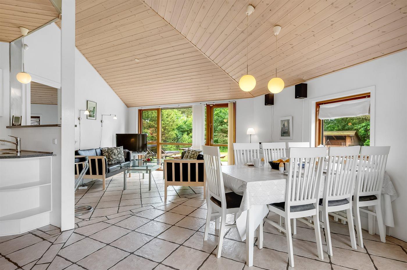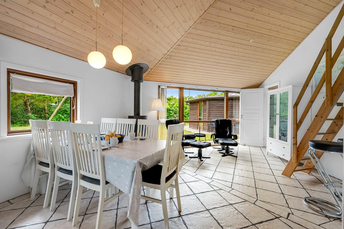 Sommerhuset egner sig til 10 personer samt 1 barn op til 3 år. Ferieboligen er på 110 m² og er bygget i 2007. Det er tilladt at medbringe 2 husdyr. Hele ferieboligen har gulvvarme. Ferieboligen har vaskemaskine. Tørretumbler. Frysekapacitet på 110 liter. Der er desuden brændeovn. Til de små er der 1 stk. barnestol. Puslebord. Babybadekar.