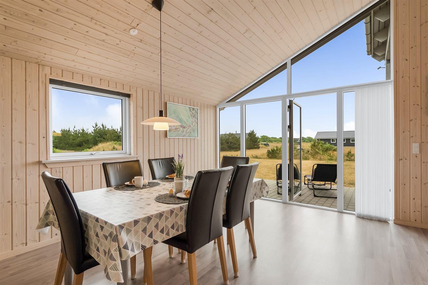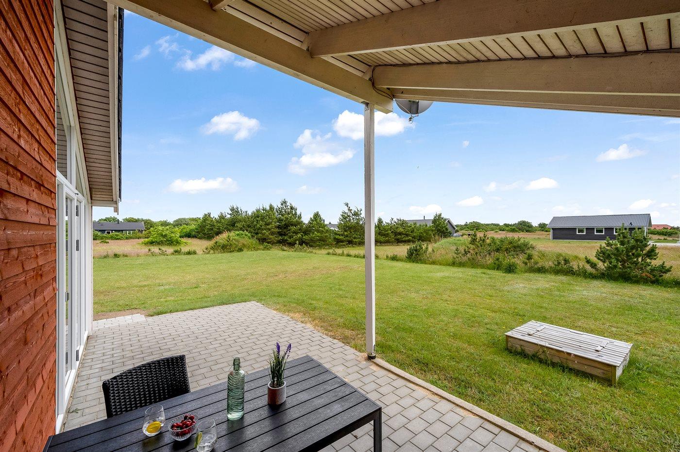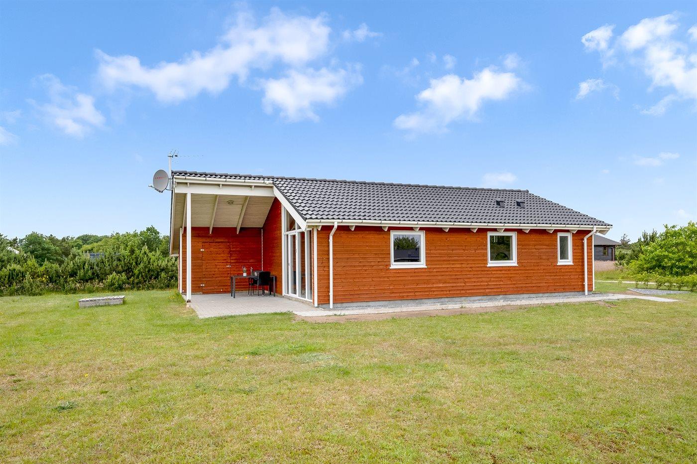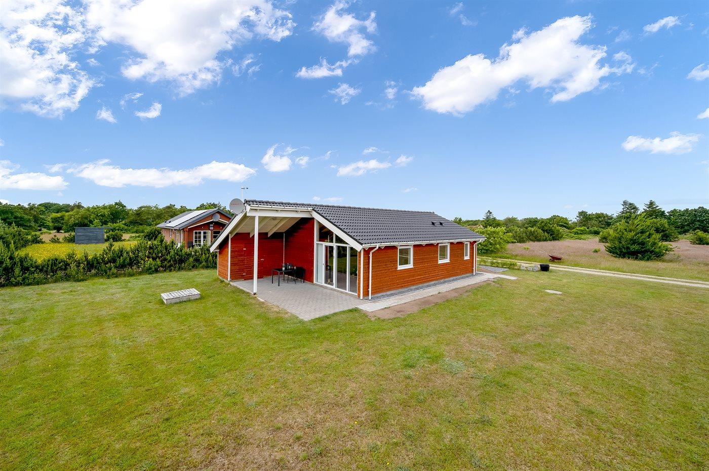 Nybygget sommerhus fra 2021 i naturskønne omgivelser nær Ringkøbing Fjord med terrasse og plads til husdyr.