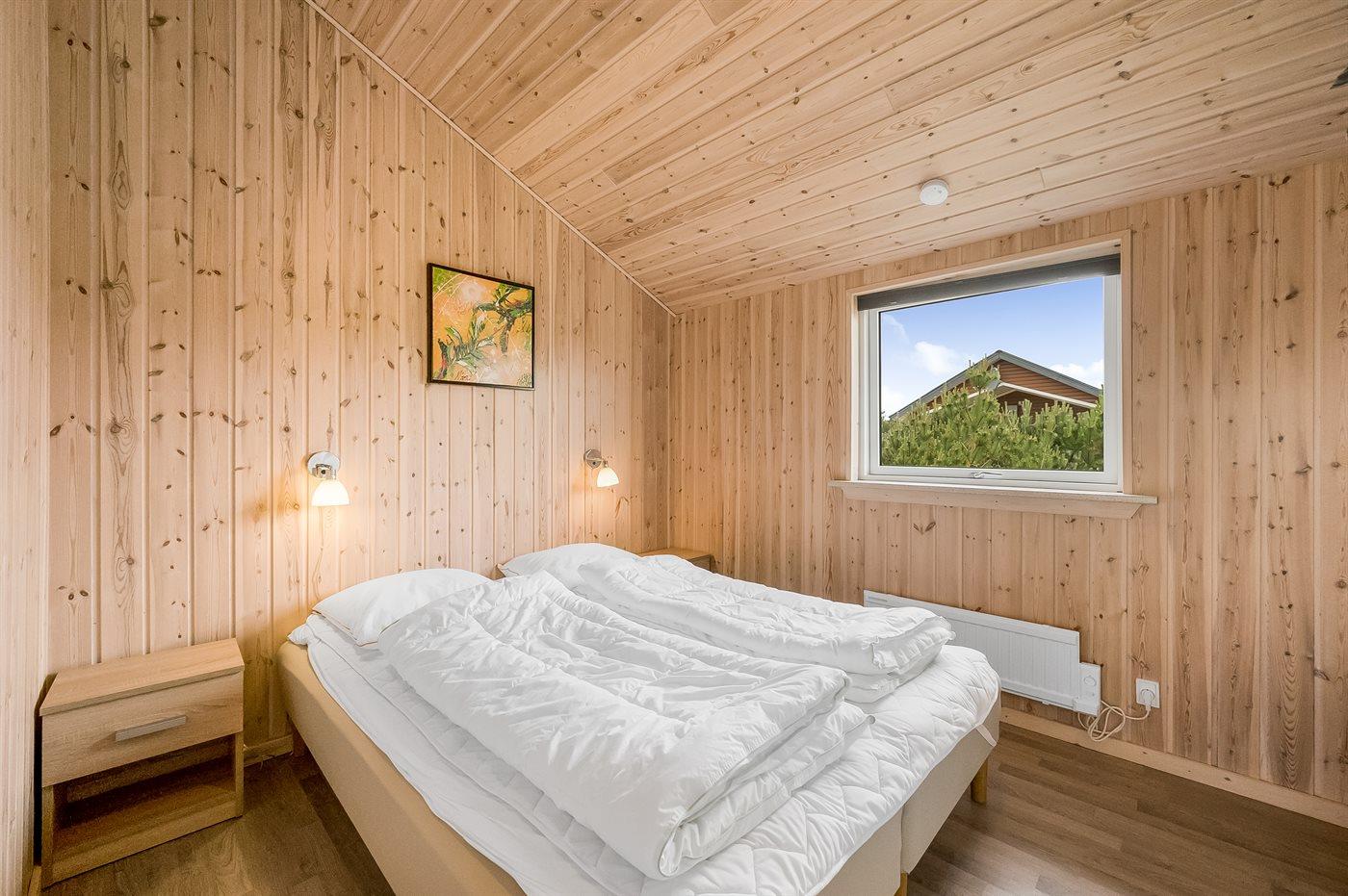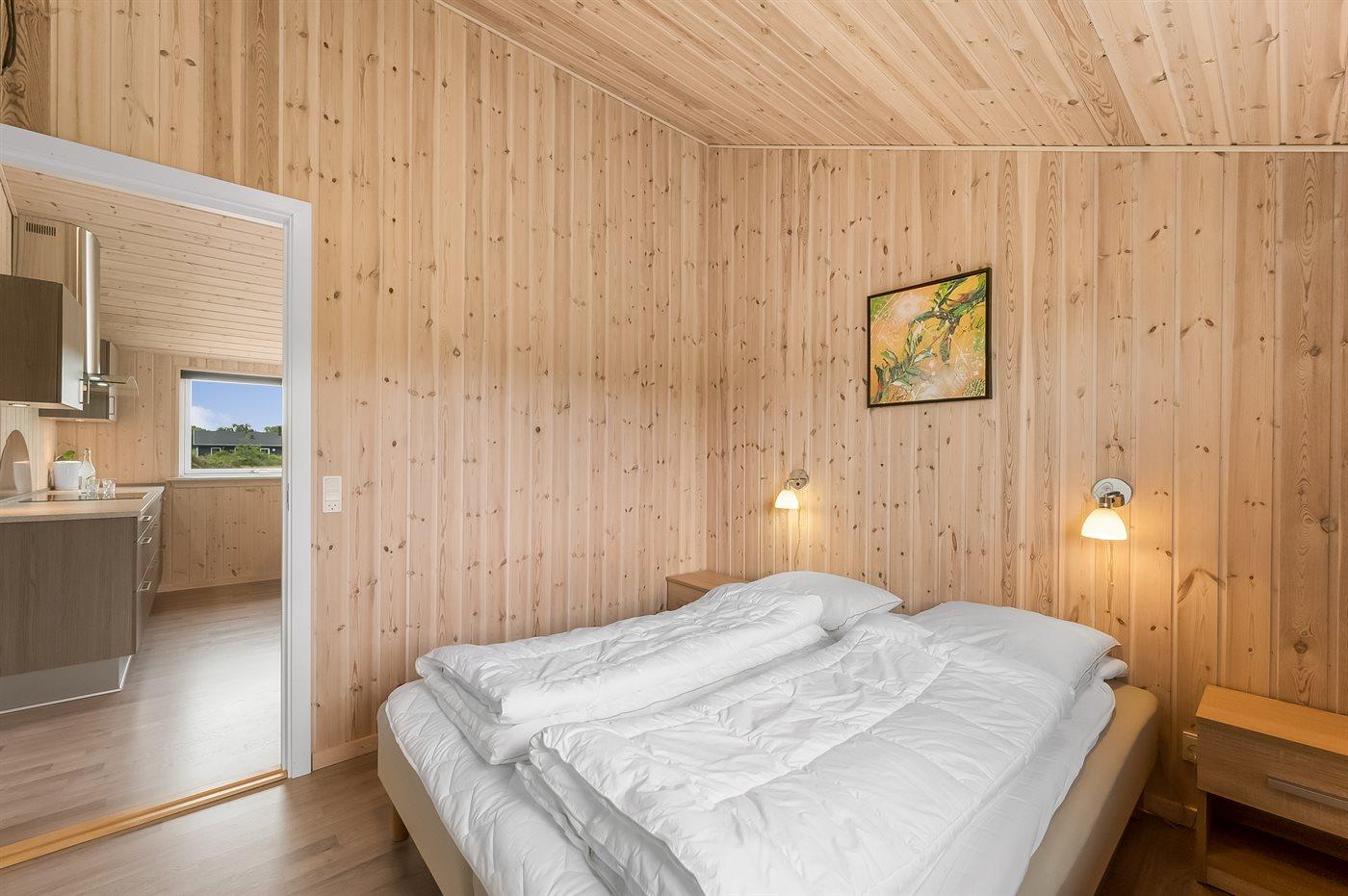 Der er i alt 2 soveværelser. Sovepladserne fordeler sig på: 2 sovepladser i dobbeltseng. 1 soveplads i enkeltseng. 2 sovepladser i alkove. Derudover er der 1 stk. barneseng.