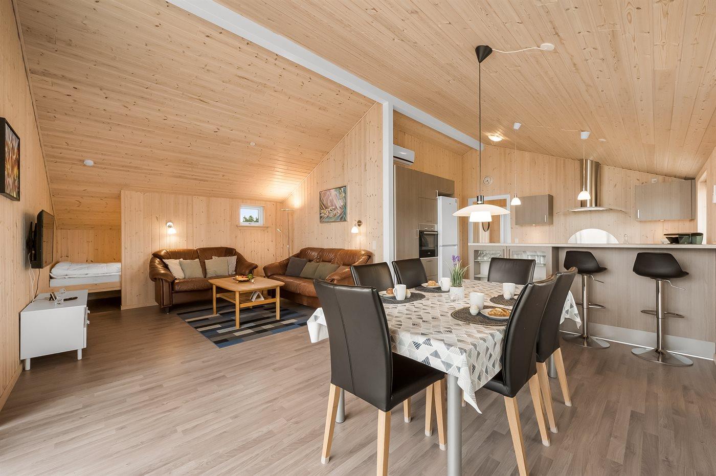 Sommerhuset egner sig til 5 personer samt 1 barn op til 3 år. 2 af sovepladserne er kun egnet til større børn (4-11 år). Ferieboligen er på 73 m² og er bygget i 2021. Det er tilladt at medbringe 1 husdyr. Ferieboligen er udstyret med energibesparende varmepumpe. Ferieboligen har vaskemaskine. Frysekapacitet på 80 liter. Til de små er der 1 stk. barnestol.
