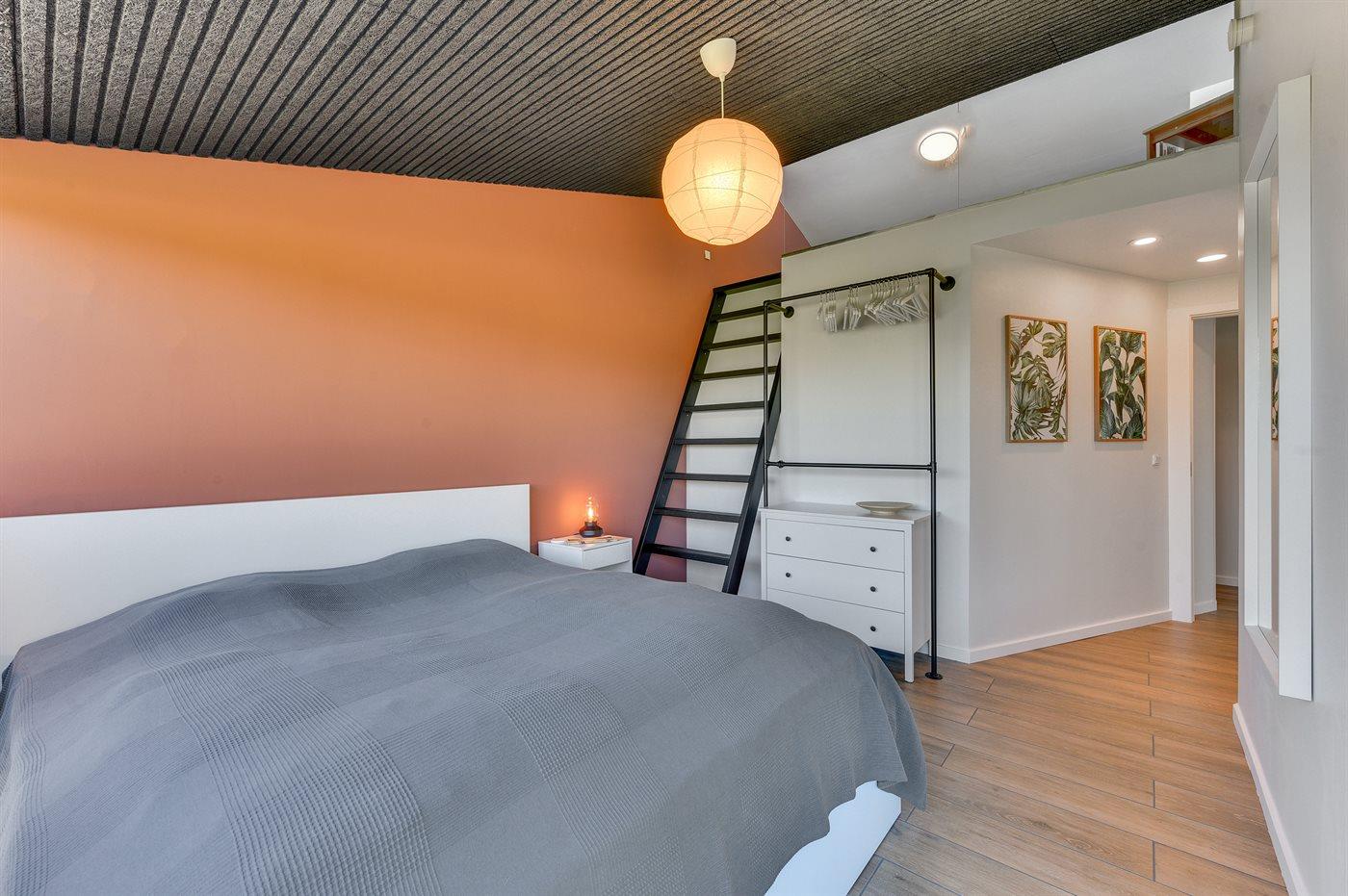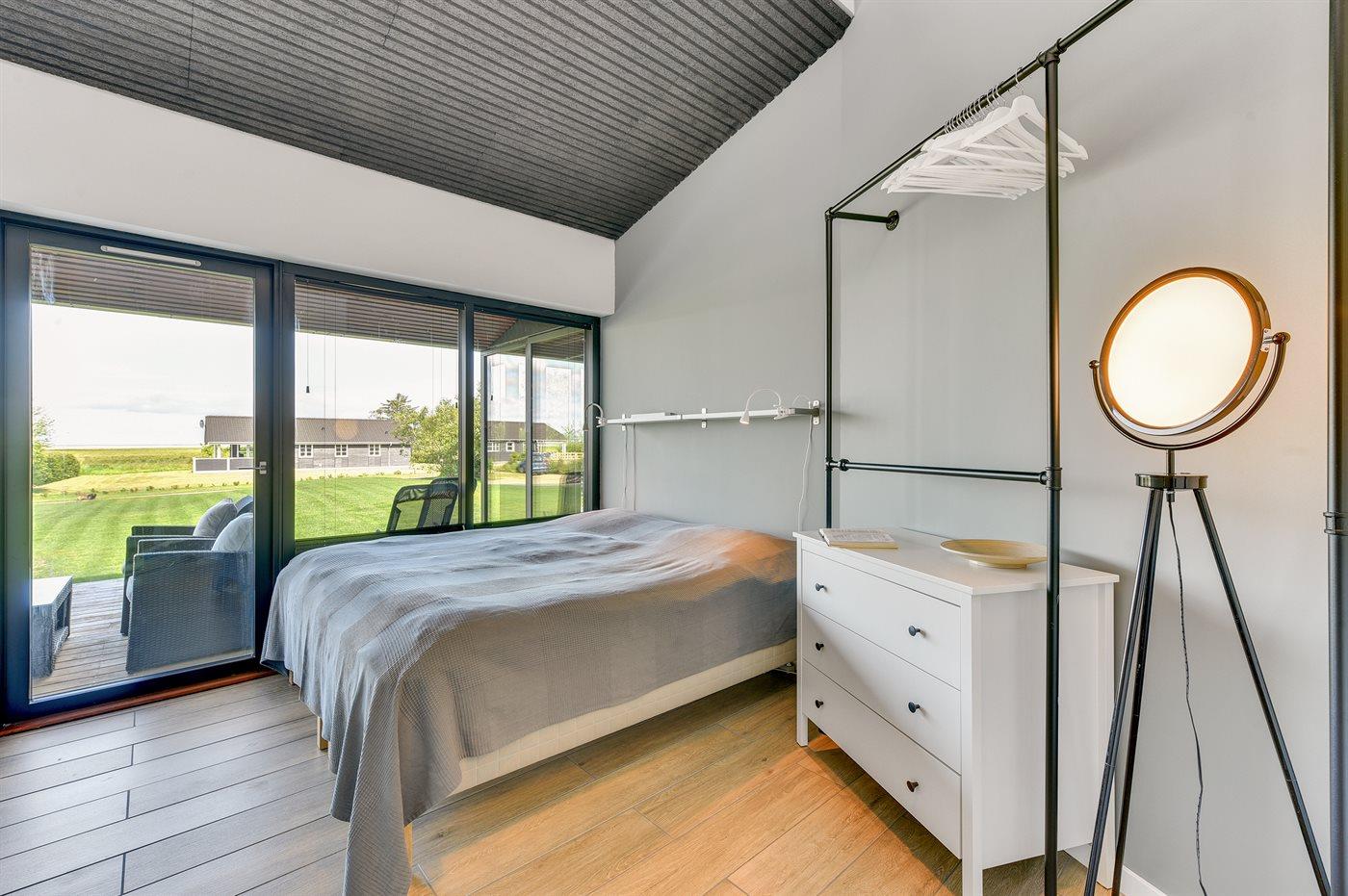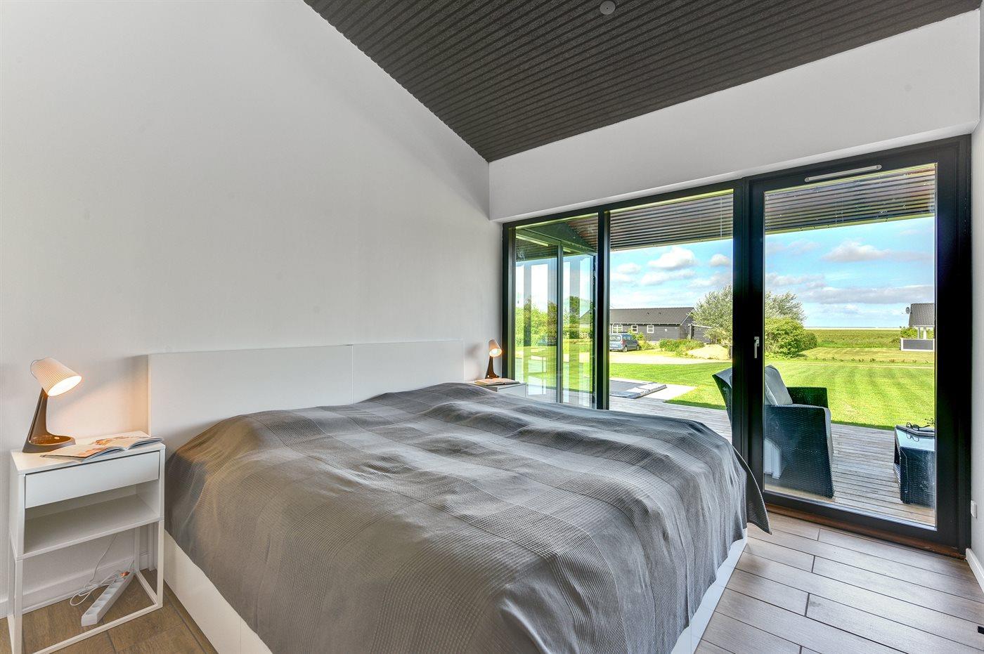 Der er i alt 3 soveværelser. Sovepladserne fordeler sig på: 4 sovepladser i dobbeltsenge. 2 sovepladser i enkeltsenge. Derudover er der 1 stk. barneseng. Fra alle soveværelser er der egen udgang til overdækket terrasse.