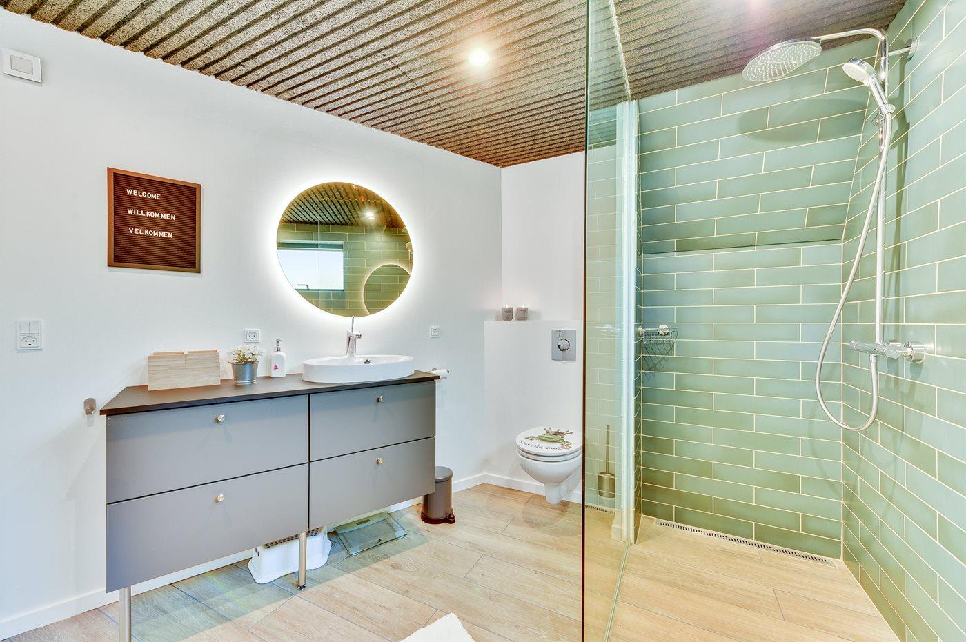 Der er 1 badeværelse med bruseniche og 1 toilet.. Der er gulvvarme på 1 badeværelse.